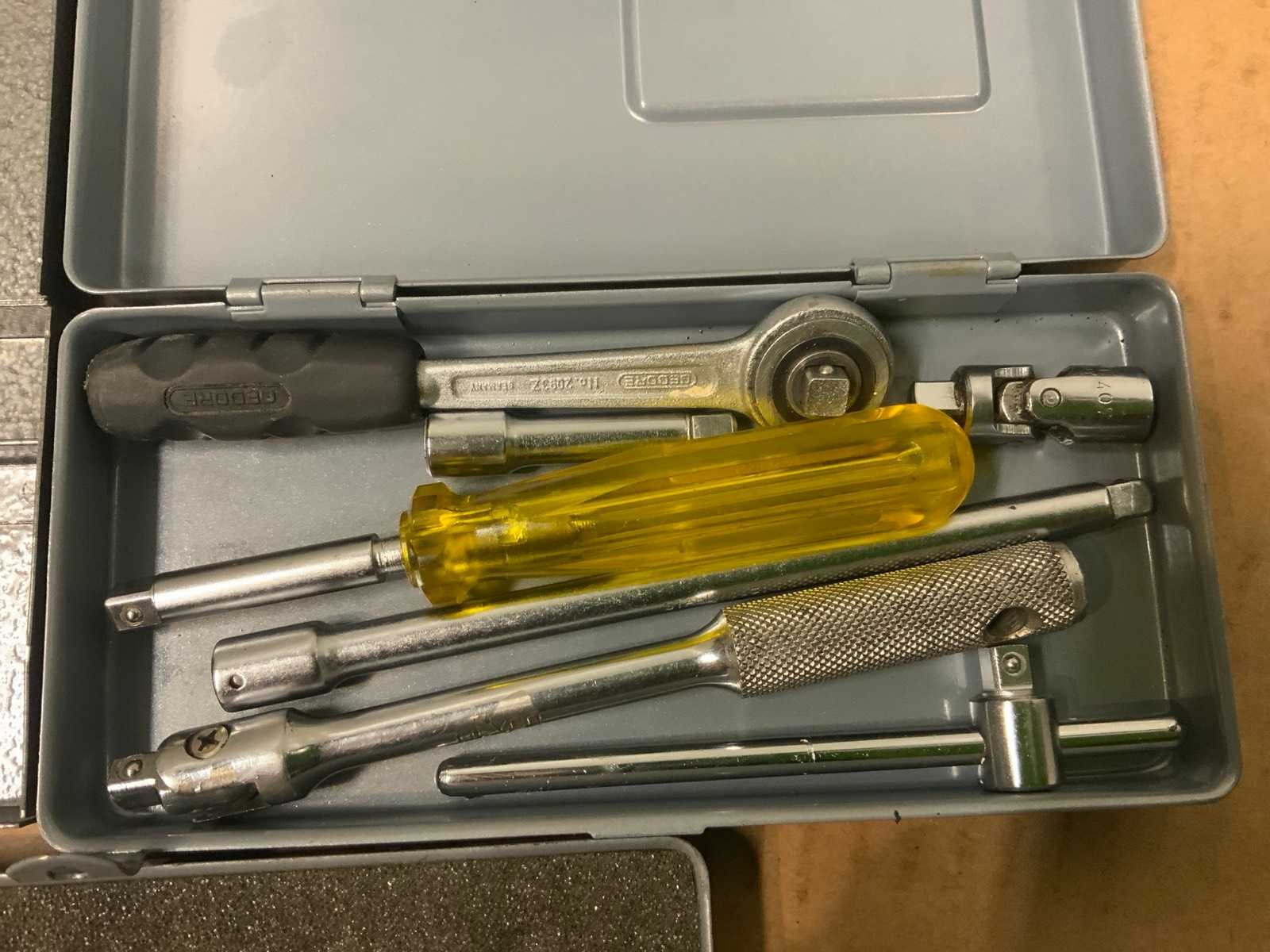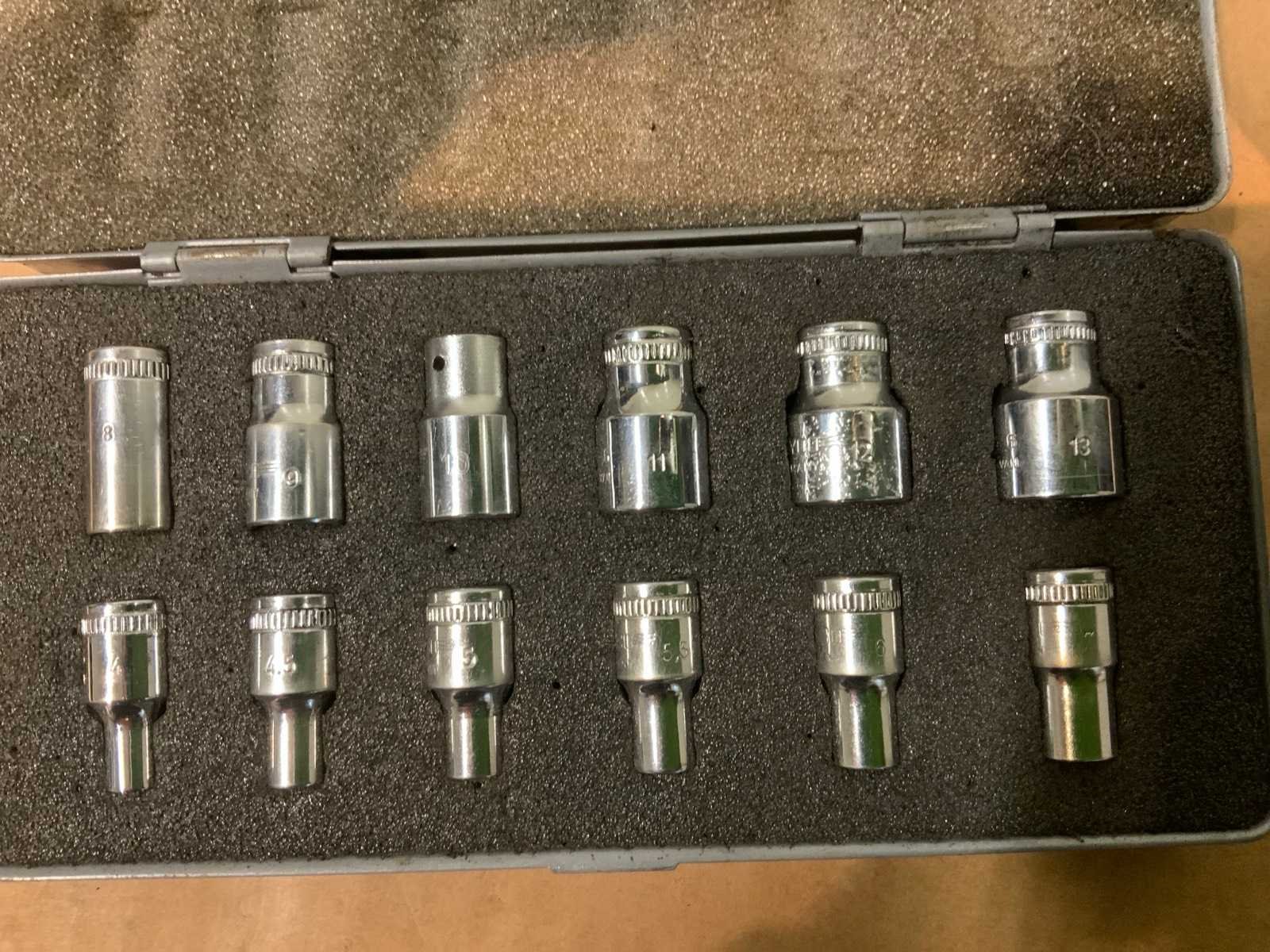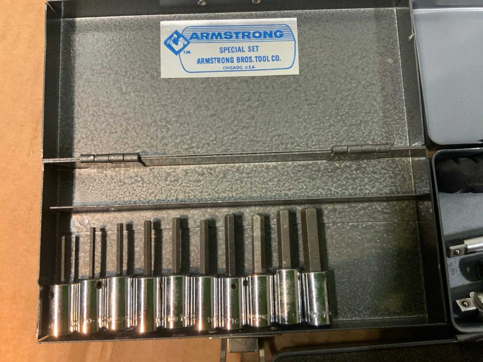 Bestaande uit ; doos met hulpstukken ; doos doppen 4 t/m 13 mm ; doos doppen Armstrong Inbus doppen AF 5/64” t/m 5/16” Nee Merk: Heyco Met koffer: true Delig: 32 Opname “: 1/4”''