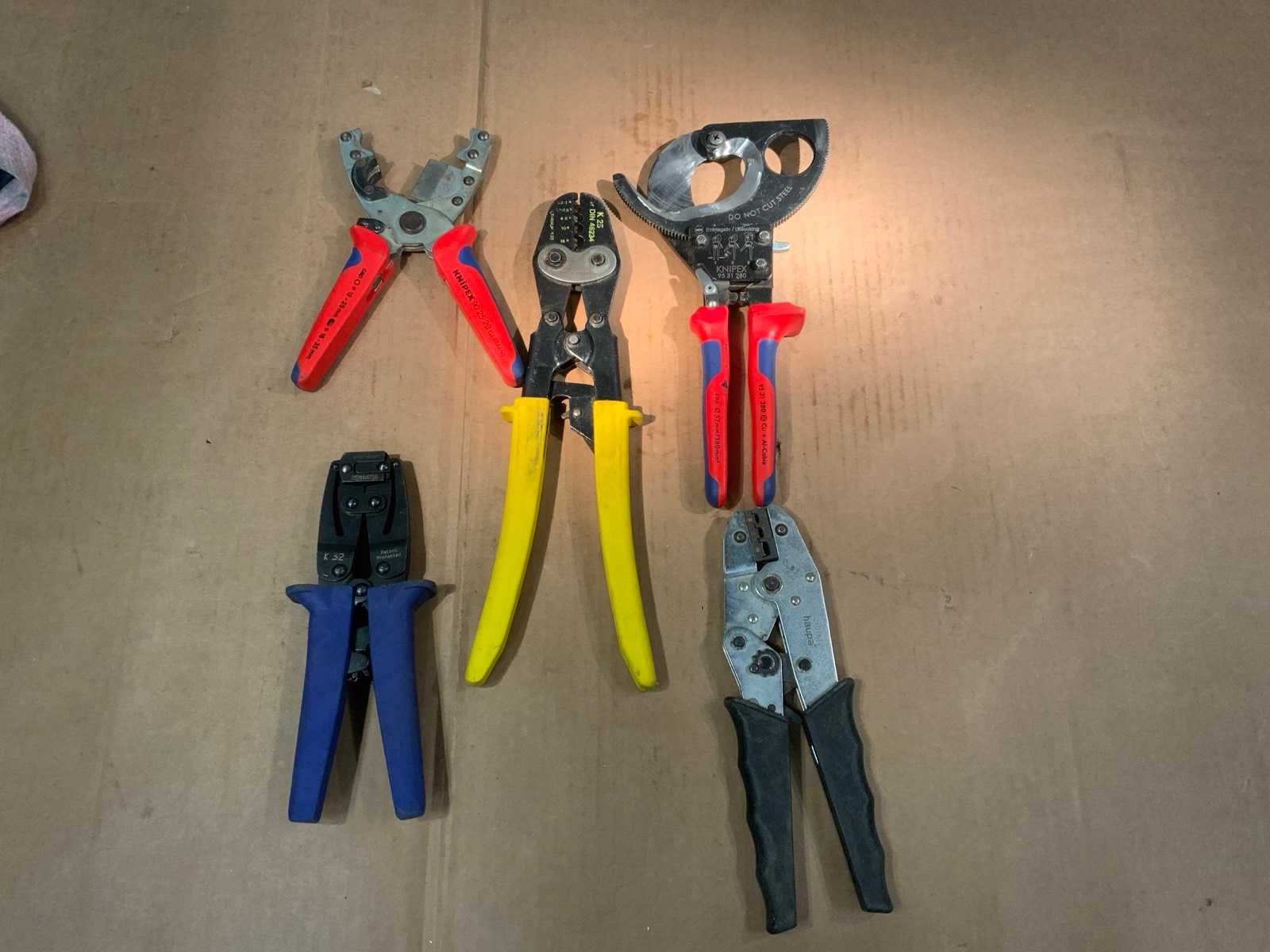 Knipex kabelschaar 95 31 280 ; Knipex buisschaar 90 25 20 ; Klauke K 25 perstang ; Klauke K 32 adereindhulstang ; Haupa perstang Nee Merk: Knipex ,Klauke ,Haupa