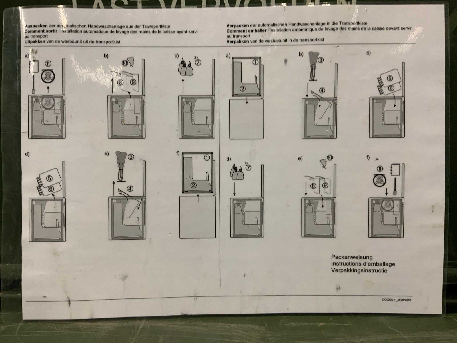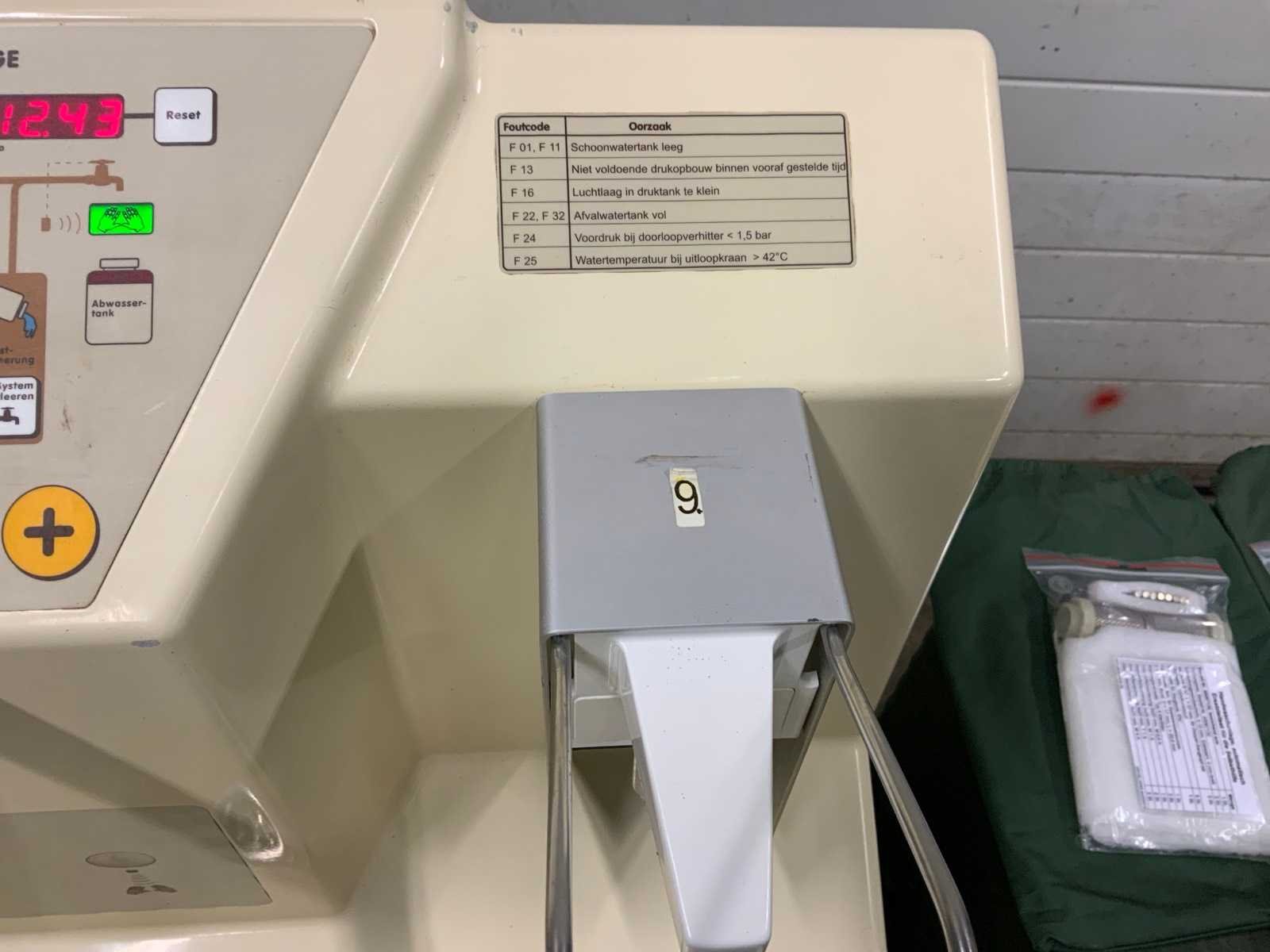 Wasbakunit in aluminium transportkist 83 x 61 x 76 cm ; met gebruiks aanwijzing en verpakkings instructie ; 230 volt ; bediening via sensor of voetpedaal ; 5 tasjes met o.a reservedelen Nee Merk: H+P Labortechnik AG Eigen gewicht: 70kg Totale afmeting L: 830mm Totale afmeting Breedte: 610mm Totale afmeting Hoogte: 760mm