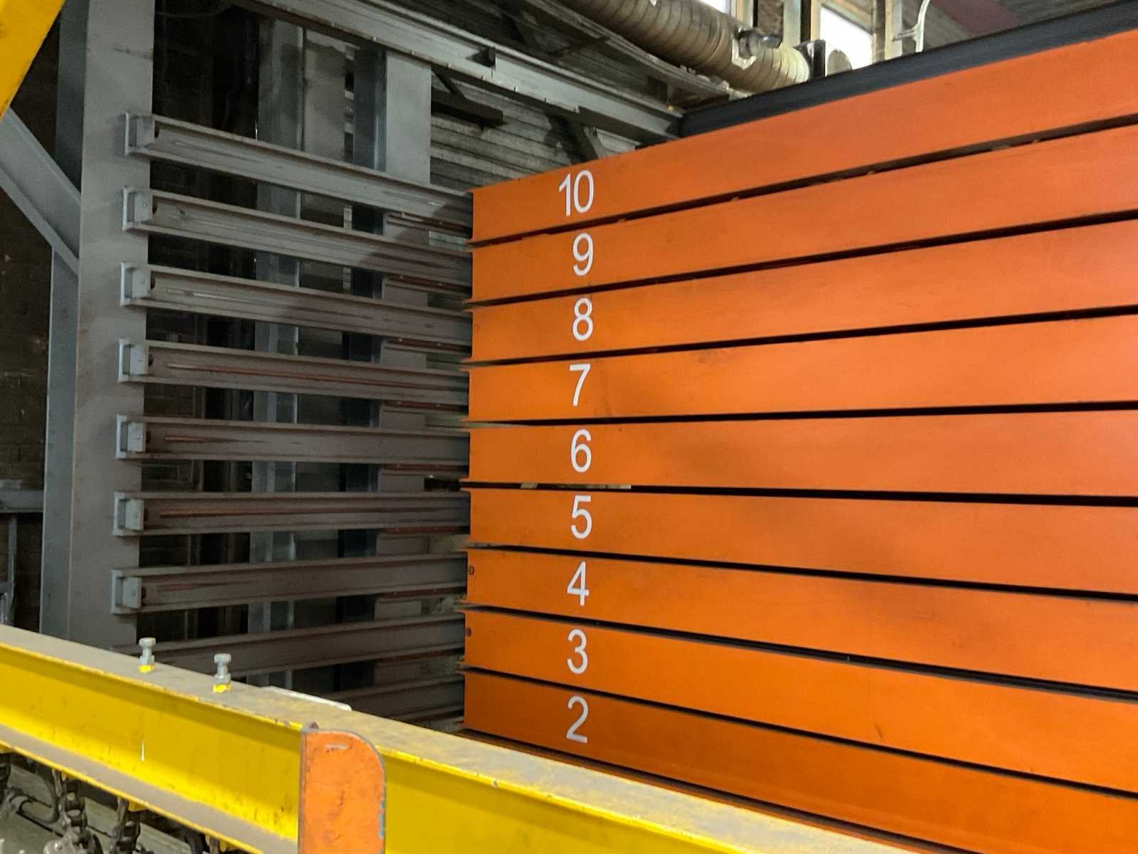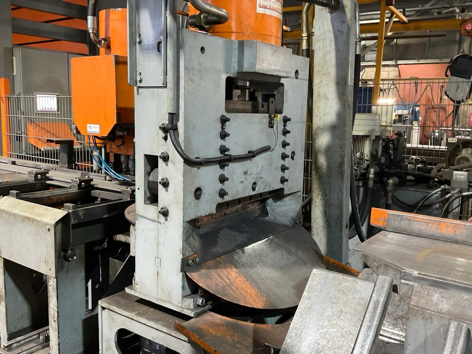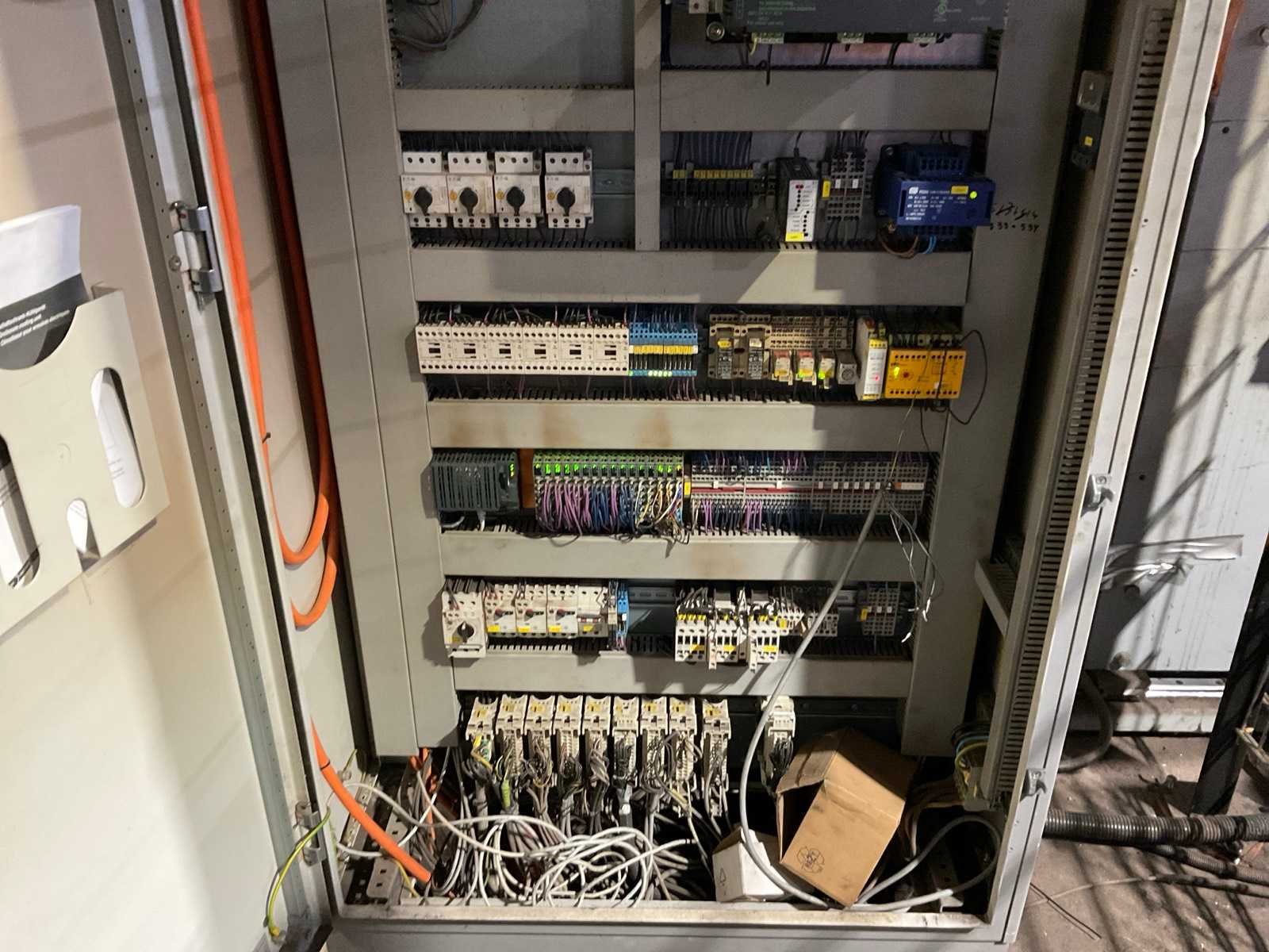 Bestaande uit; (1x) CNC pons- en knipmachine; v.v. automatische 3-voudige ponsunit; max. cap. 110 ton; min. - max. pons Ø 5 - 50 mm; max. materiaaldikte 32 mm; incl. diverse ponstoebehoren; (1x) vlakstaal strippen magazijn; type RFS 11; v.v. 11 laden; lade afmeting 6200x1500 mm; hoogte 170 mm; cap. vlak profiel minimaal 50 x 6 mm; maximaal 500 x 25 mm; maximaal gewicht per lade 10.000 kg; automatisch aanvullend; totale afmeting strippen magazijn 7000x5660x4500 mm; (1x) bovenloopkraan; maximaal hijsvermogen 800 kg; v.v. hijsbalk; (2x) “DEMAG” kettingtakel en (12x) hijsmagneten; (1x) sorteer uitvoer systeem; type RS3-6; v.v. 3 uitwerpstations; dwarsafwerper; materiaaldetectie; kettingtapijt; schakelkasten en hydraulische aggregaat; handboek aanwezig Nee Merk: APS Europe Type: RP-503 Bouwjaar: 2016 Serienummer: 2017.12.17113 Ponskracht: 1078kN Digitale uitlezing: true Aansluiting: 400V Afmeting l: 20000mm Afmeting b: 8000mm Afmeting h: 4500mm