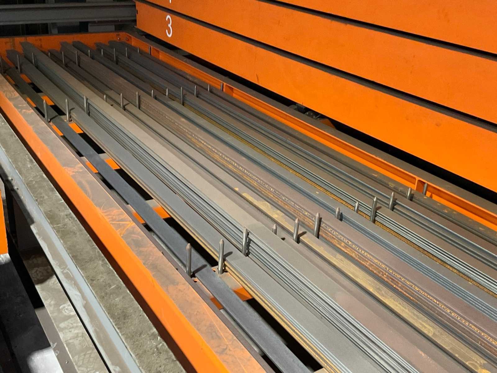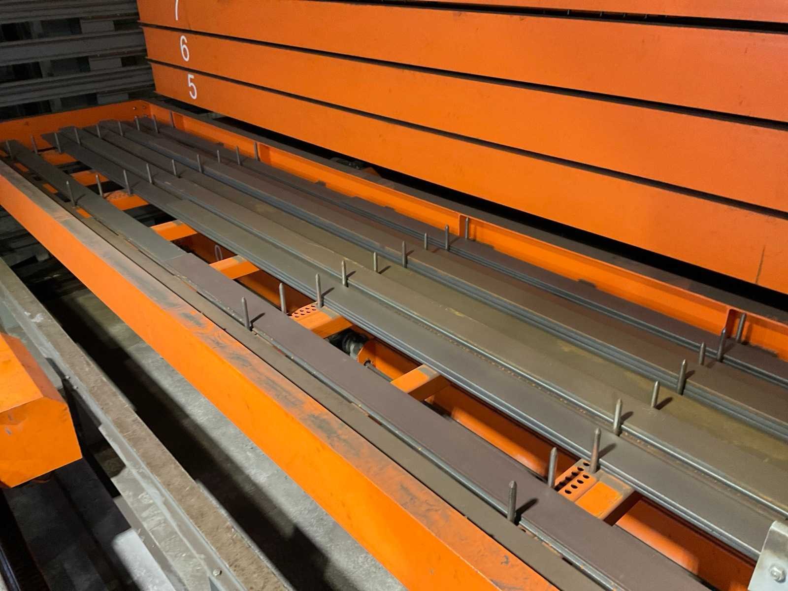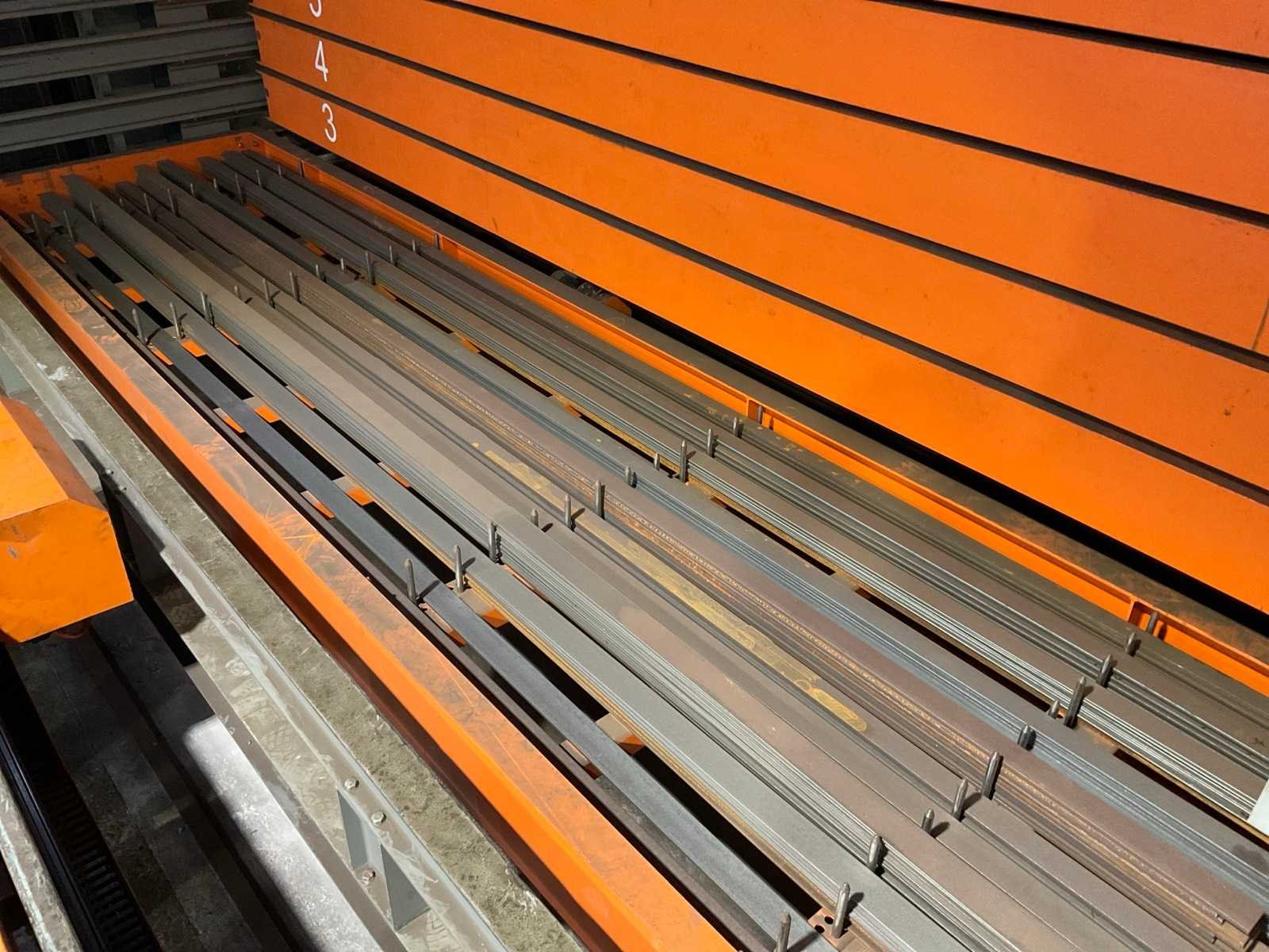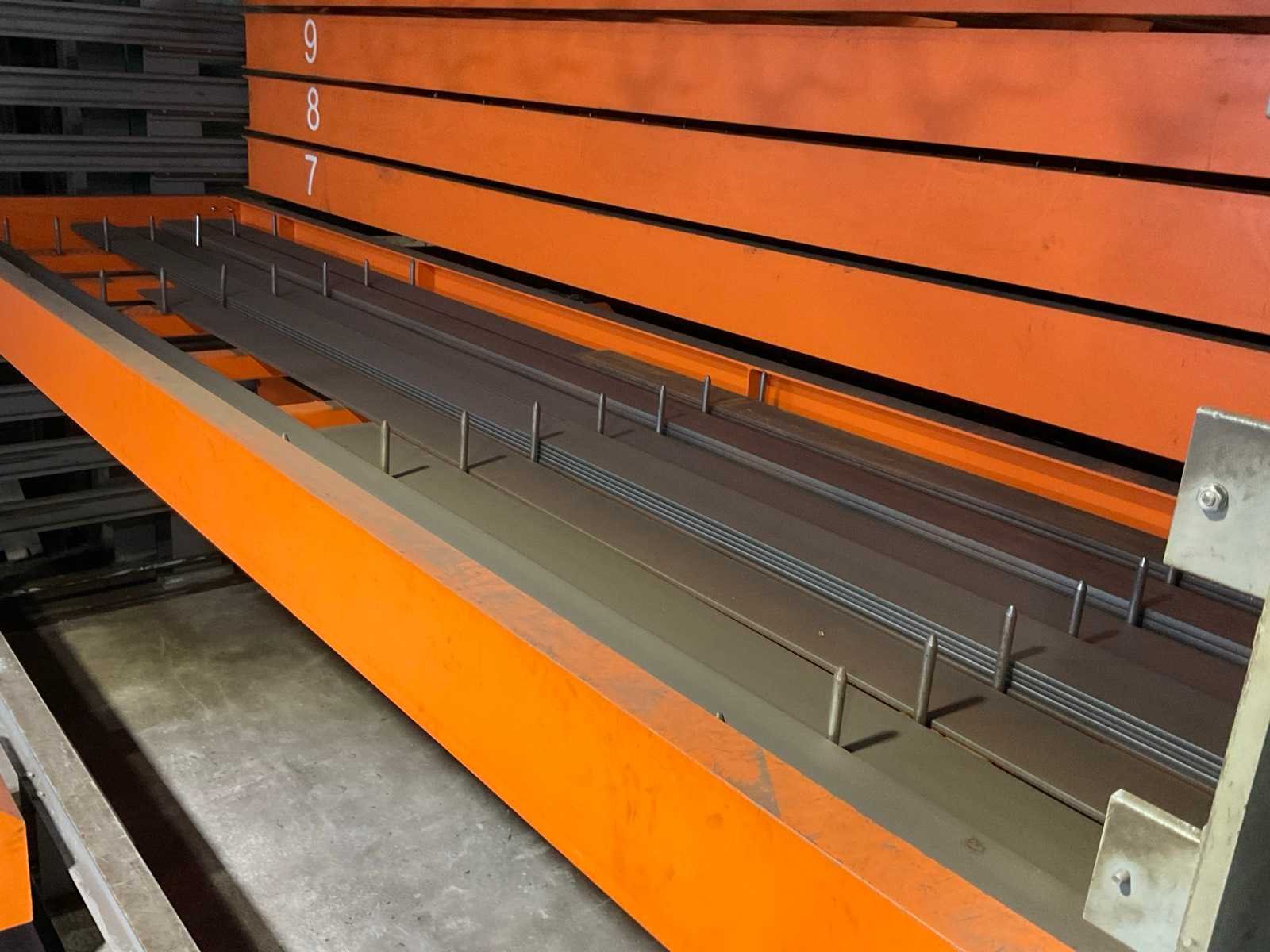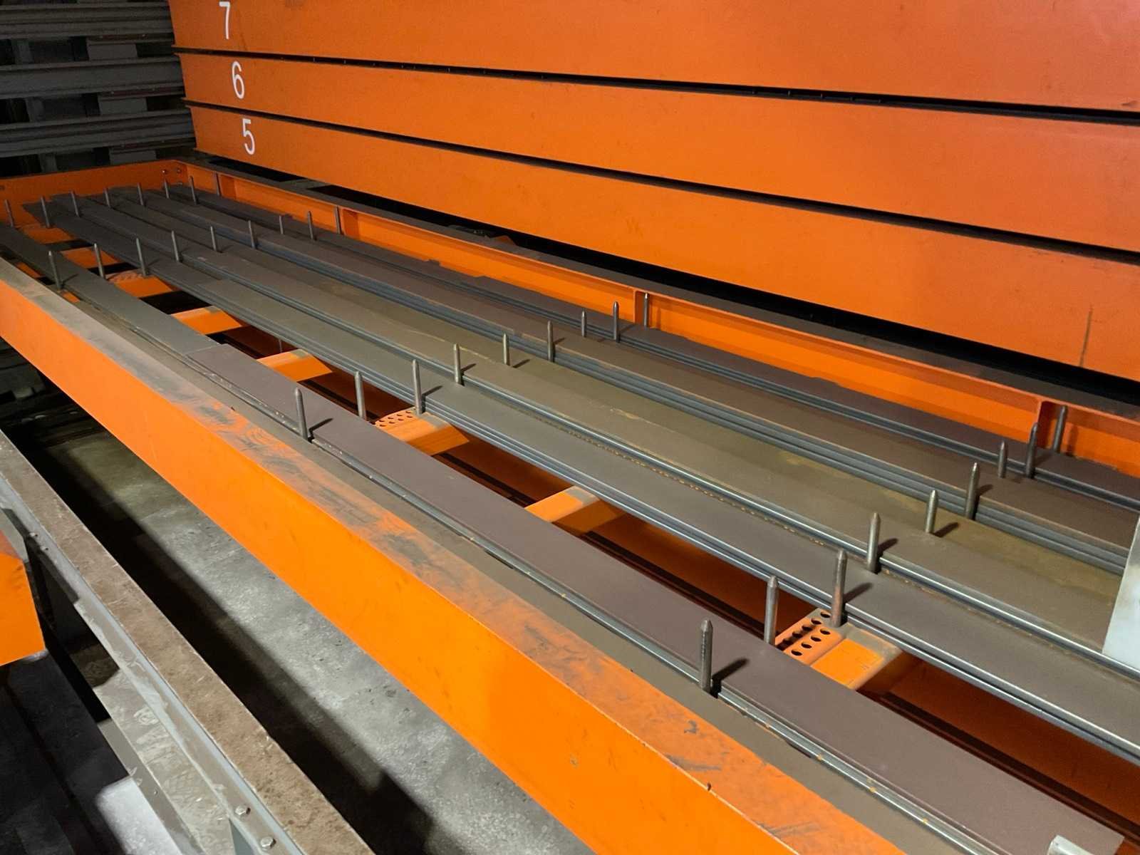 In vlakprofiel magazijn; max. lengte 6100 mm; totaal gewicht ca. 18.000 kg No