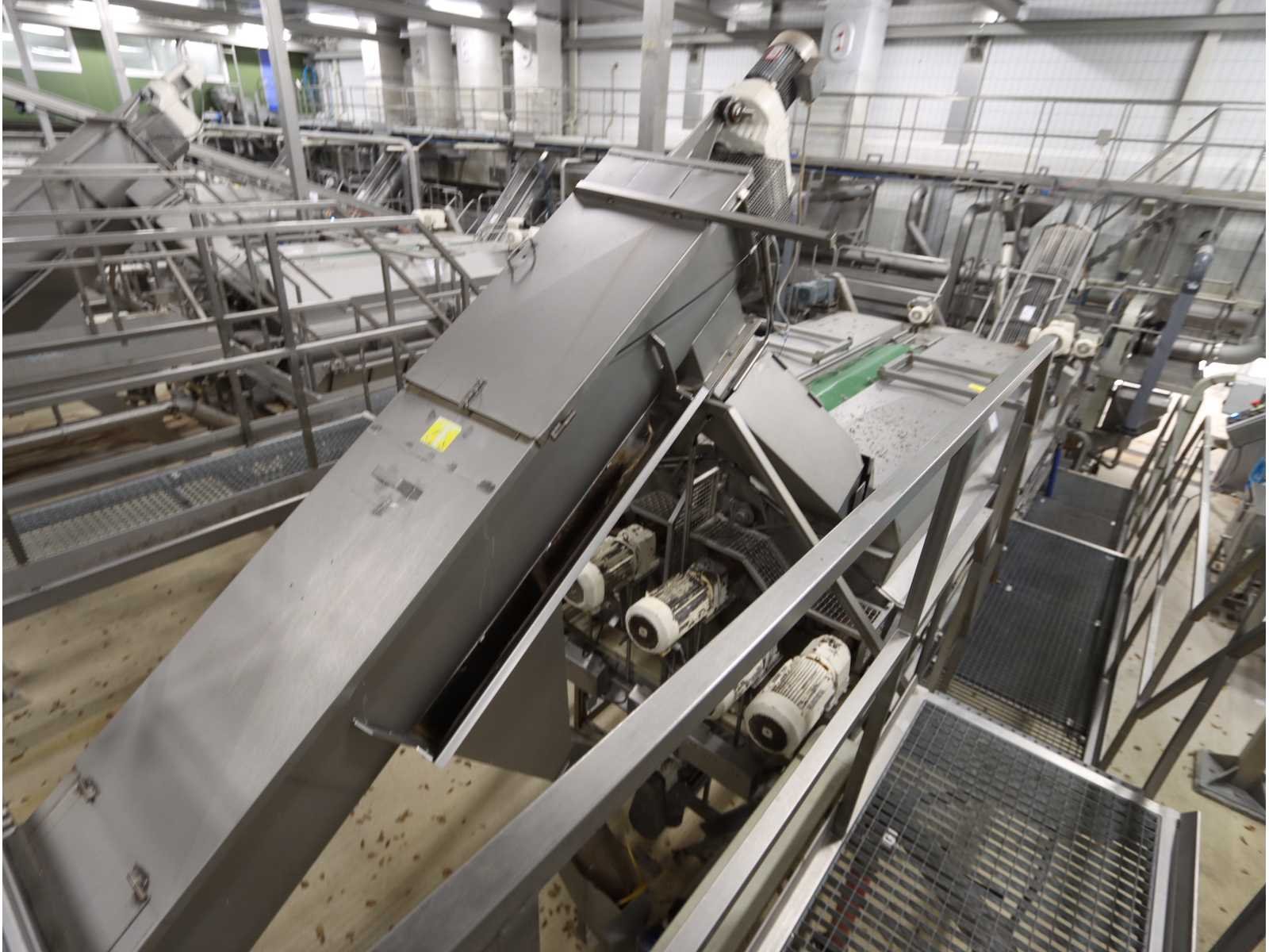 Bestaande uit: “Kiremko” stoomschiller voorzien van invoerbunker (afmeting circa 2400x3000x6000 mm), en onderlopende opvoer schroeftransporteur (lengte circa 6000 mm), “Agrico” 2-voudige ontveller en 2-voudige borstelmachine type AT-OBC-2500, werklengte 2500 mm, beide voorzien van schroeftransporteur, uitvoer schroeftransporteur (lengte 2500 mm) en opvang/filter bak met pomp (afmeting circa 1550x1070x1160 mm)(bordessen niet inbegrepen) Nee