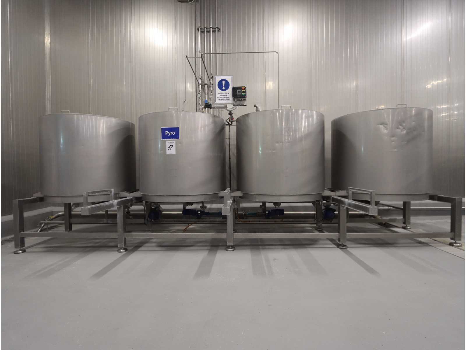 Tank diameter elk 1600 mm, hoogte tank 1450 mm, voorzien van onderuitloop met pomp, op rvs onderstel Nee Verticaal: true Totale afmeting L: 7500mm Totale afmeting Breedte: 2500mm Totale afmeting Hoogte: 2450mm
