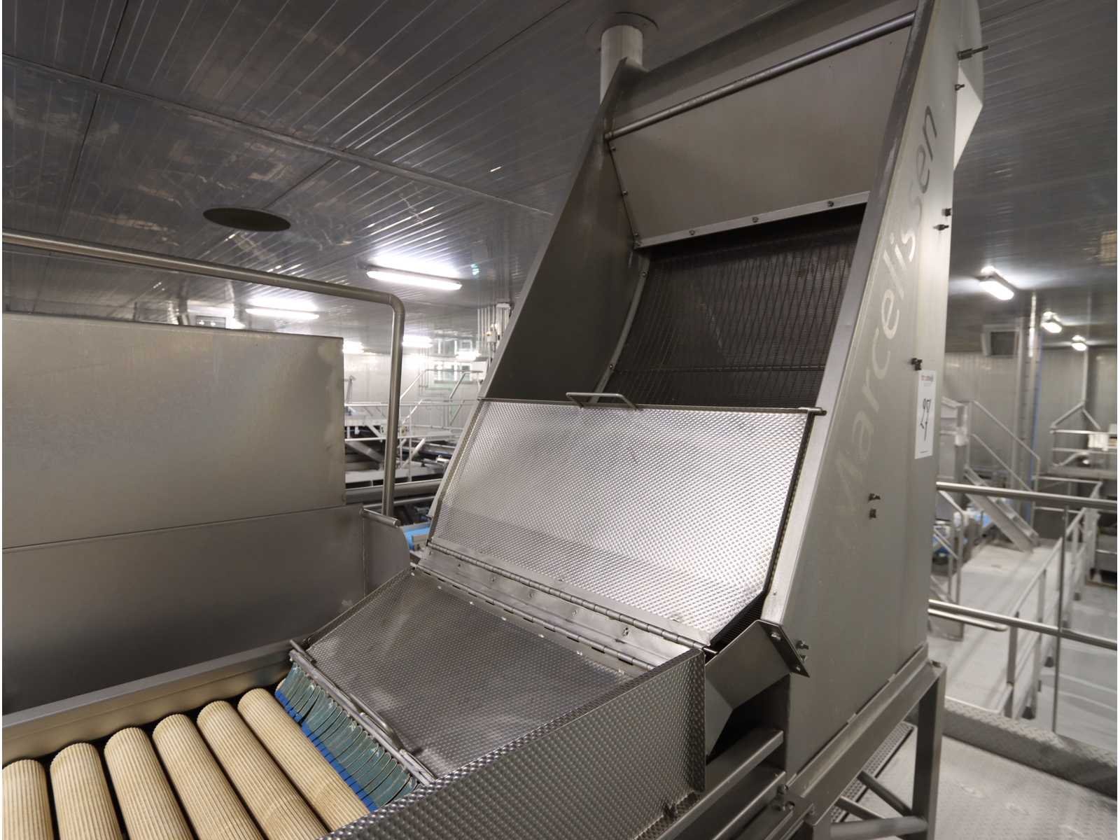 Bestaande uit: 2x “Marcelissen” RVS invoer valzeef, rollensorteertafel afmeting 3000x800 mm, onderlopende transportband 6750x600 mm, voorzien van pneumatische uitworp inrichting, stortssluis, transportband 4800x650 mm, en “ Marcelissen” RVS rollen sorteertafel, zonder bordessen en frames Nee
