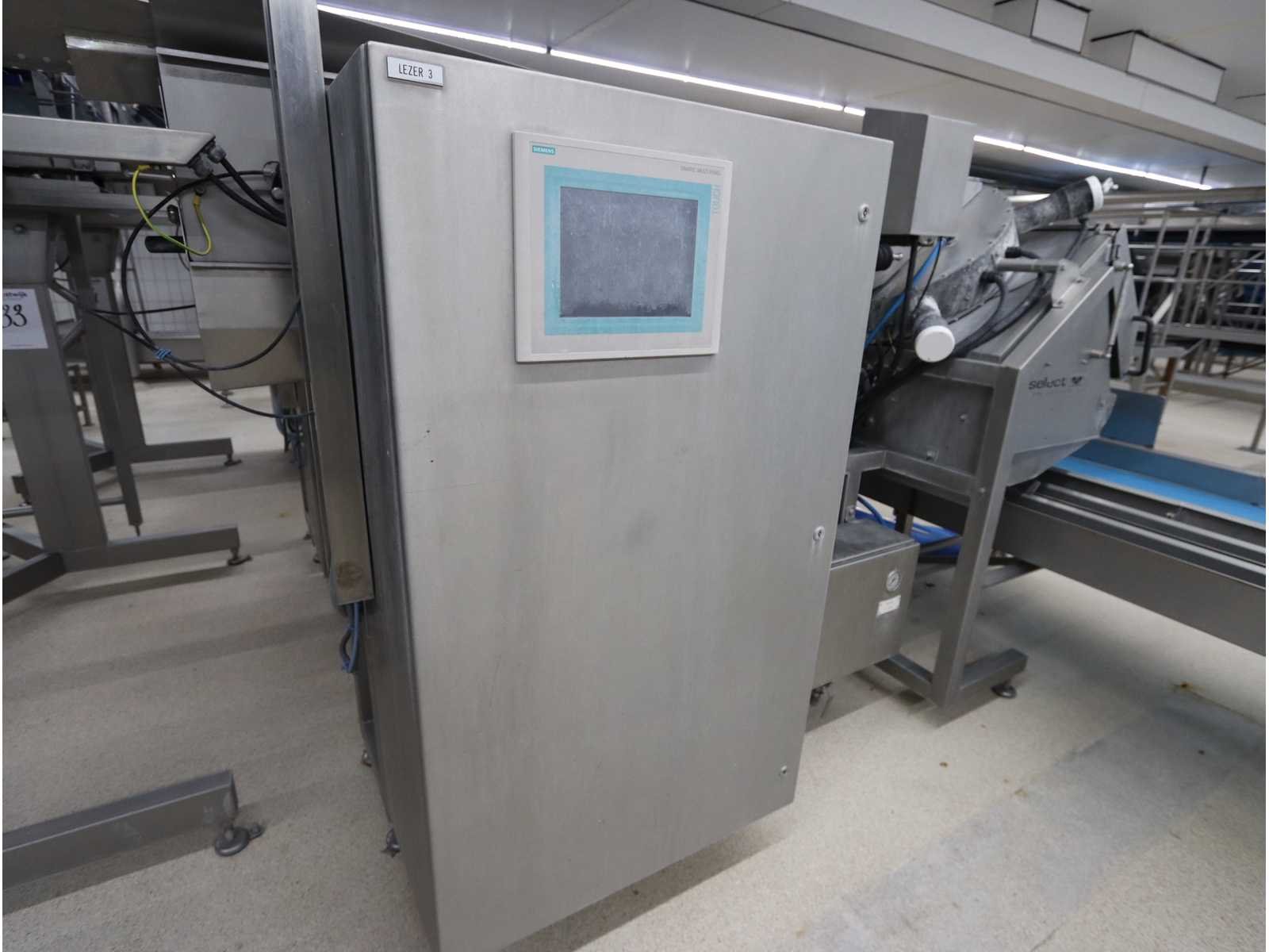 Voorzien van “Siemens” multi touch panel, aanvoer trilgoot Nee Merk: Select Type: Agroselector 6T-3M colour Bouwjaar: 2004 Aansluiting: 400V Eigen gewicht: 600kg Totale afmeting L: 1300mm Totale afmeting Breedte: 4000mm Totale afmeting Hoogte: 1800mm