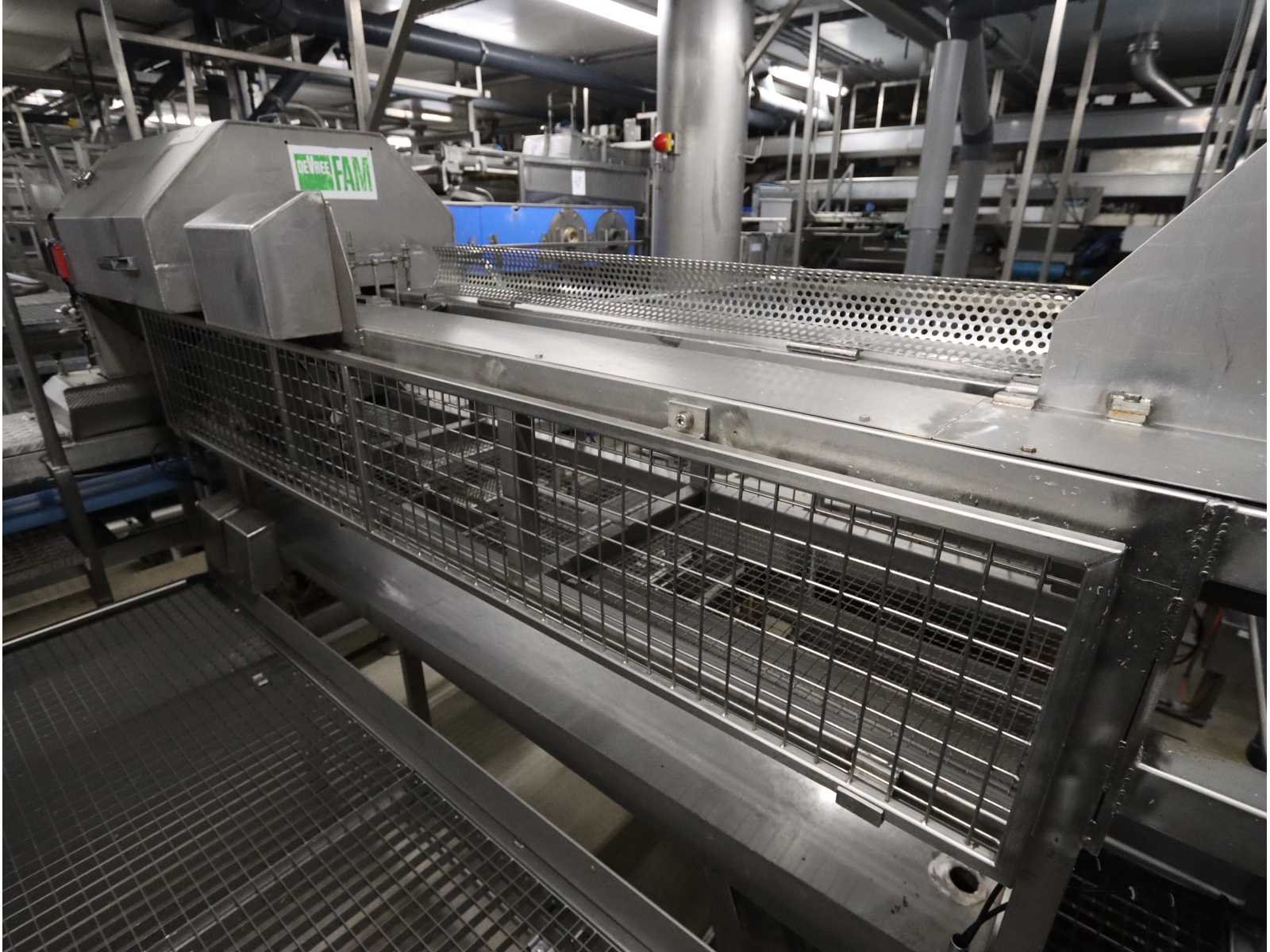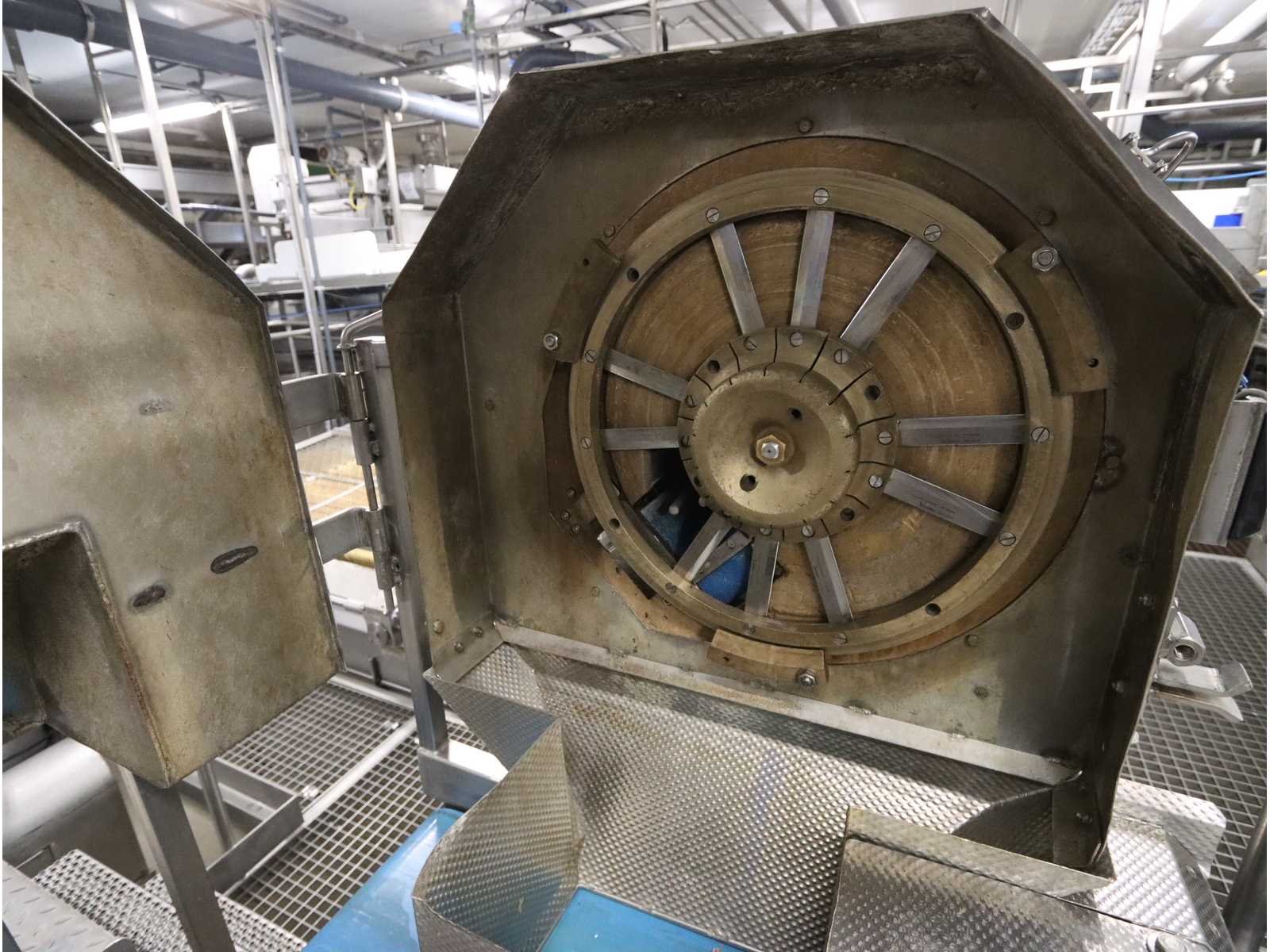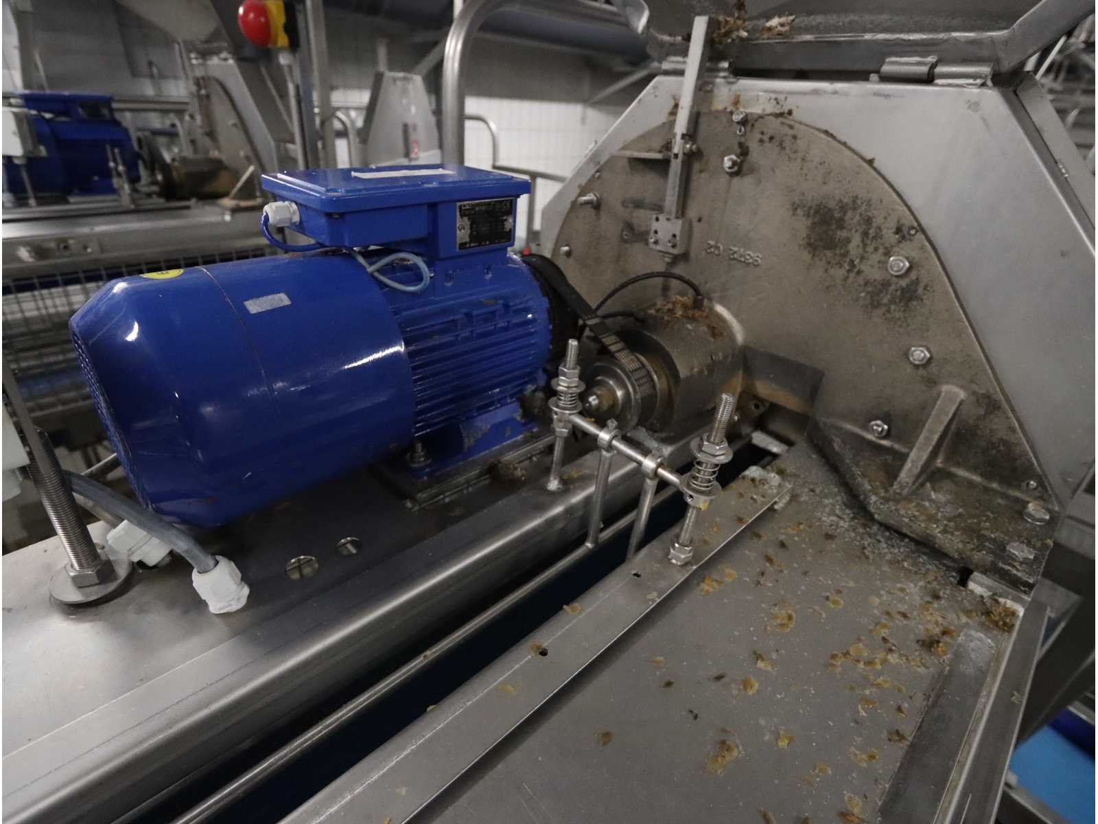 Mes diameter circa 400 mm, voorzien van aanvoer transportband, lengte circa 3000 mm, in rvs frame afmeting 3100x650x900 mm, 1,5 kW, inclusief 2 reserve messen, zonder bordes en roostervloer Nee Totale afmeting L: 3600mm Totale afmeting Breedte: 650mm Totale afmeting Hoogte: 1300mm