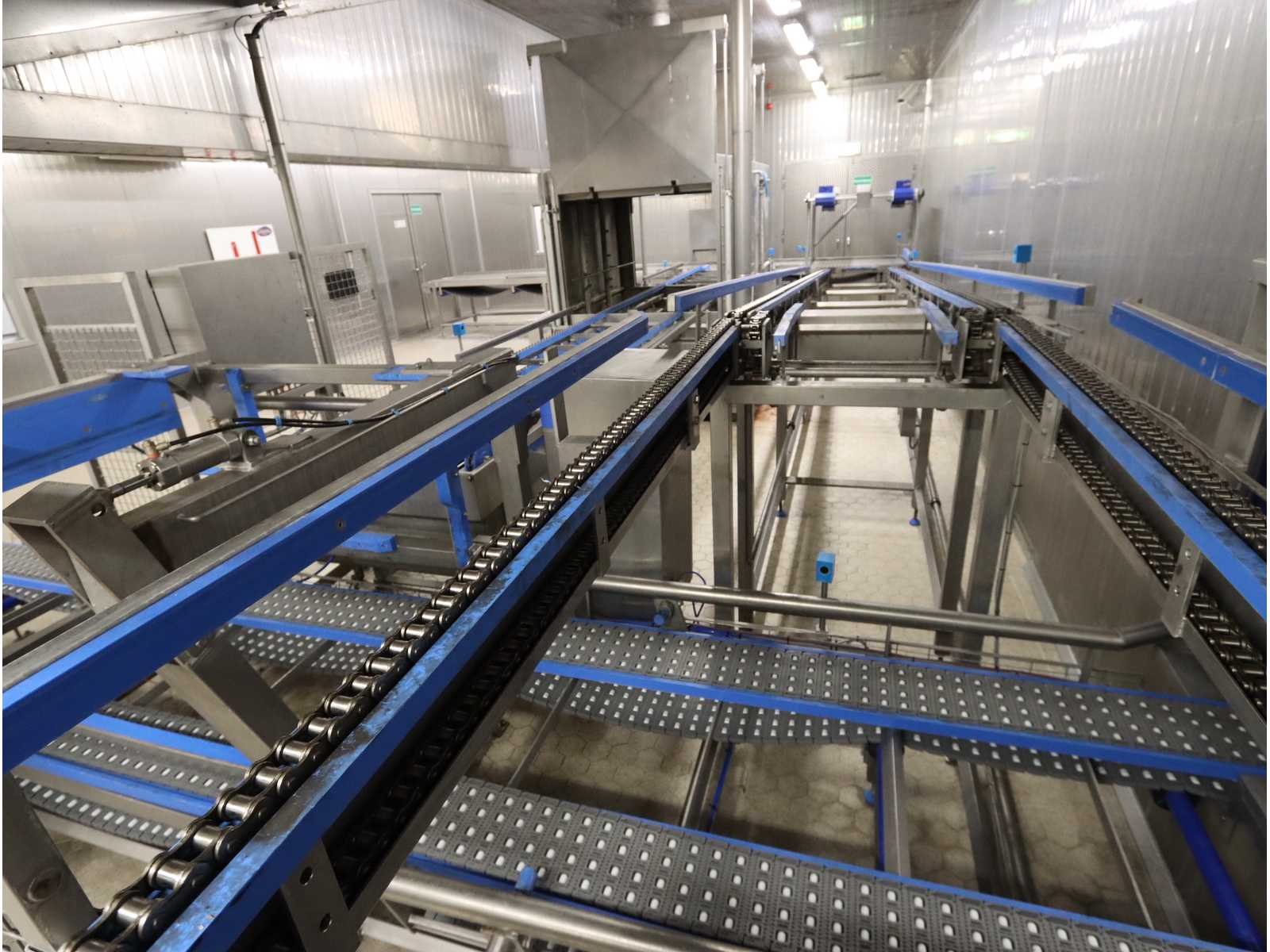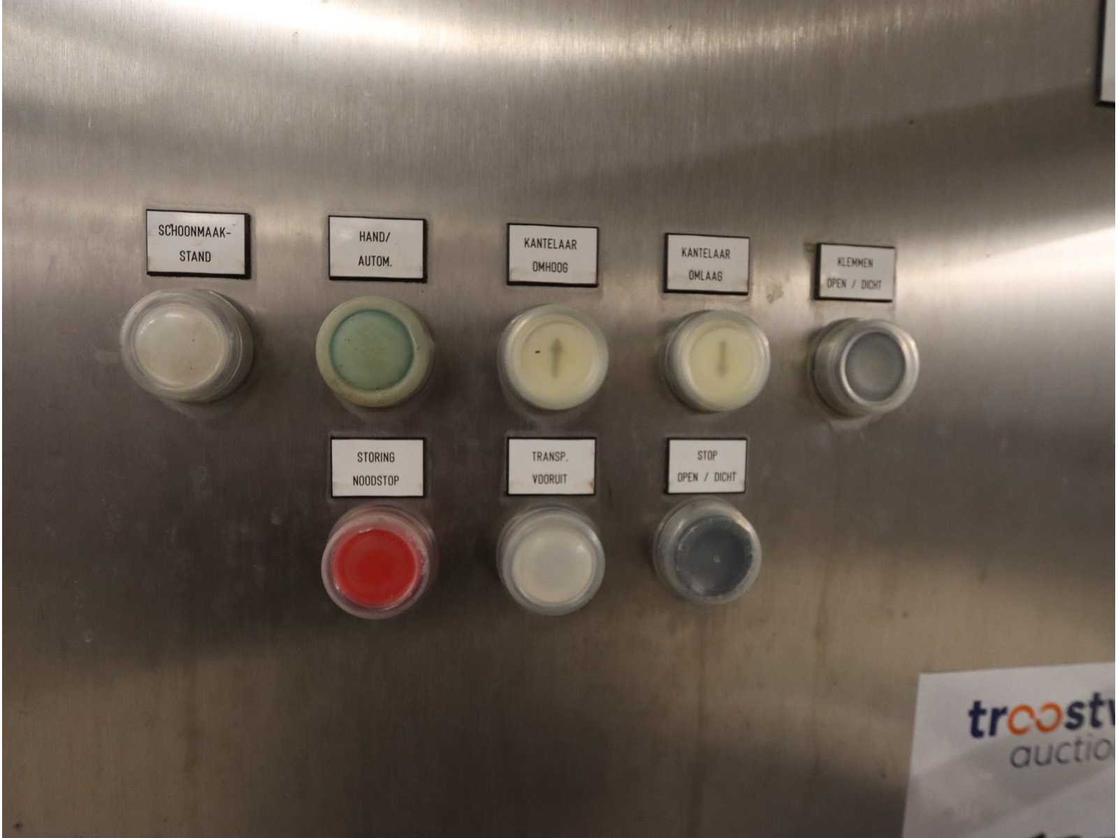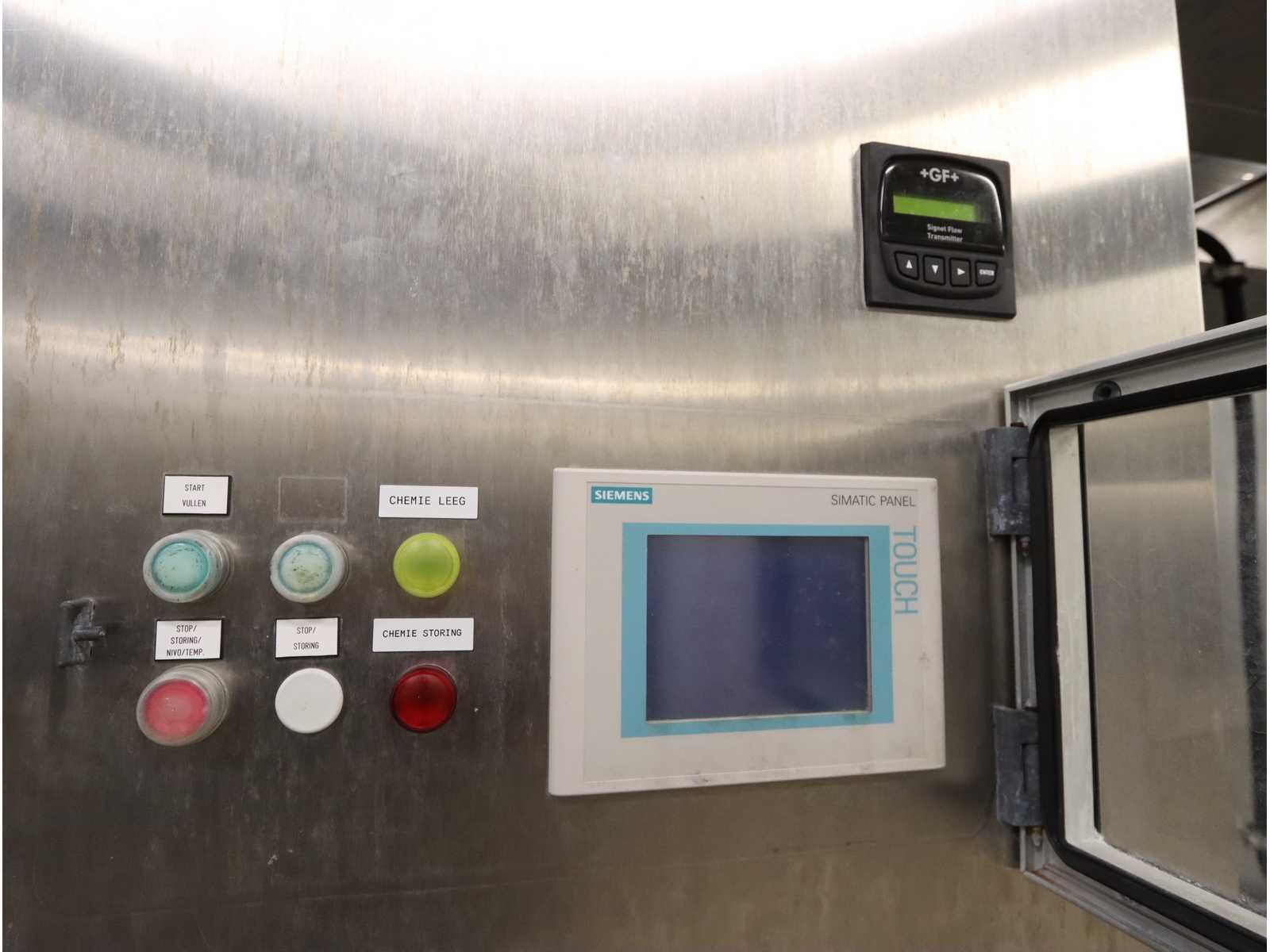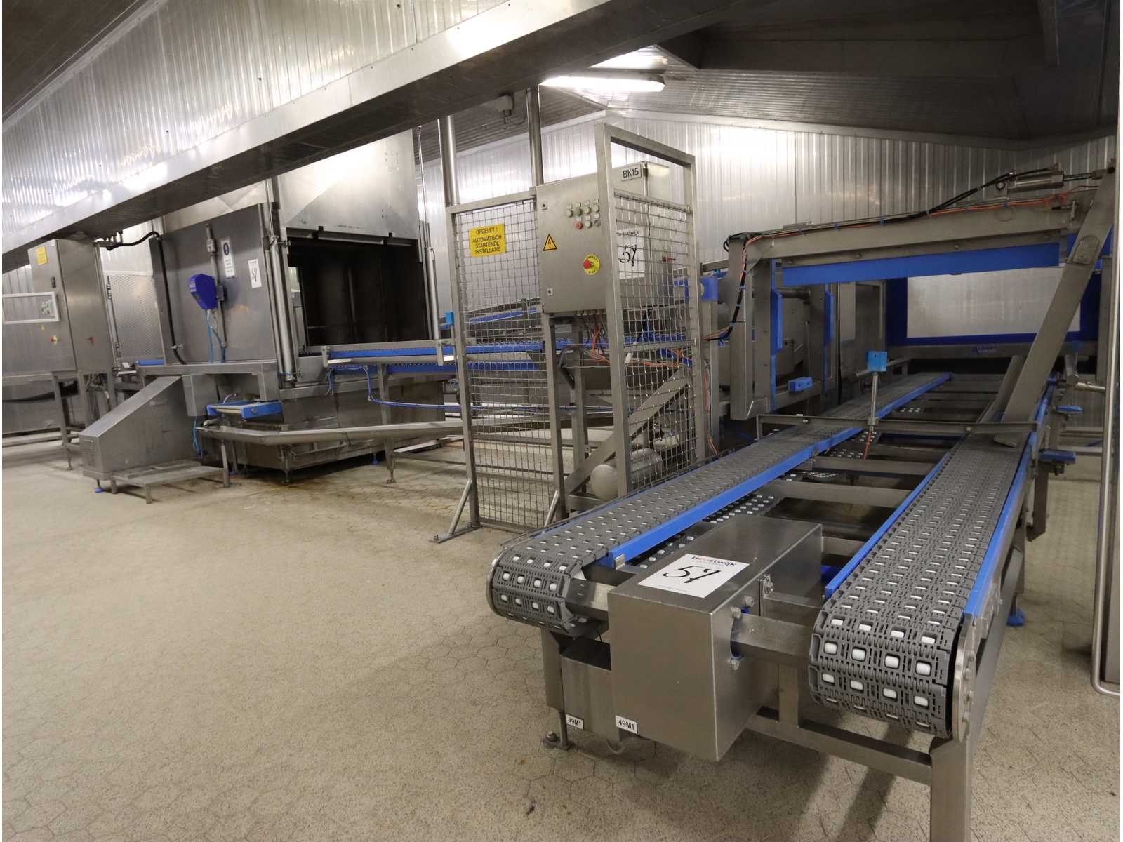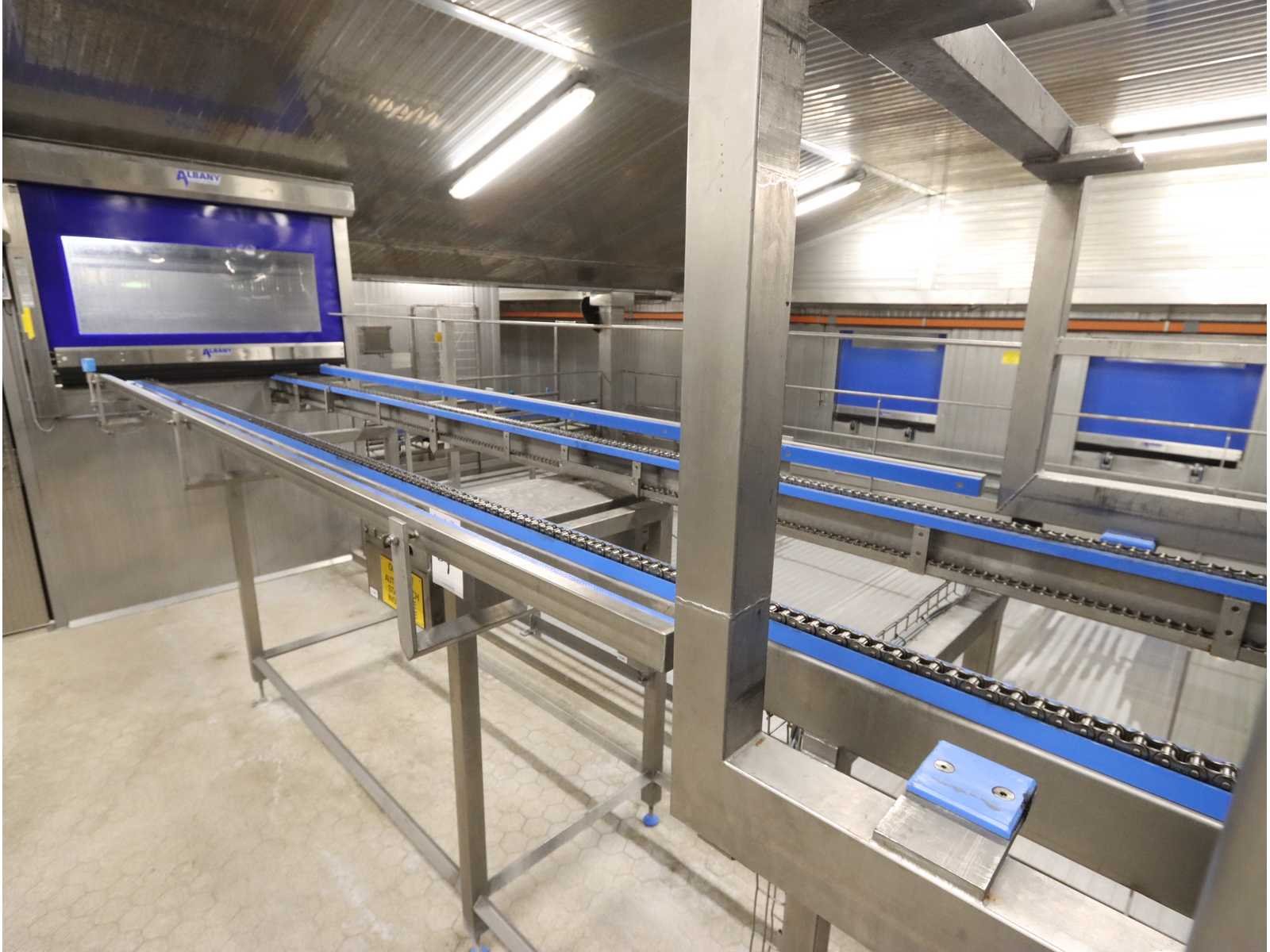 Bestaande uit: wasmachine met chemiedosering, doorvoer afmeting 1350x900 mm, ketting doorvoer transportbaan lengte 7750cmm, invoer kantel inrichting, ketting transportbaan, lengte 9800, schuingestelde lengte 7500 mm, transportbaan, lengte 7500 mm, uitvoer kantel inrichting, en 2 spoors uitvoer transportbaan, lengte 10500 mm, transport lift, bakken en snelloopdeuren niet inbegrepen Nee Merk: Nawi Bouwjaar: 2009 Serienummer: 200923 Aansluiting: 400V