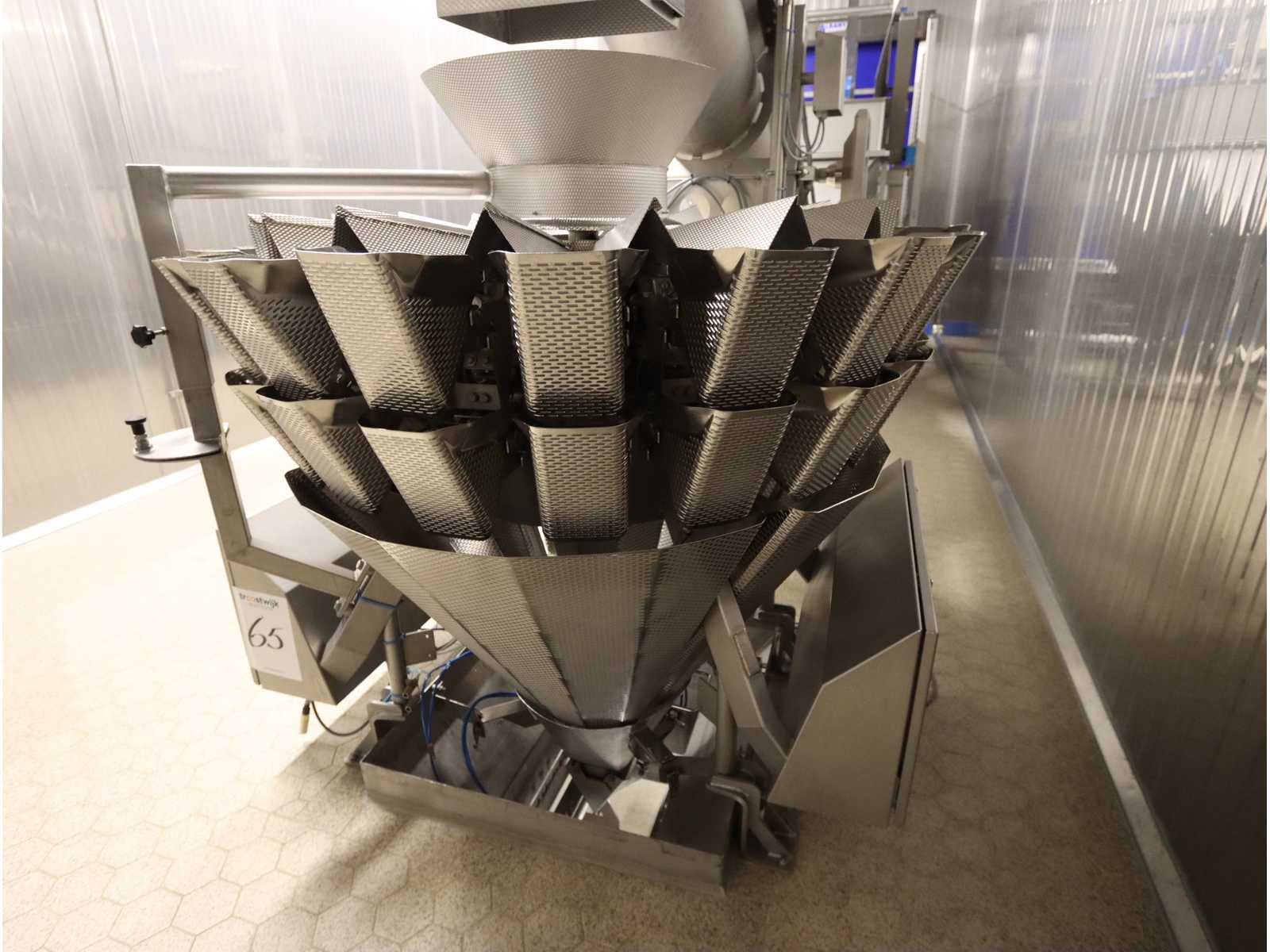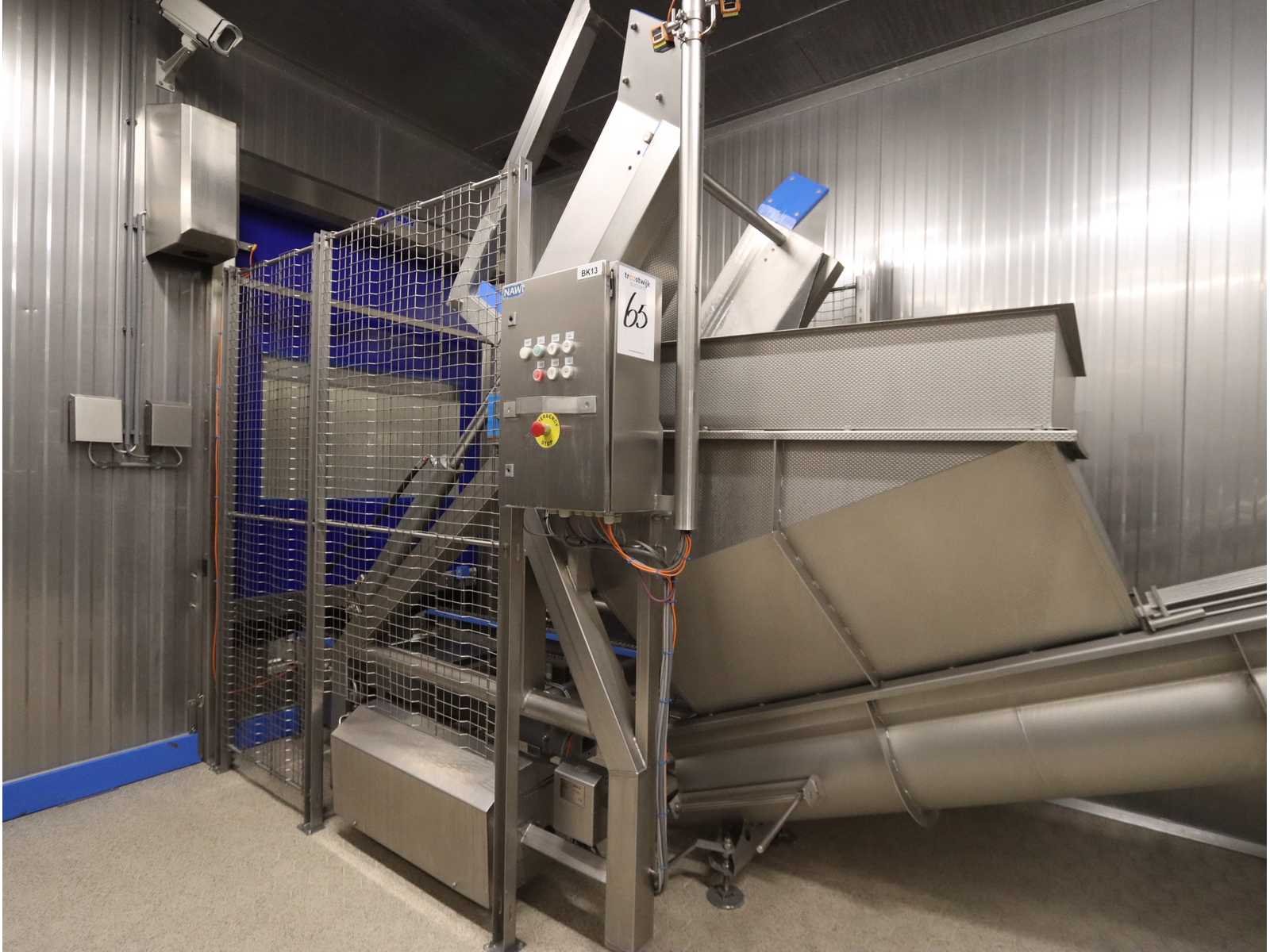 Bestaande uit: bakken kantelaar met invoer ketting transportbaan, spoorbreedte 850 mm, lengte 2000 mm, inclusief opvoer transportschroef met stortbunker, schroef Ø 400 mm, schroef lengte 4500 mm, uitvoer hoogte 1500 mm, invoer opening bunker circa 1100x1300 mm, “Bilwinco” multihead weger, type BW118W 18 kops, weegbereik 10-3000 gram, inclusief mobiel rek met toebehoren, vloer doorvoer niet inbegrepen Nee Merk: Nawi/Bilwinco