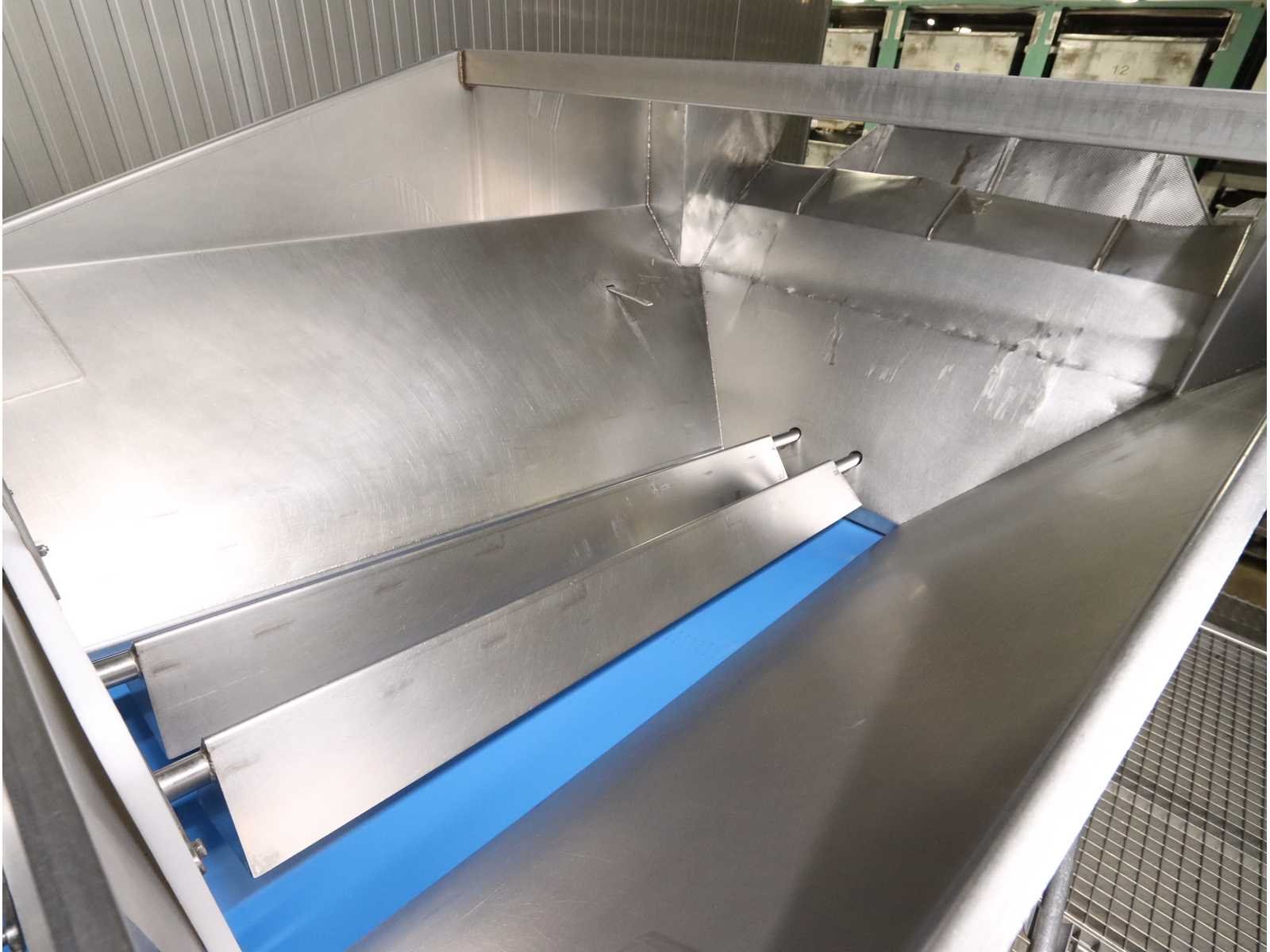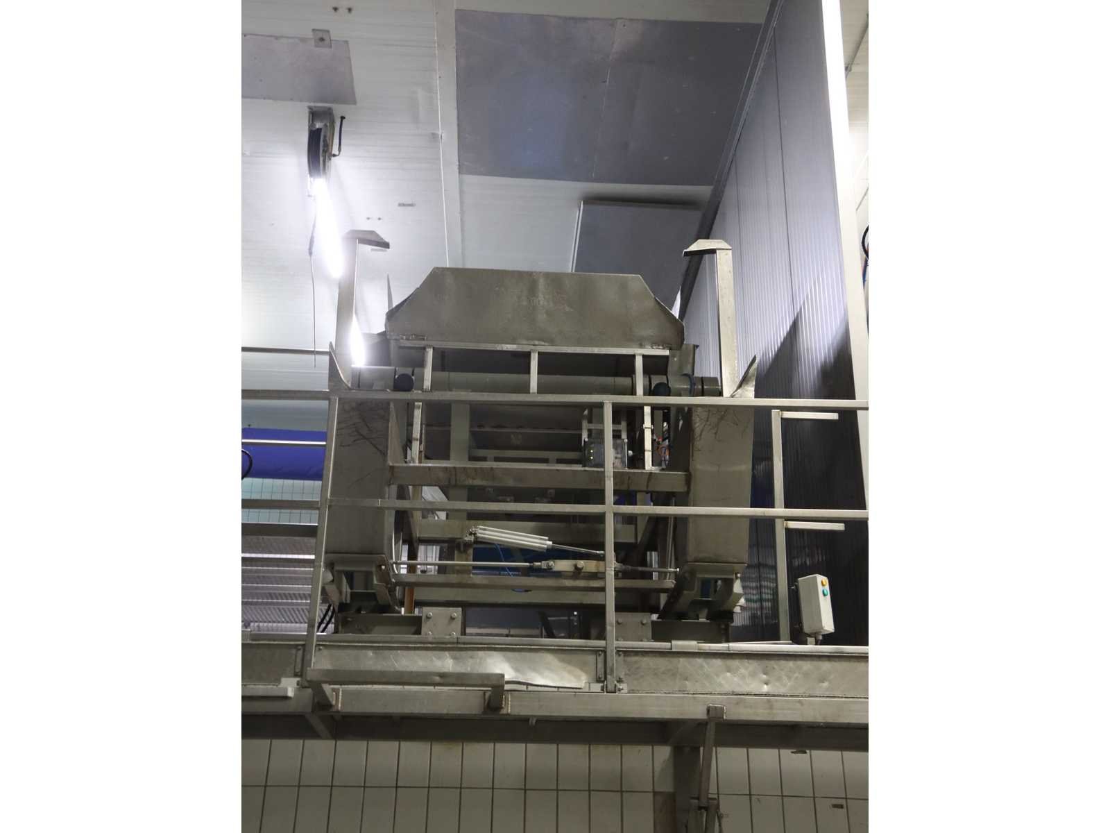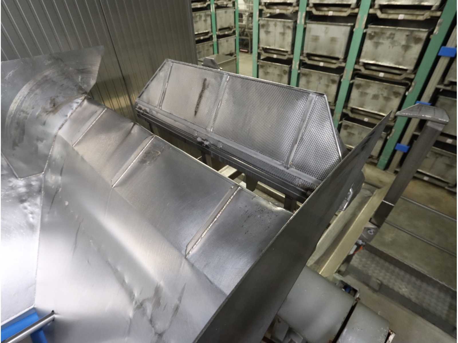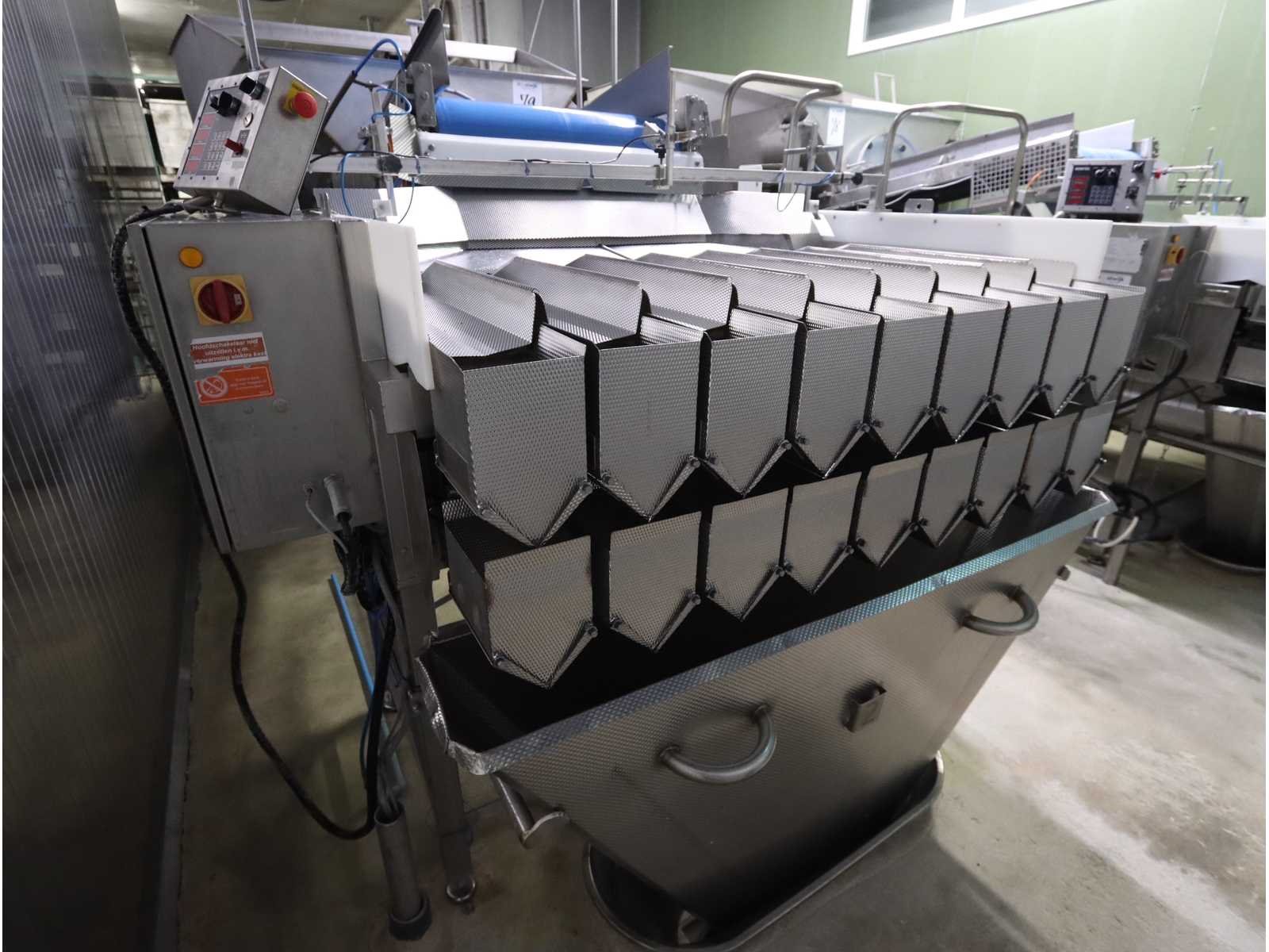 Bestaande uit: bakken kantelaar met onderlopende transportband, breedte 800 mm, lengte 3600 mm, hopper opening 2700x1800, “Jasa” multilijns weger, type 2009PCB , 9 lijns, weegbereik 10000 gram, vloer doorvoer, bordes en besturing niet inbegrepen Nee