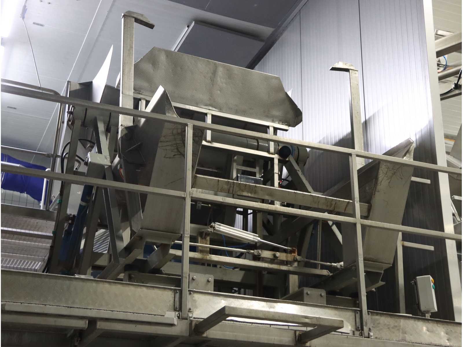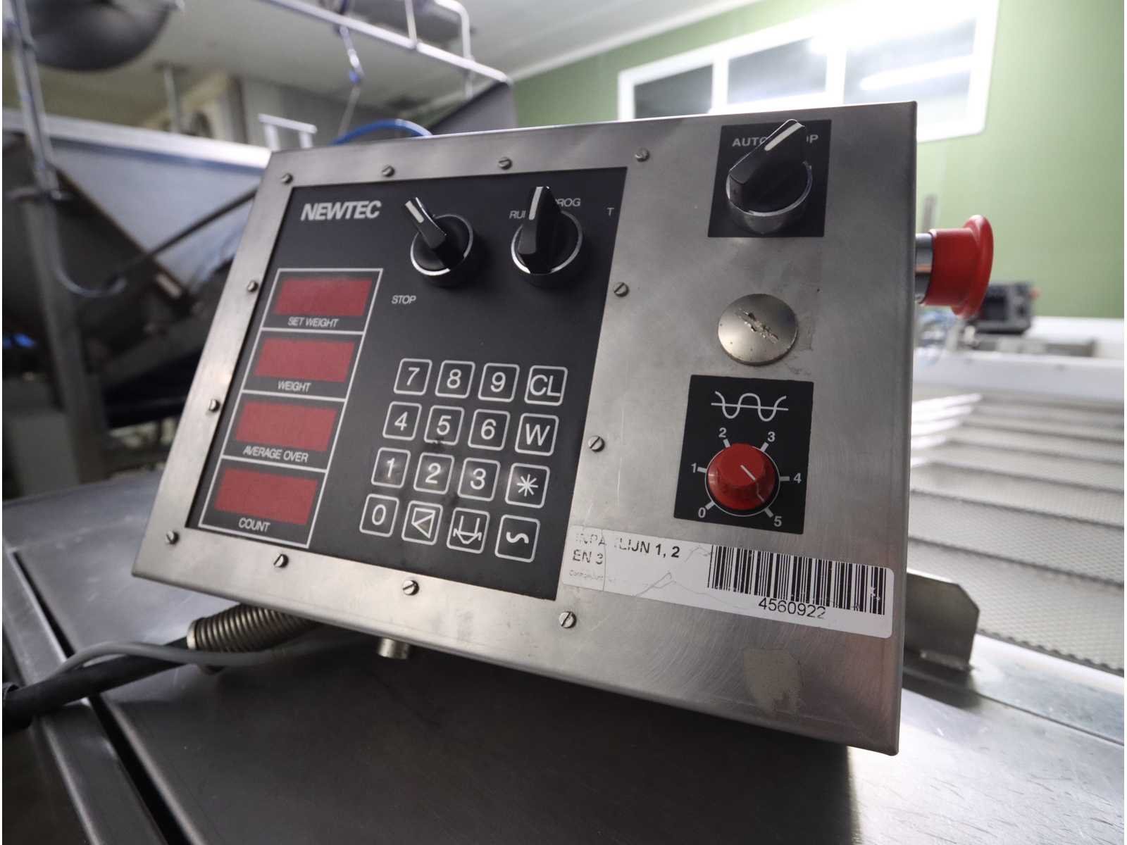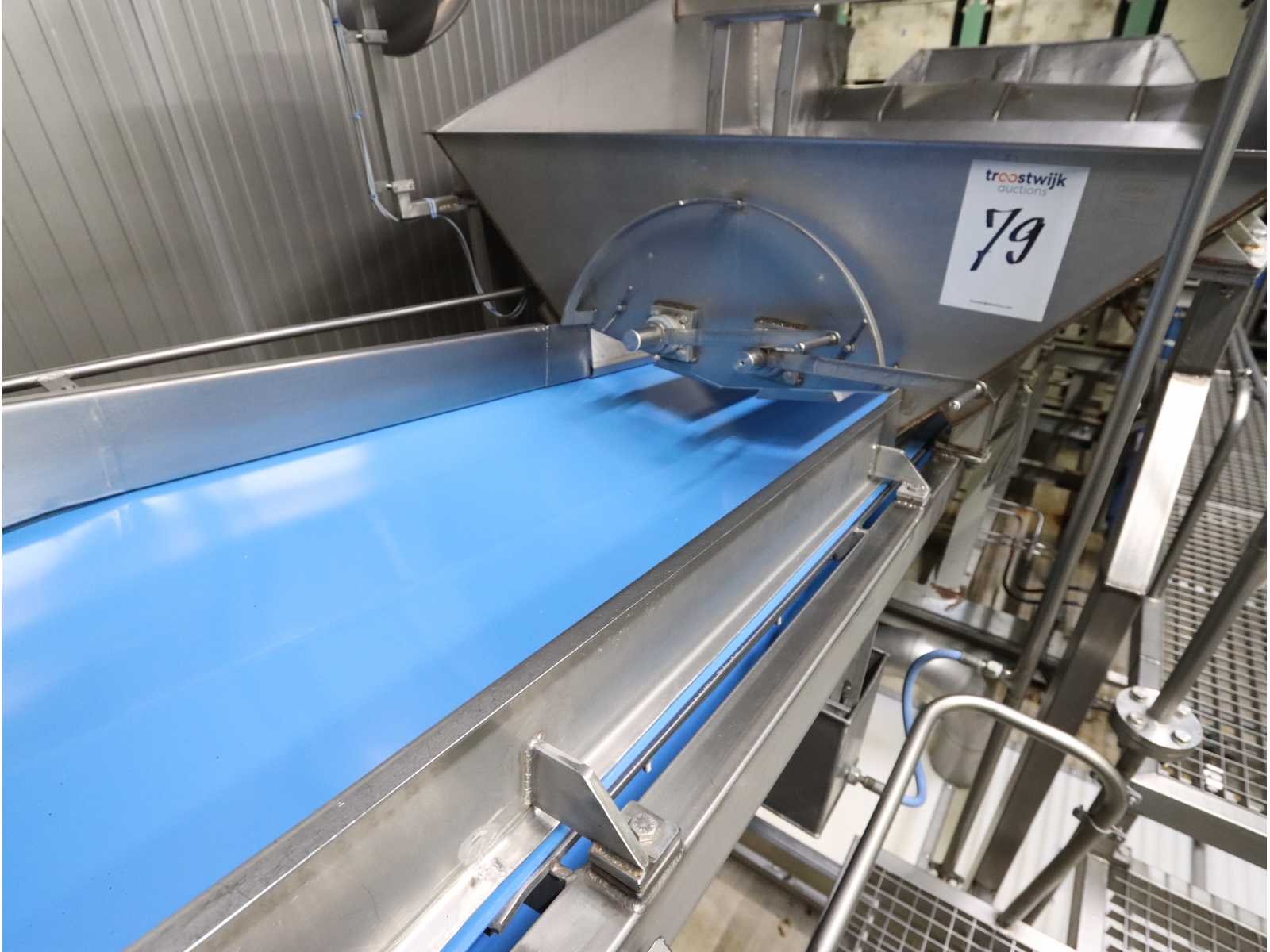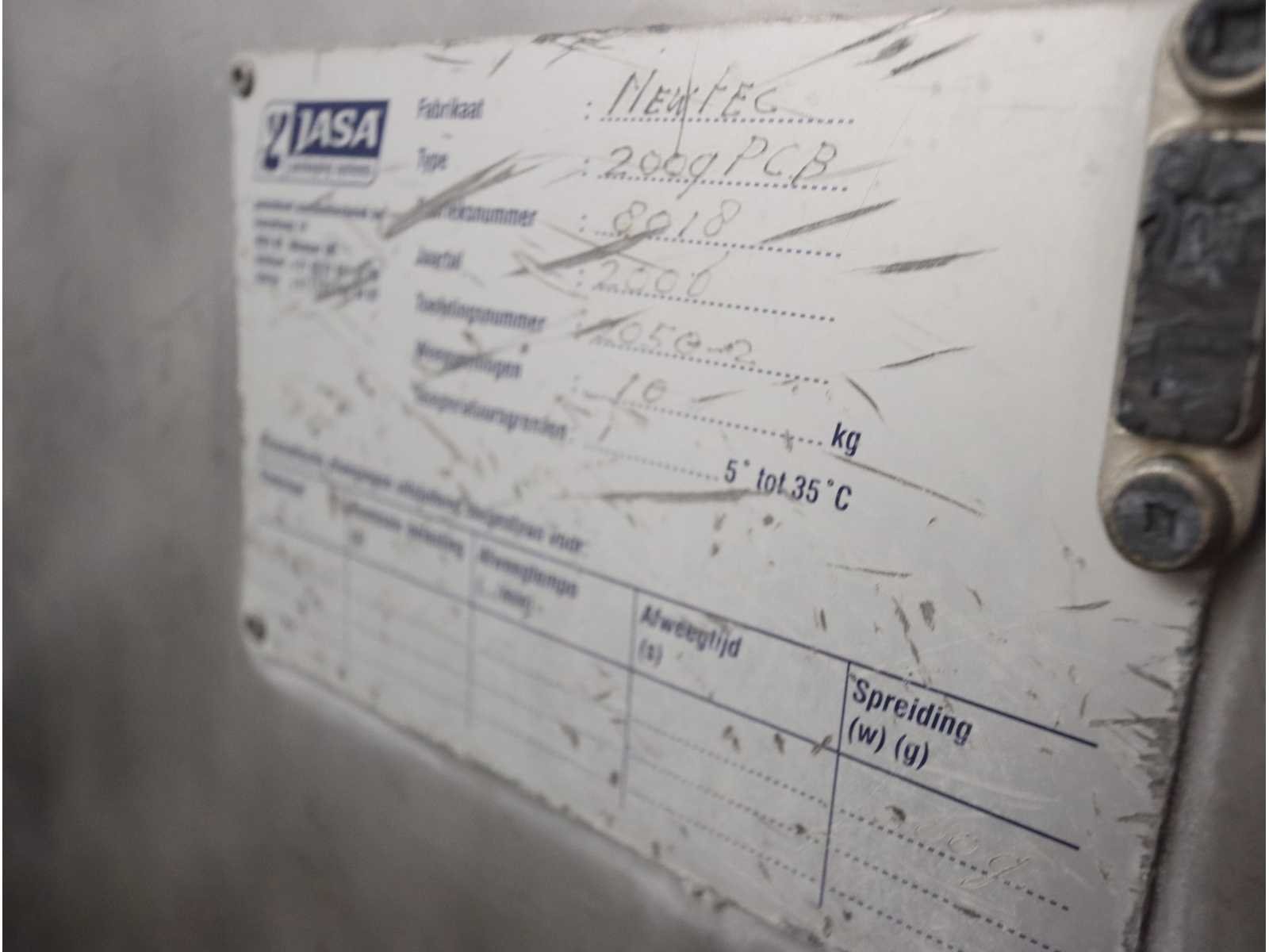 Bestaande uit: bakken kantelaar met onderlopende transportband, breedte 800 mm, lengte 3600 mm, hopper opening 2700x1800, “Jasa” multilijns weger, type 2009PCB , 9 lijns, weegbereik 10000 gram, vloer doorvoer, bordes en besturing niet inbegrepen Nee
