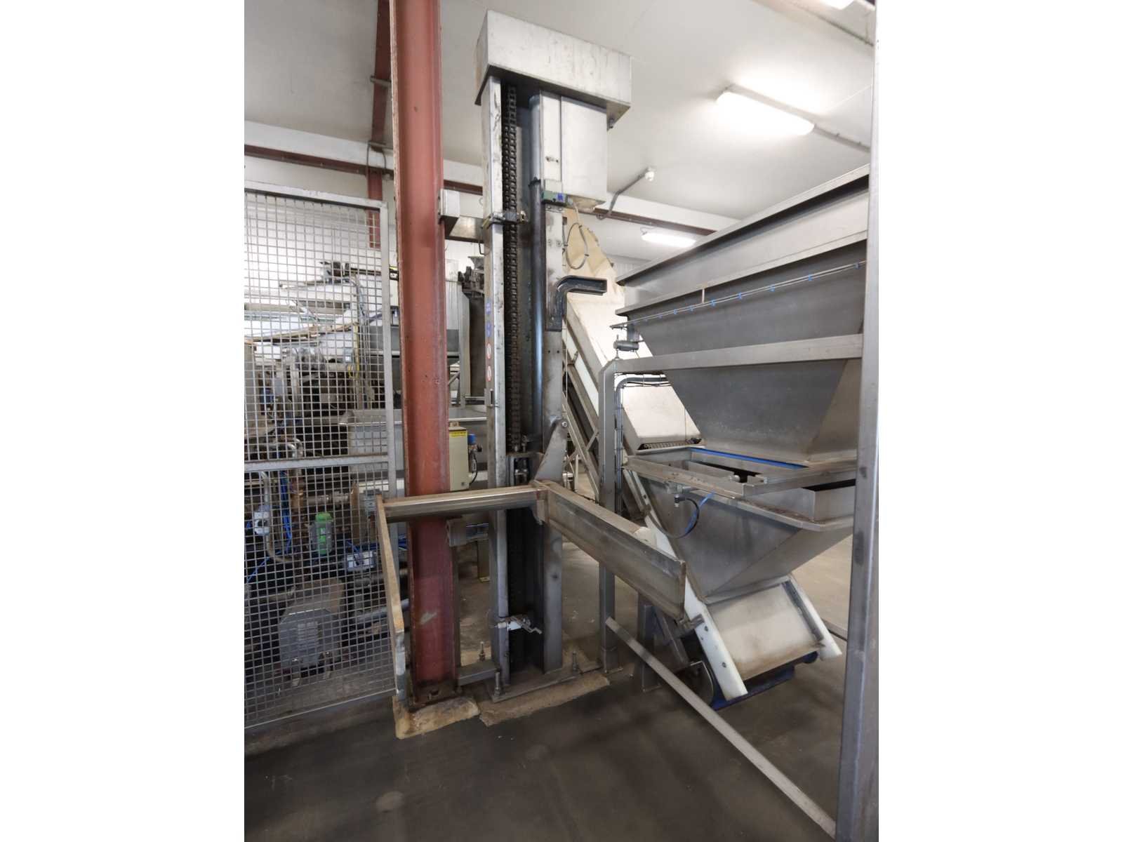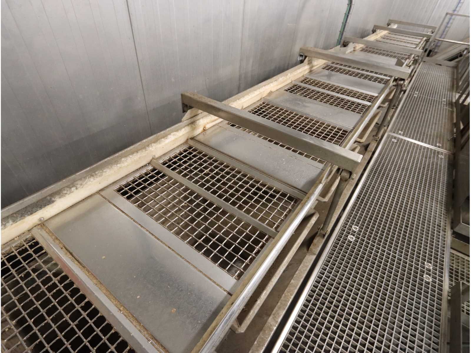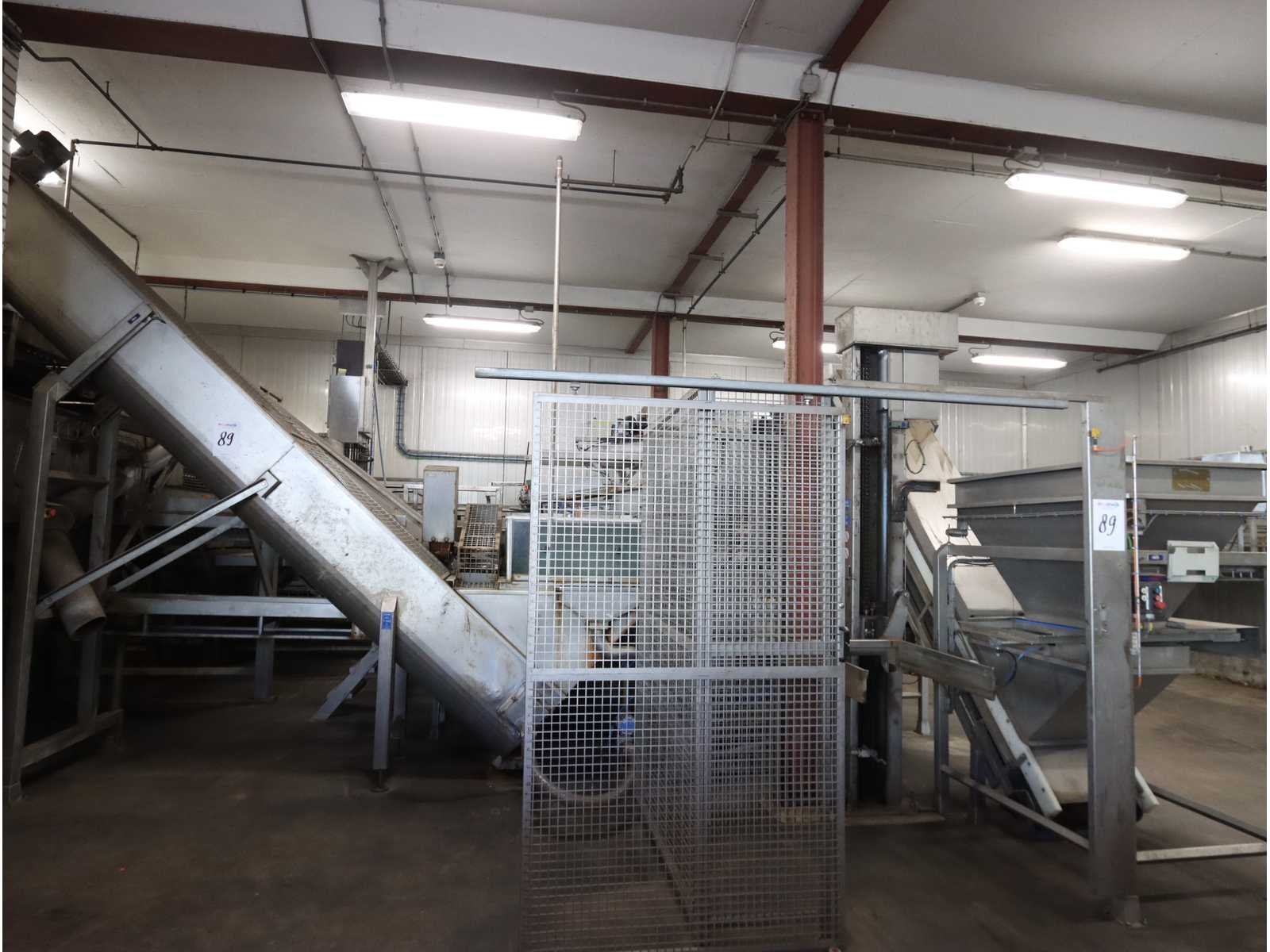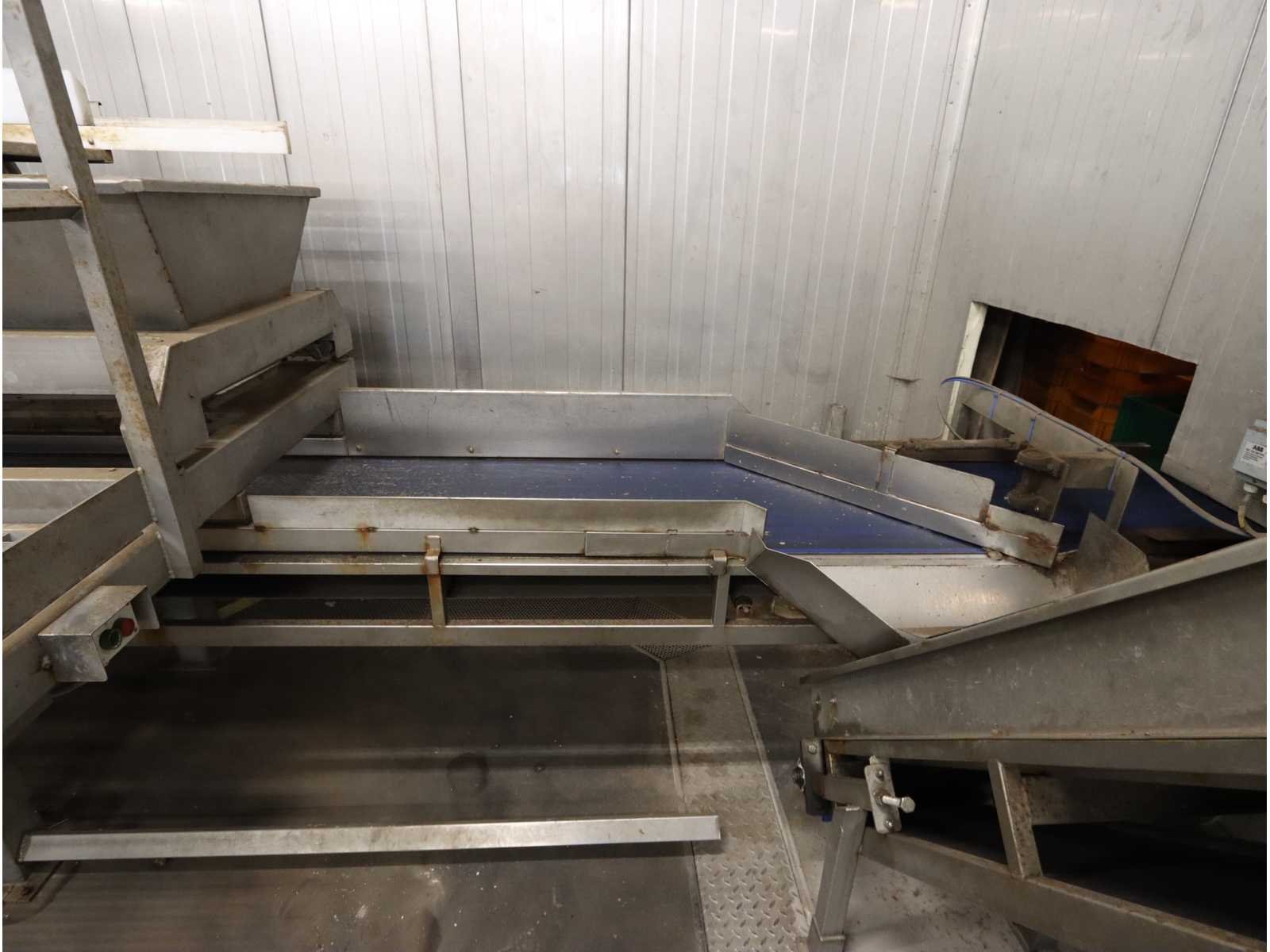 Bestaande uit: opvoer transportschroef, opvoer transportband, rollen sorteerlijn, 10 voudige zeef sorteer lijn, bakken kantel inrichting, geheel voorzien van diverse transportbanden en centrale besturing, gebruikte vloer oppervlakte 9000x13500 mm Nee