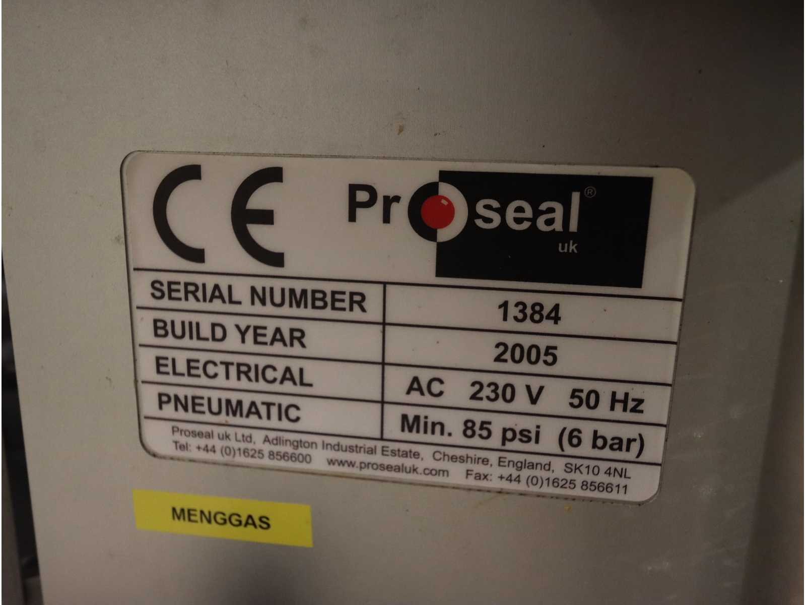 Folie rolbreedte 350 mm, voorzien van menggas toevoeg unit, en toebehoren Nee Merk: Proseal Type: GTR Bouwjaar: 2005 Serienummer: 1384 Aansluiting: 230V Totale afmeting L: 1500mm Totale afmeting Breedte: 1000mm Totale afmeting Hoogte: 1700mm