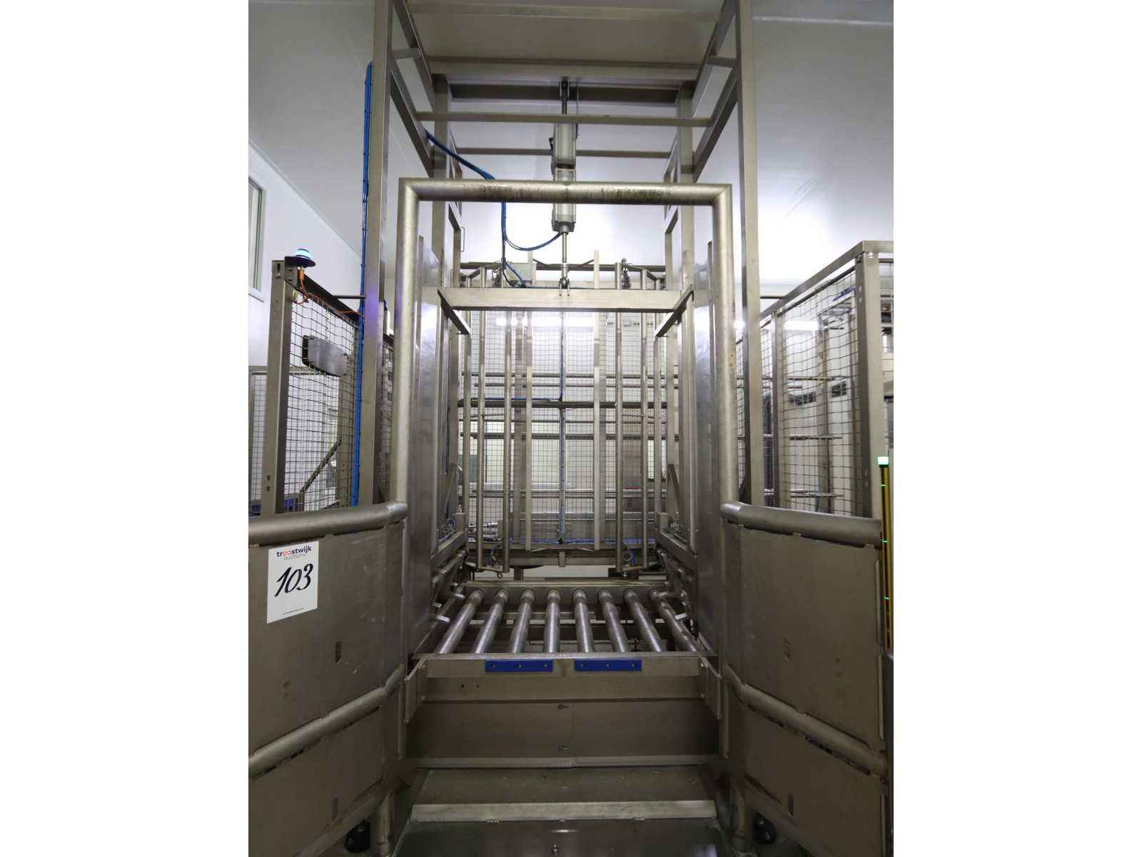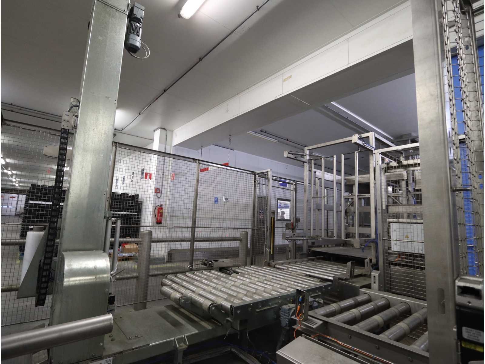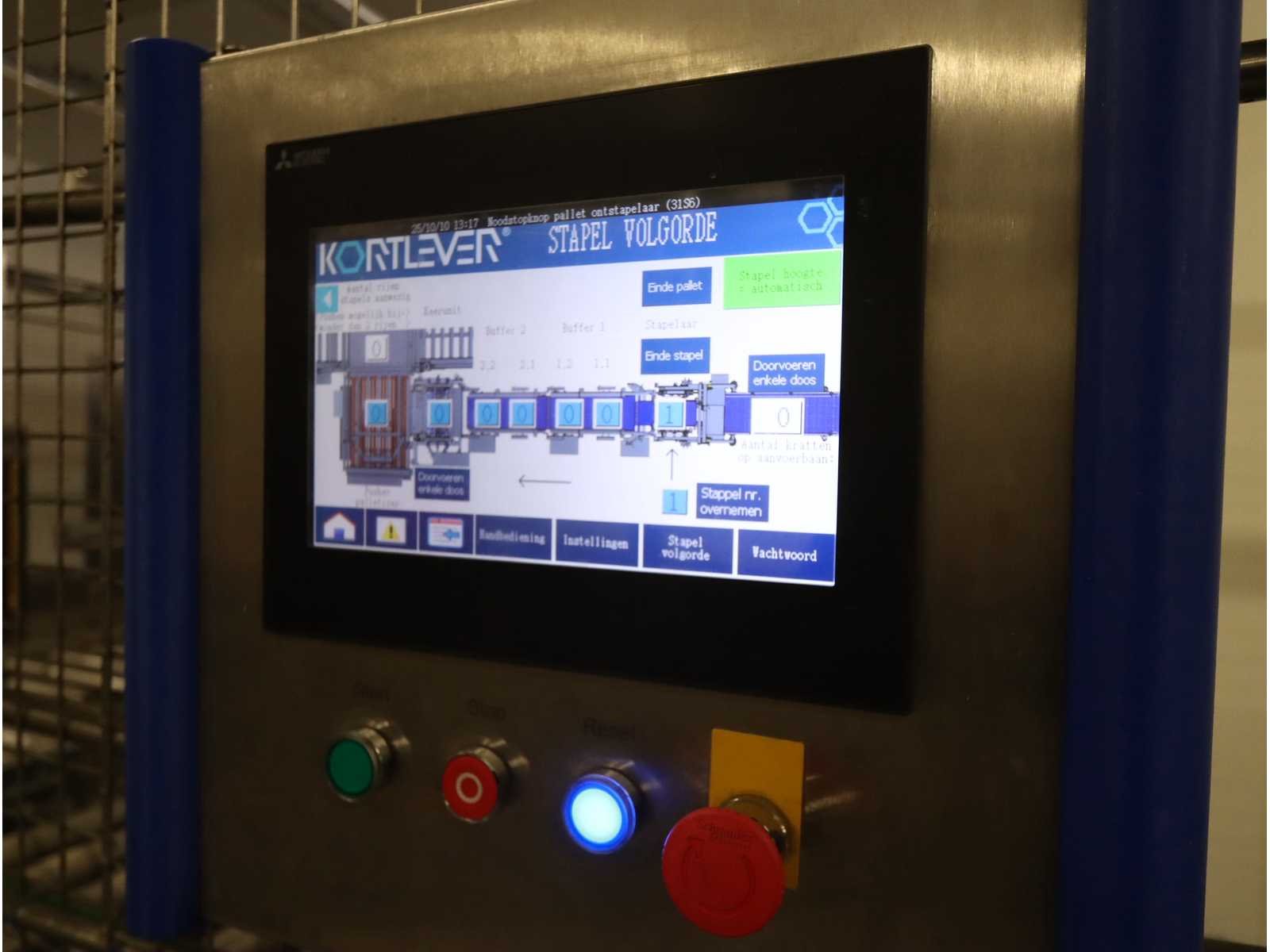 Voorzien van: pallet invoerbuffer, doorschuif/stapel unit, “Borst” folie wikkelmachine, labelunit, centrale besturingskast en schakelkast, invoer rollenbaan tot eerste codeer unit, rollenbanen aangedreven, baan breedte 1070 mm, opstel lengte 10500/15000 mm Nee Merk: Kortlever Type: P1500ssu Bouwjaar: 2018 Invoer rollenbaan: true Afvoer rollenbaan: true Veiligheidshekwerk: true Aansluiting: 400V