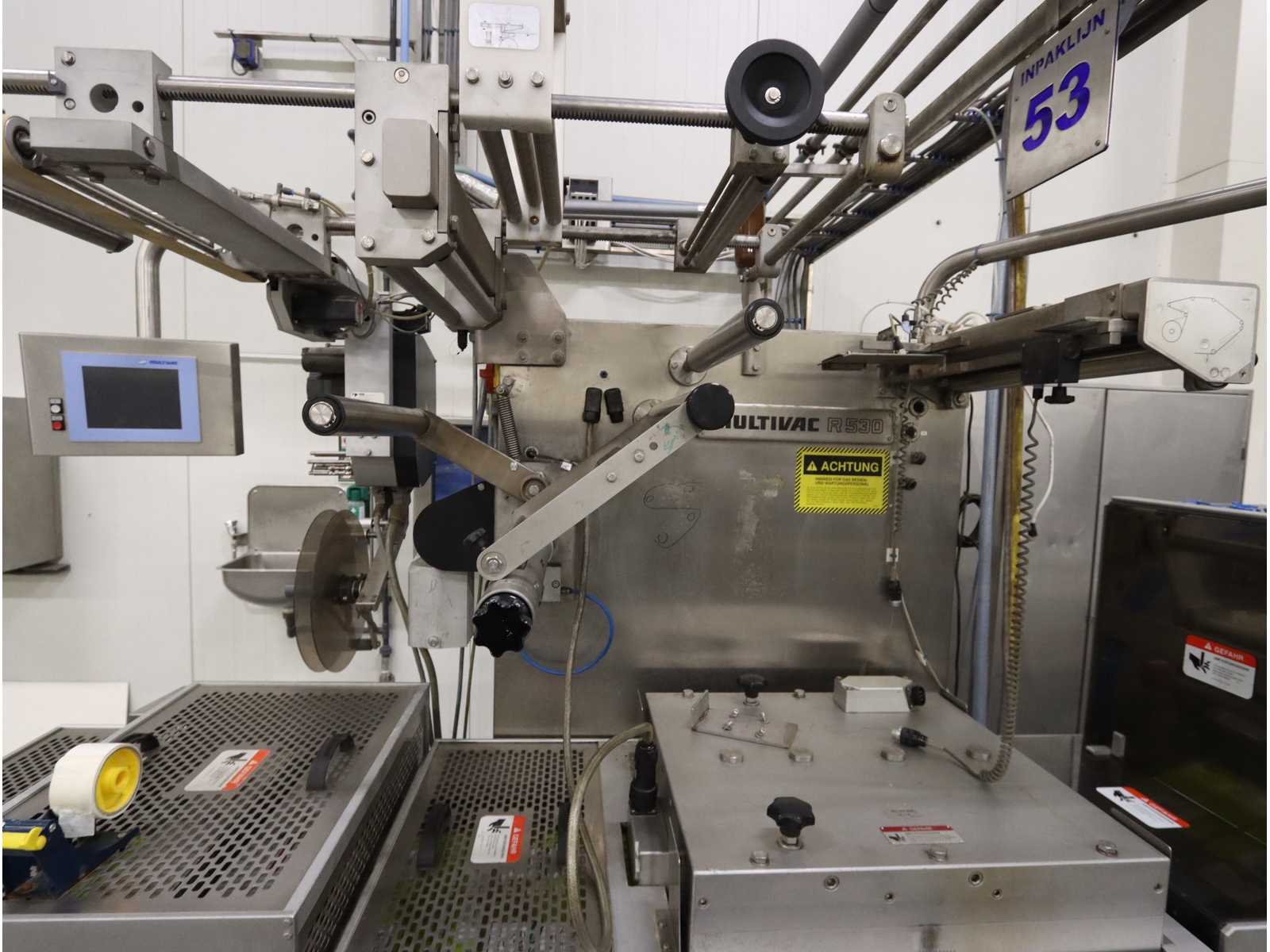 Voorzien van digitale uitlezing, opgebouwde labeler type MR615, vacuümpomp, transportkar met toebehoren en mobiele lift Nee Merk: Multivac Type: R530 Bouwjaar: 2006 Serienummer: 107030 Foliebreedte: 450mm Vermogen: 13.5kW Aansluiting: 400V Totale afmeting L: 7400mm Totale afmeting Breedte: 1600mm Totale afmeting Hoogte: 2600mm