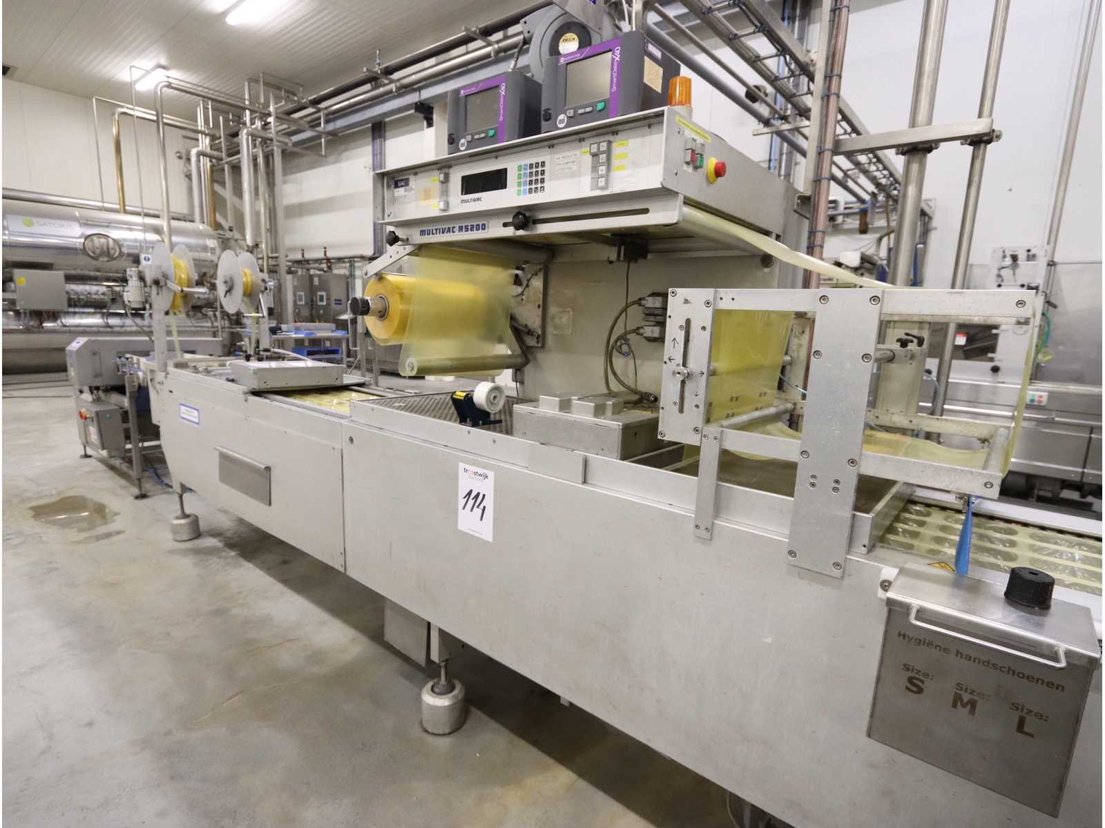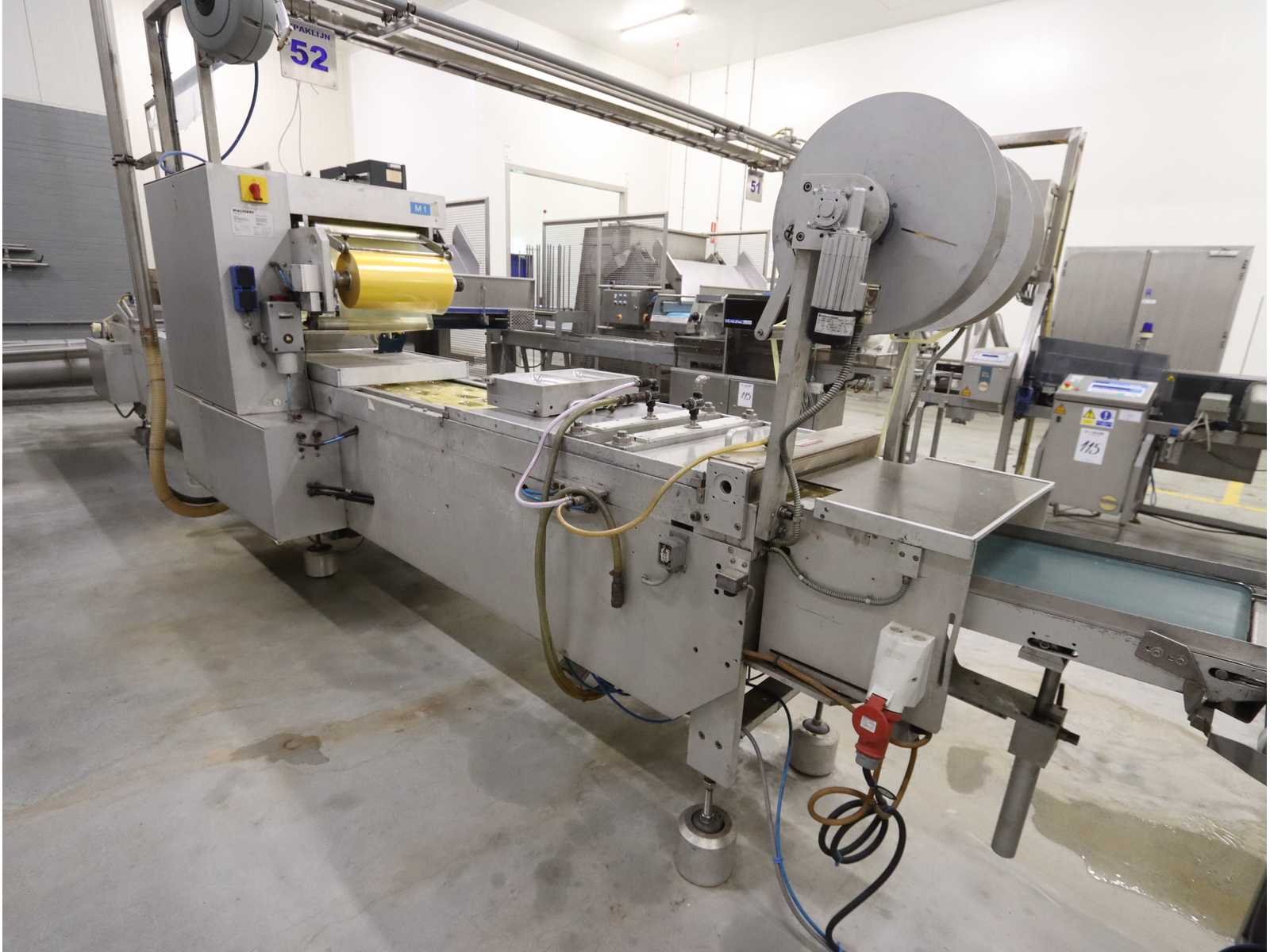 Voorzien van digitale uitlezing, dubbele printer, en “Loma” metaaldetector, type IQ2, (2002) Nee Merk: Multivac Type: RT5200MC Bouwjaar: 1992 Serienummer: 2777/110 Foliebreedte: 420mm Vermogen: 15kW Aansluiting: 400V Totale afmeting L: 8400mm Totale afmeting Breedte: 1020mm Totale afmeting Hoogte: 2000mm