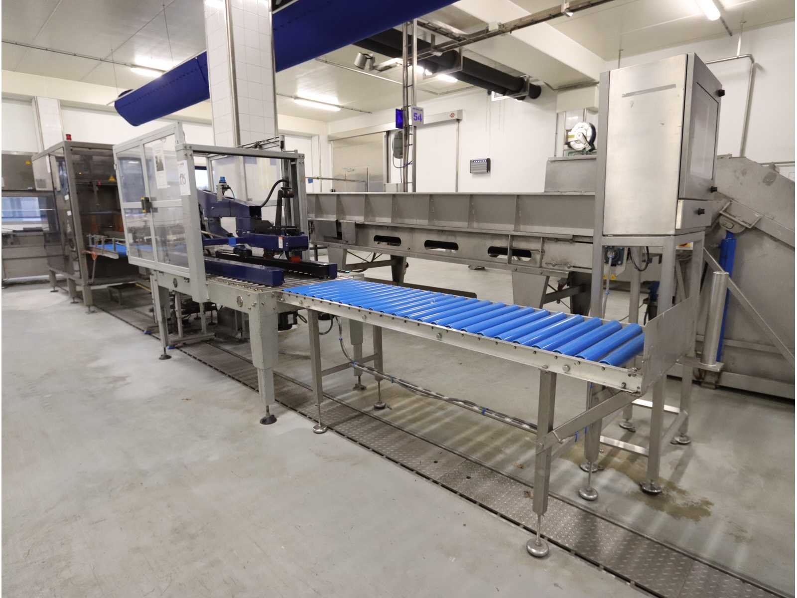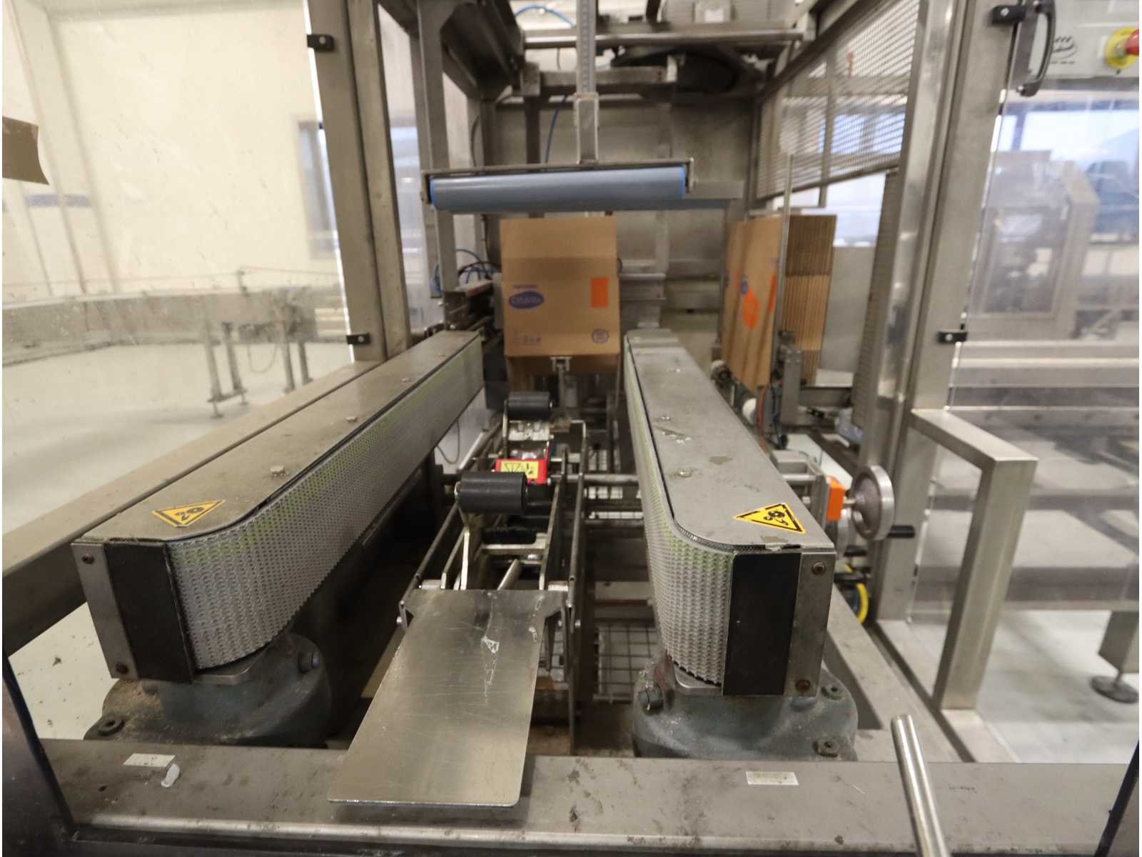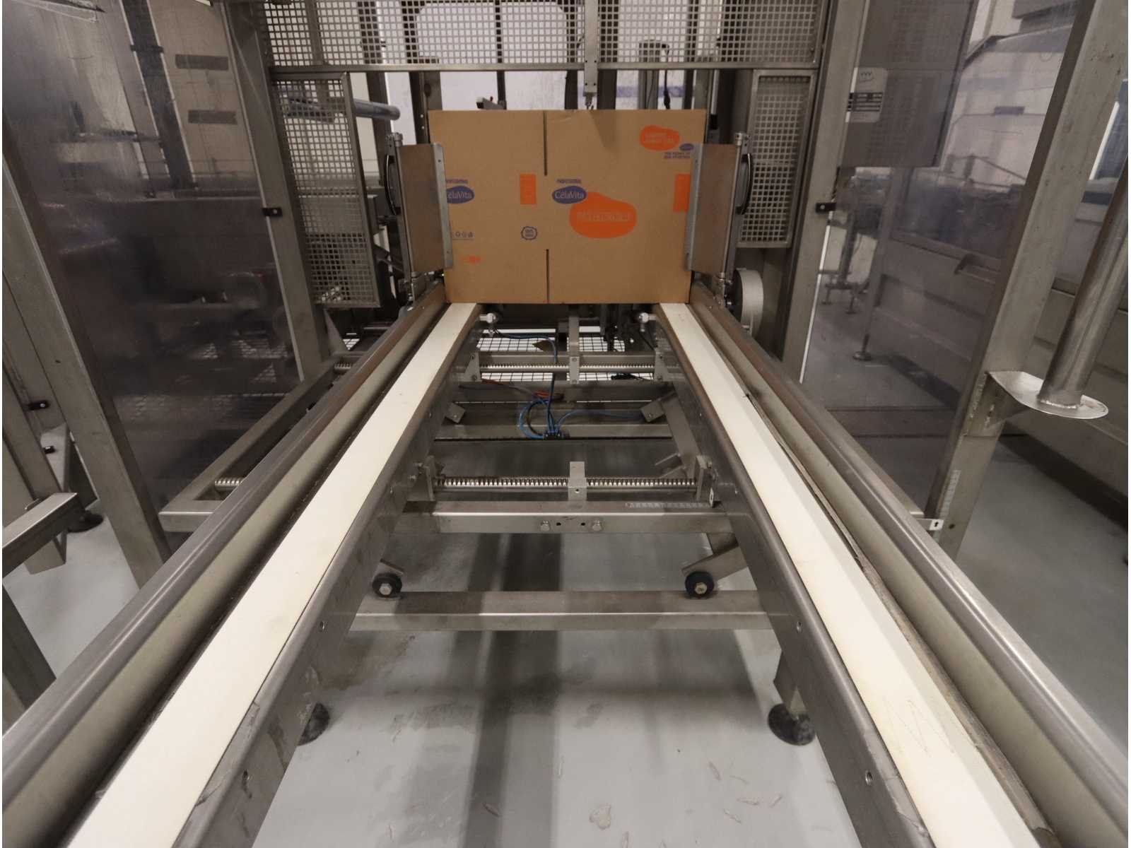 Bestaande uit: dozen opzet machine “Rembrandt” RCE-2 (2000) met ondersluiting, transportband met inktjet coder “Domino”, type C6000, “deWitt” dozen sluiter en uitvoer rollenbaan Nee