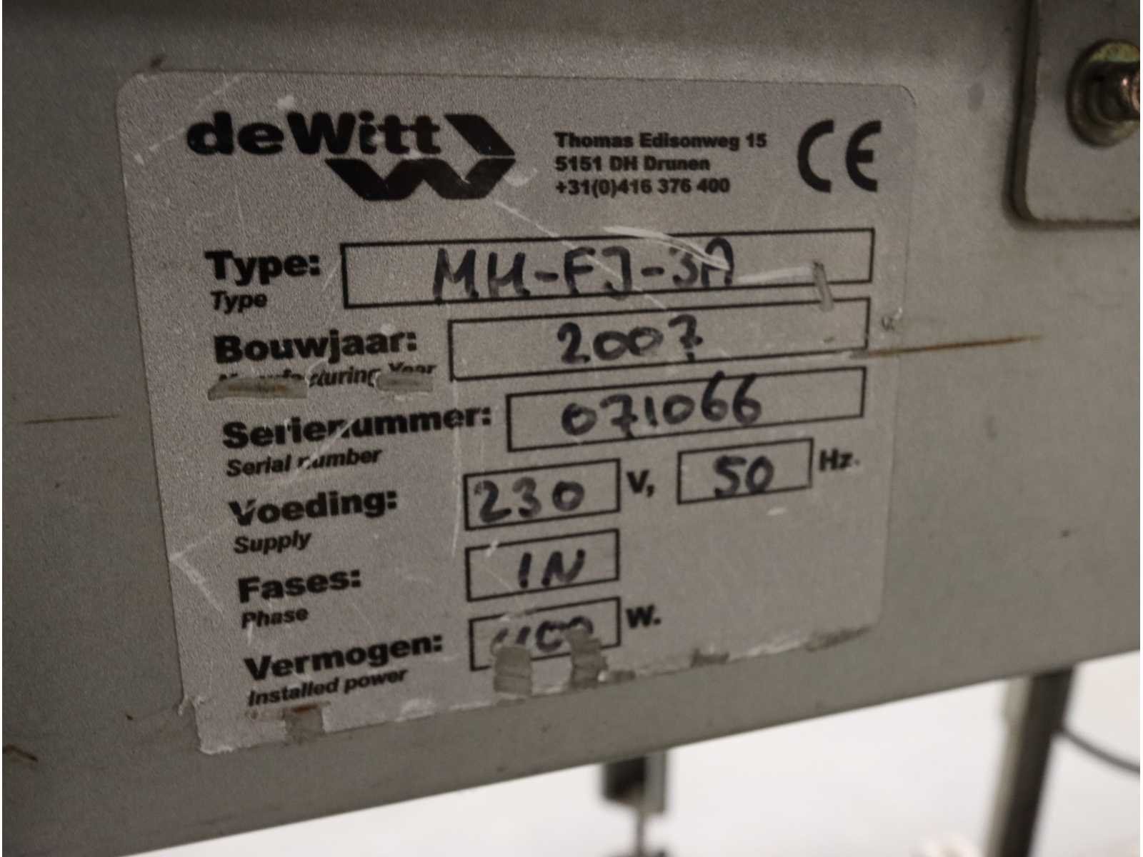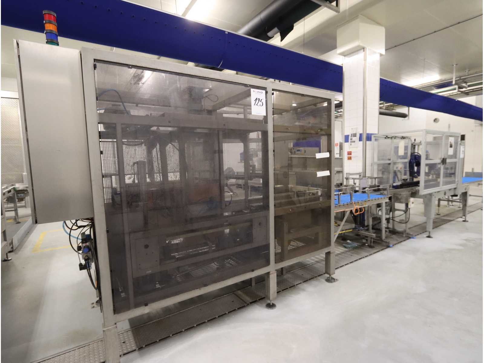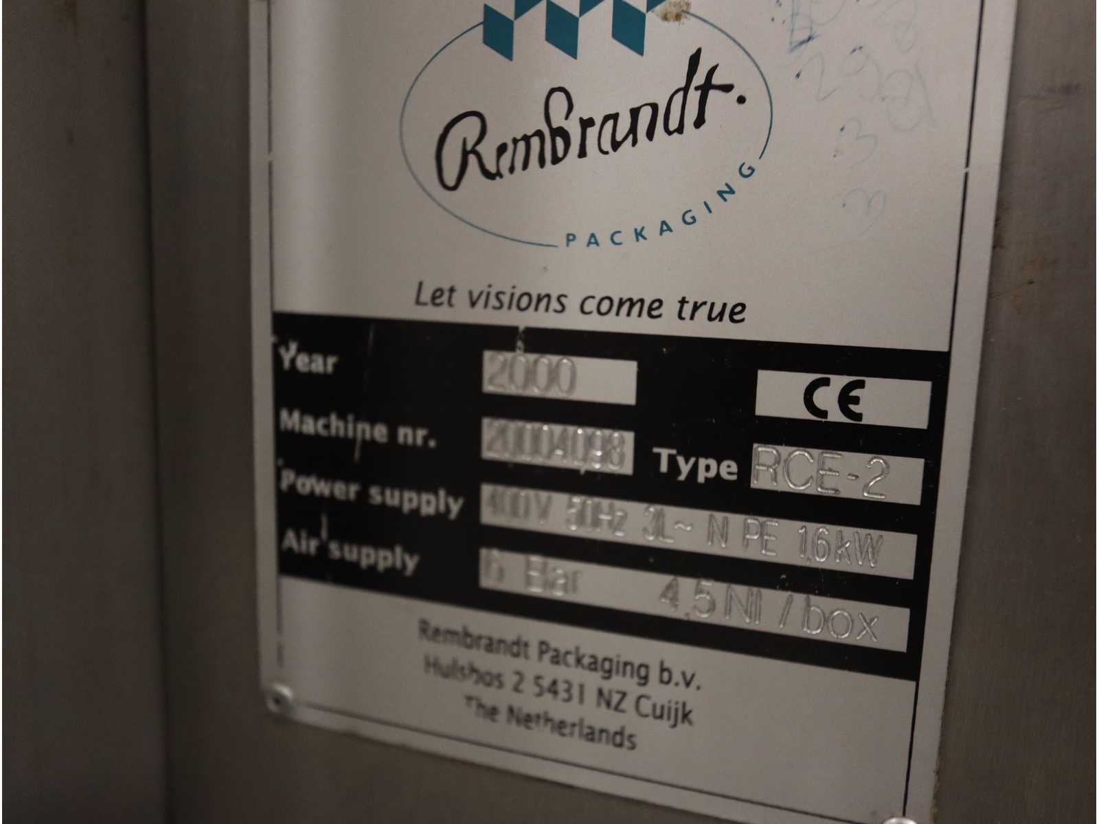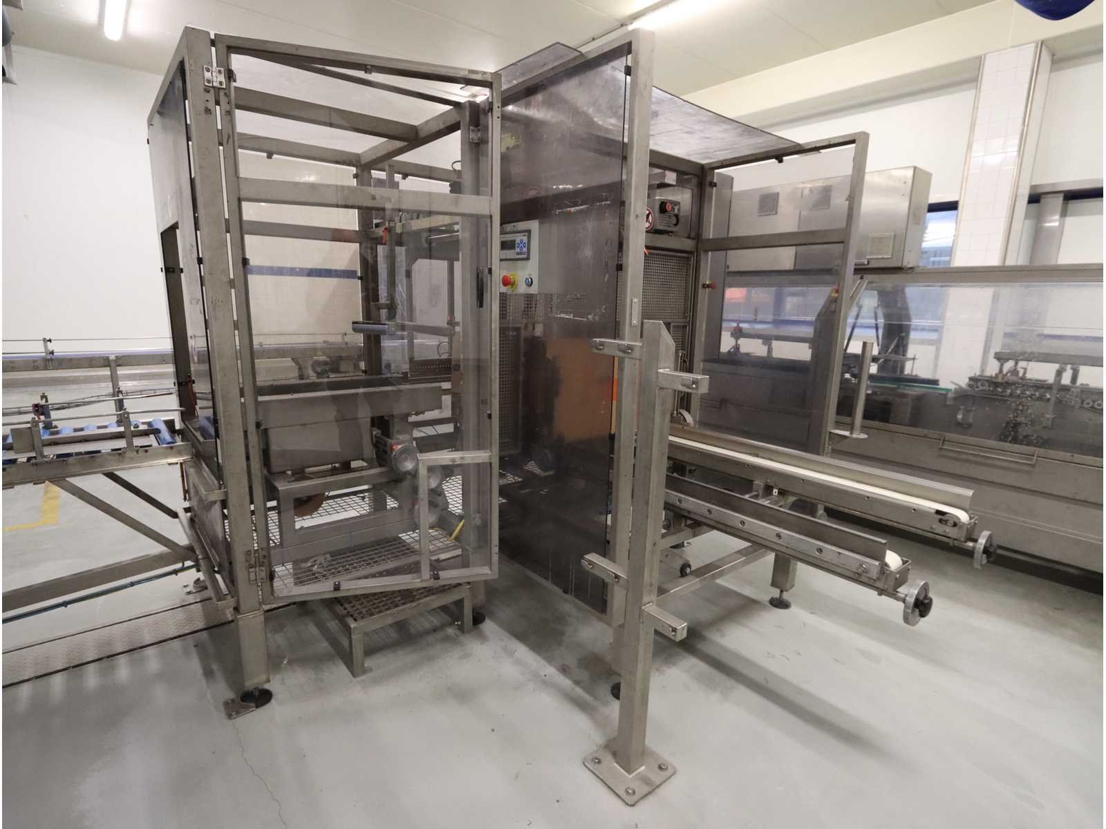 Bestaande uit: dozen opzet machine “Rembrandt” RCE-2 (2000) met ondersluiting, transportband met inktjet coder “Domino”, type C6000, “deWitt” dozen sluiter en uitvoer rollenbaan Nee