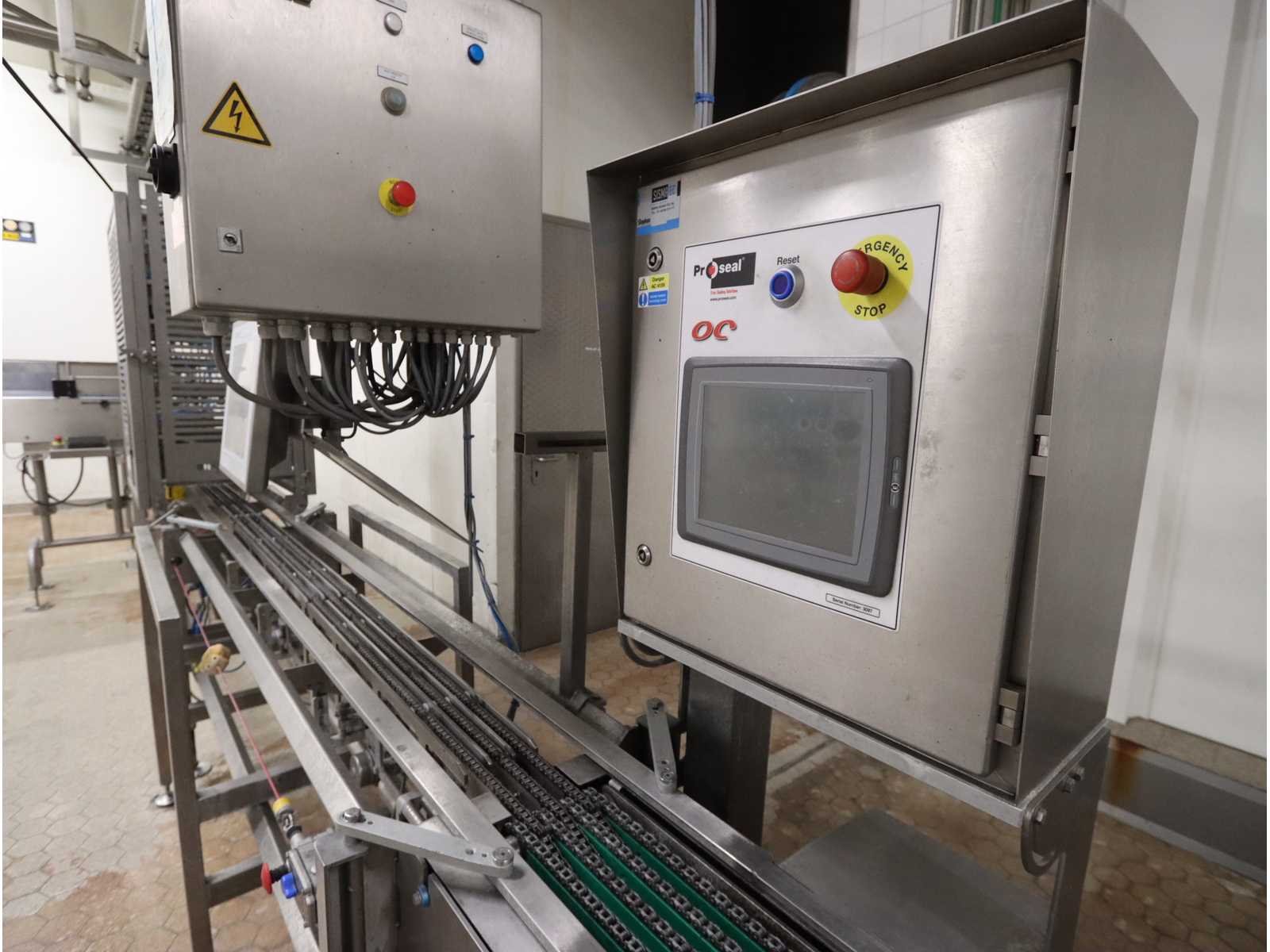Maximaal folie rolbreedte 340 mm, voorzien van touchscreen bediening, inclusief “Intray” buffer aanvoer station, en ketting transportbaan met meenemers, Nee Merk: Proseal Type: CT2V Bouwjaar: 2014 Serienummer: 3098 Werkbreedte: 300mm Transportband: true Transportband afm. h: 4300mm Aansluiting: 400V