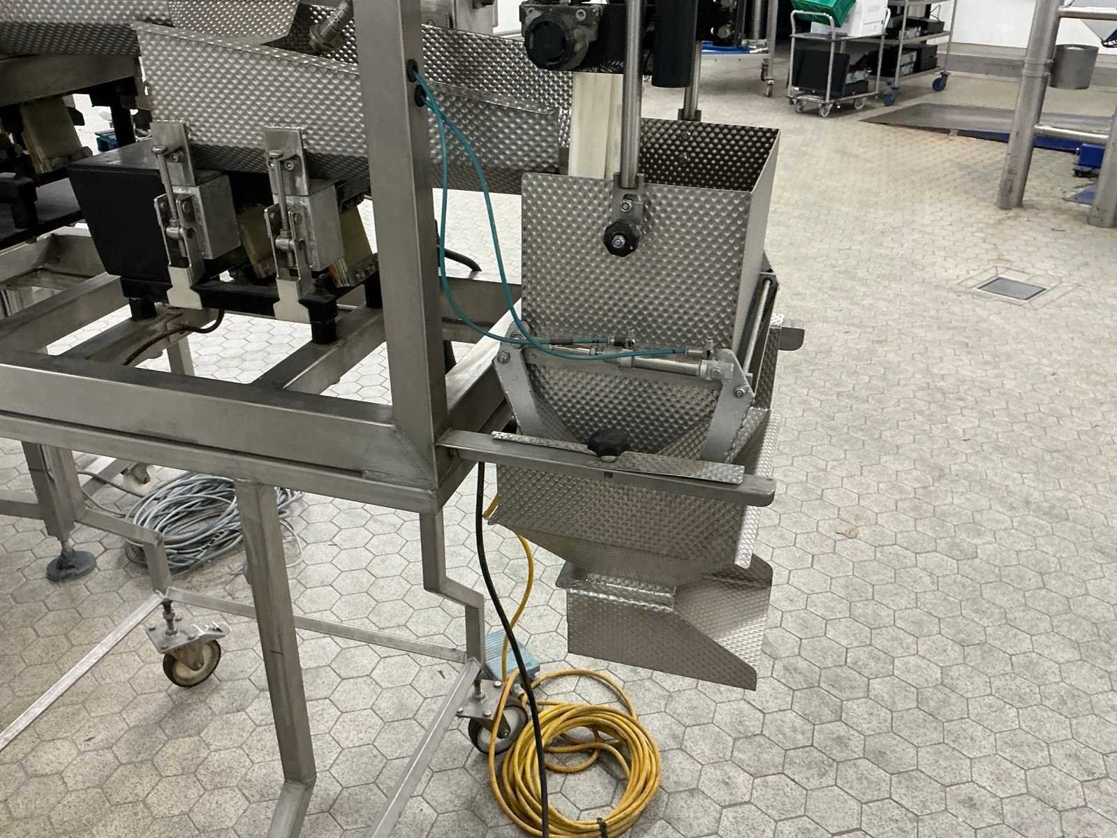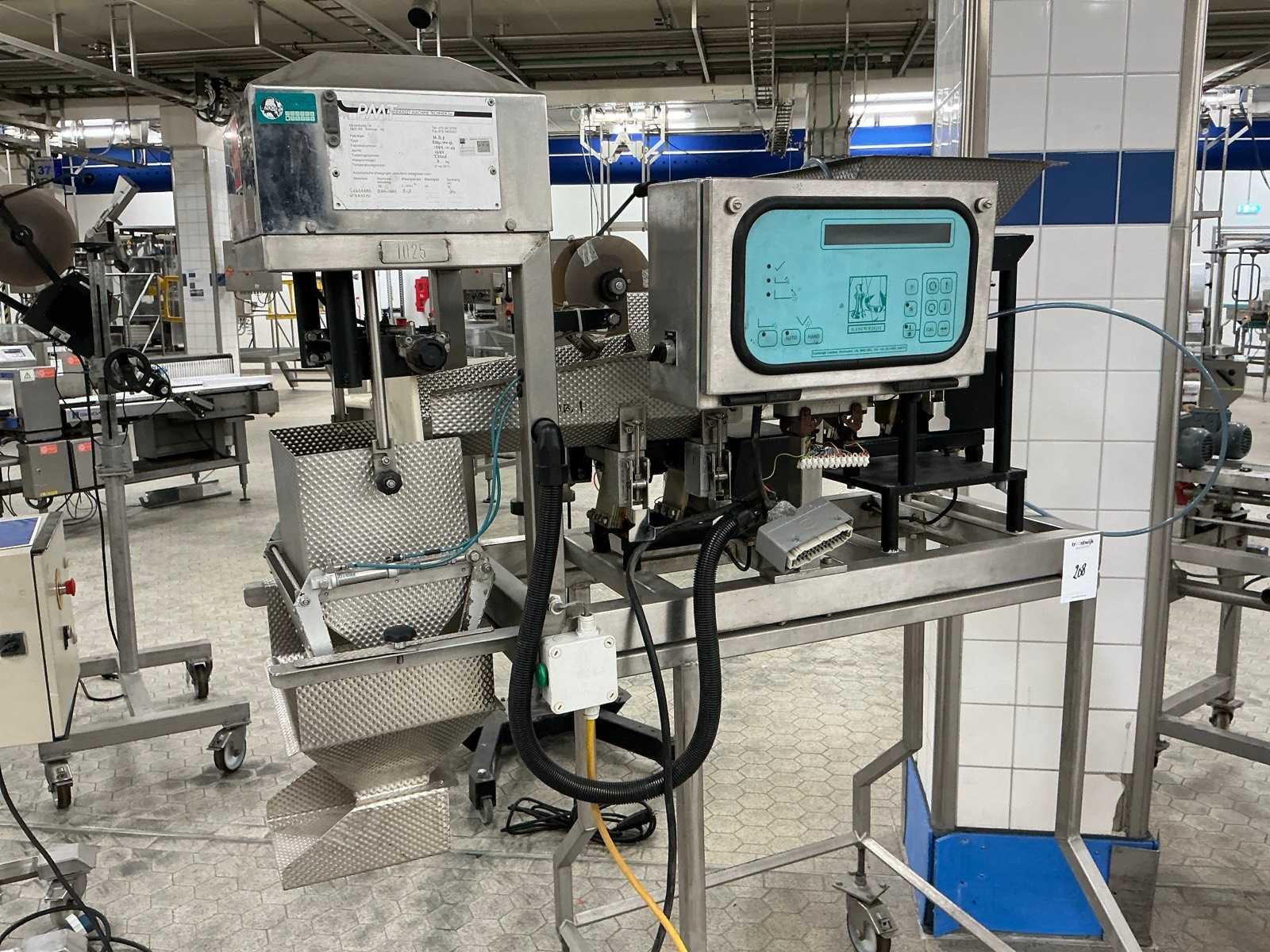 3-7 wegingen/min, op mobiel onderstel, voorzien van voetbediwning Nee Merk: PMT/M.B.P. Type: Easy weigh Bouwjaar: 1994 Weegbereik max: 2000g Digitale uitlezing: true Totale afmeting L: 1350mm Totale afmeting Breedte: 900mm Totale afmeting Hoogte: 1800mm