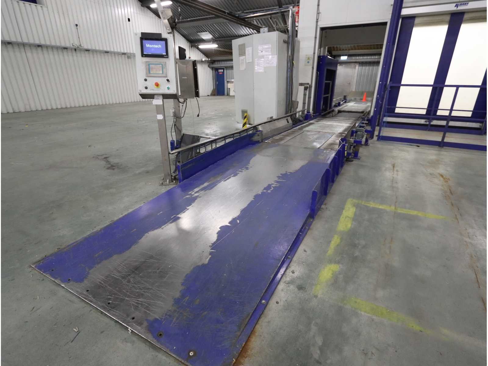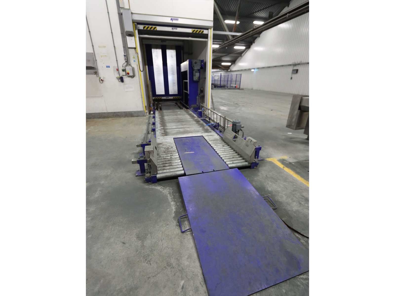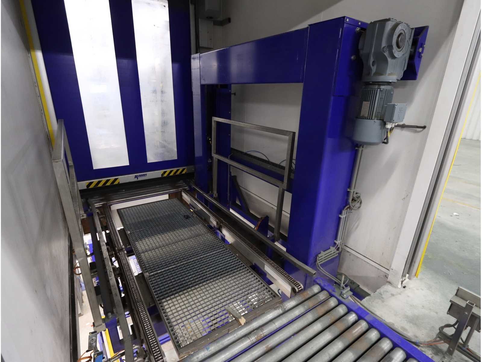 Hef hoogte 4600 mm, voorzien van veiligheidshek, optische beveiliging, schakelkast, inrij buffer, ketting transportbaan, lengte 3500 mm, 2 zijdige rollen uitvoer transportbaan, lengte 4500 mm, (speeddeuren op de 1e verdieping zijn niet inbegrepen) Nee Plateau afm. l: 2250mm Plateau afm. b: 1120mm