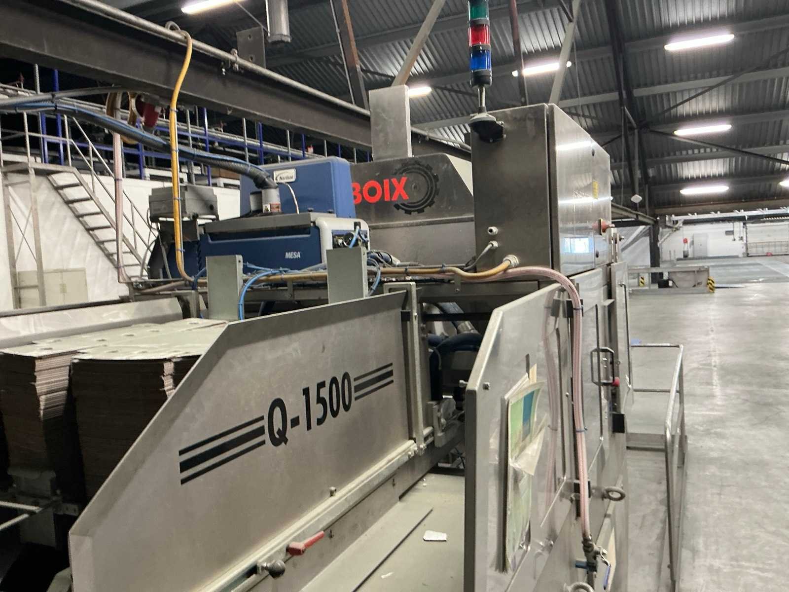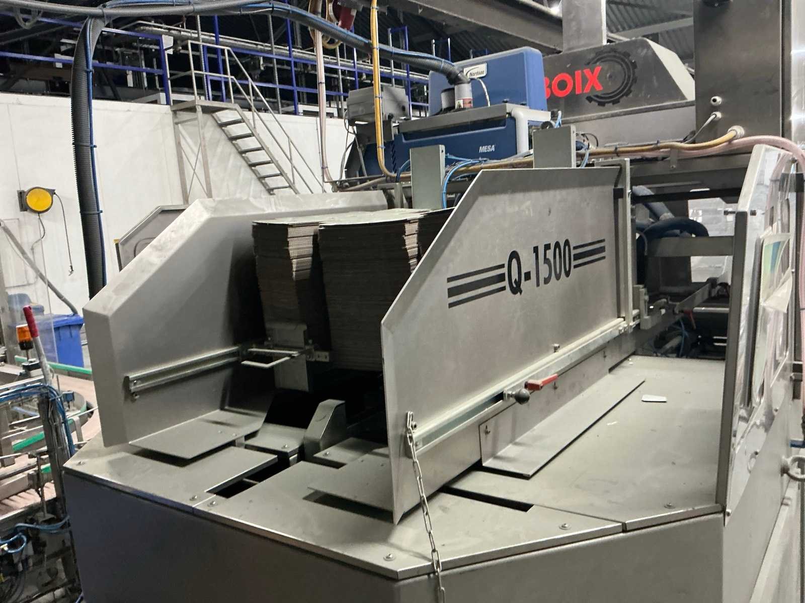 Maximale werkbreedte 1000 mm, voorzien van buffer invoer station, “Nordson” hotmelt unit met buffer container, uitloop transportbaan, breedte 600 mm, lengte 4000 mm Nee Merk: Boix Type: Q-1500 Bouwjaar: 2014 Aansluiting: 400V Totale afmeting L: 3400mm Totale afmeting Breedte: 1700mm Totale afmeting Hoogte: 2400mm