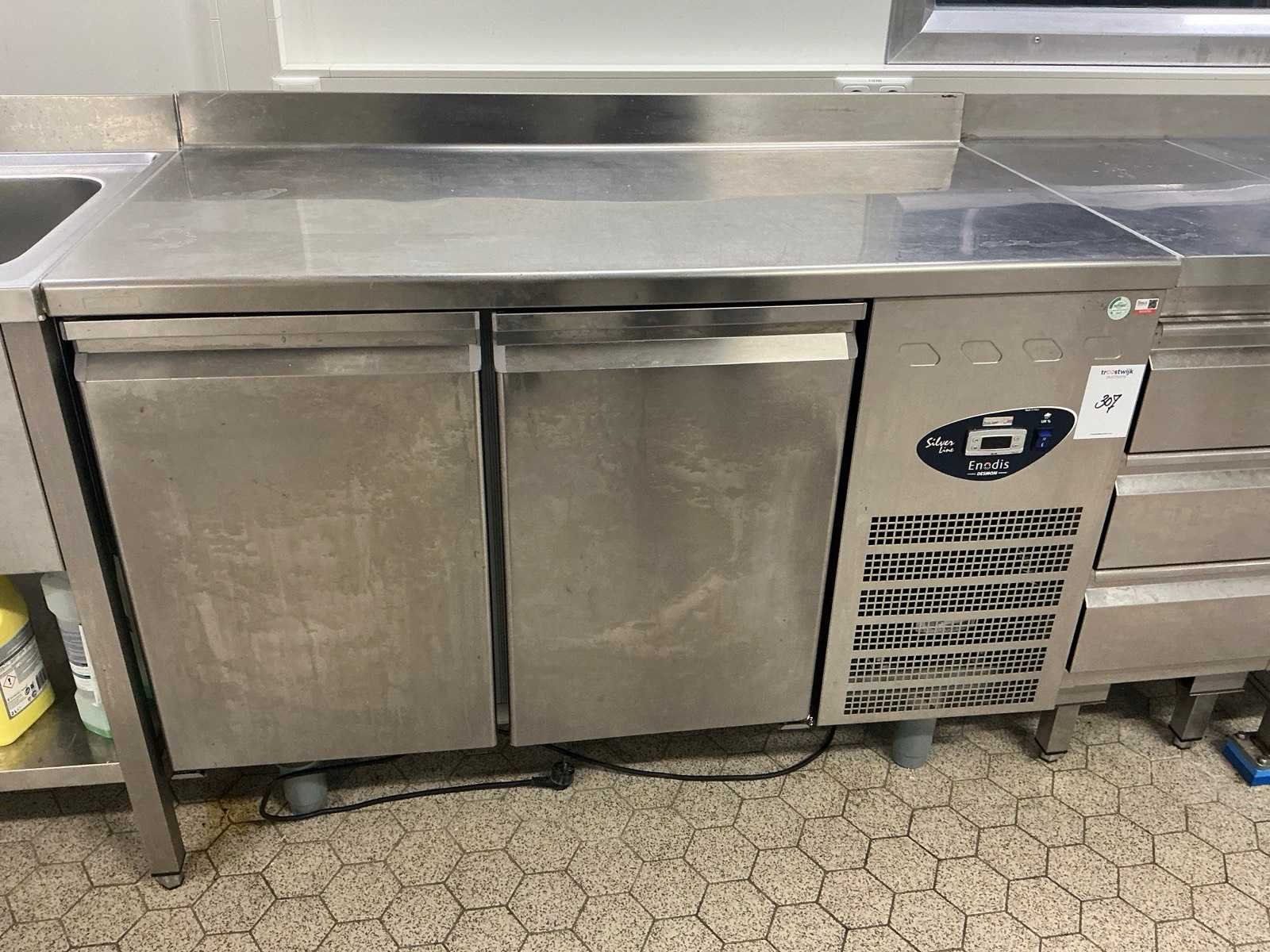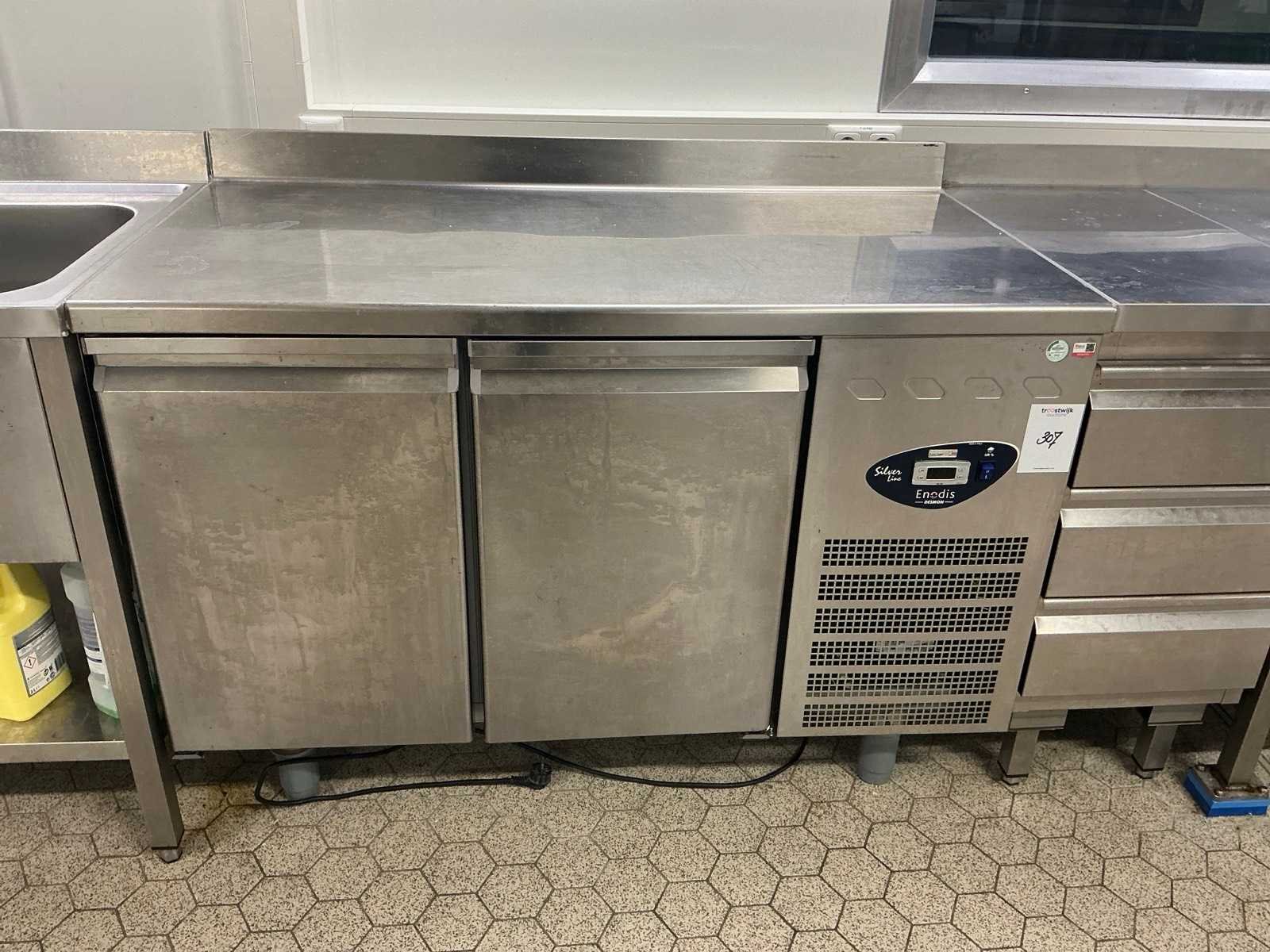 Voorzien van 2 deuren, inclusief 2 werktafels en werktafel met onderkast Nee Merk: Enodis Type: Silver line Totale afmeting L: 700cm Totale afmeting Breedte: 1310cm Totale afmeting Hoogte: 920cm Materiaal: RVS Digitale uitlezing: true Ingebouwde koelcompressor: true Rvs: true Capaciteit.: 240l Aansluiting: 230V