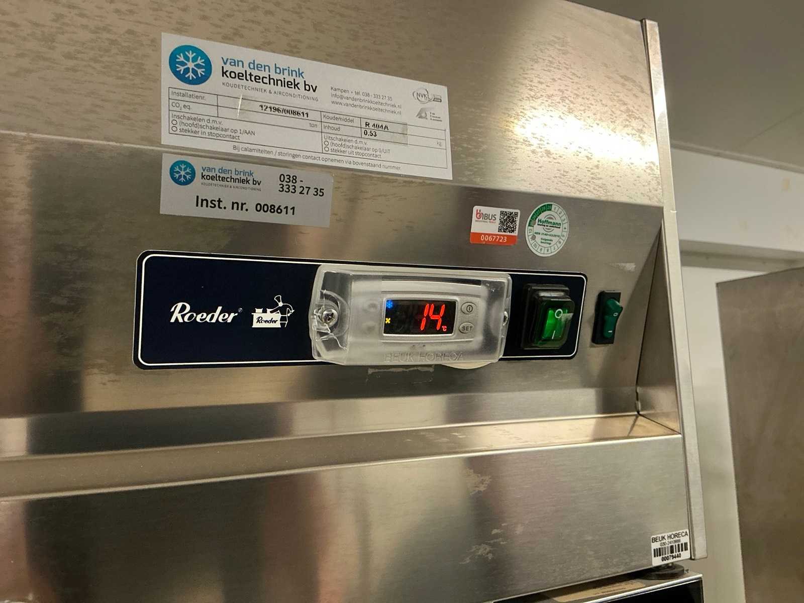 Voorzien van 2 deuren met verlichting Nee Merk: Roeder Type: 1D141G-61E Bouwjaar: 2015 Aansluiting: 230V Digitale uitlezing: true Capaciteit.: 700l Totale afmeting L: 78cm Totale afmeting Breedte: 140cm Totale afmeting Hoogte: 204cm