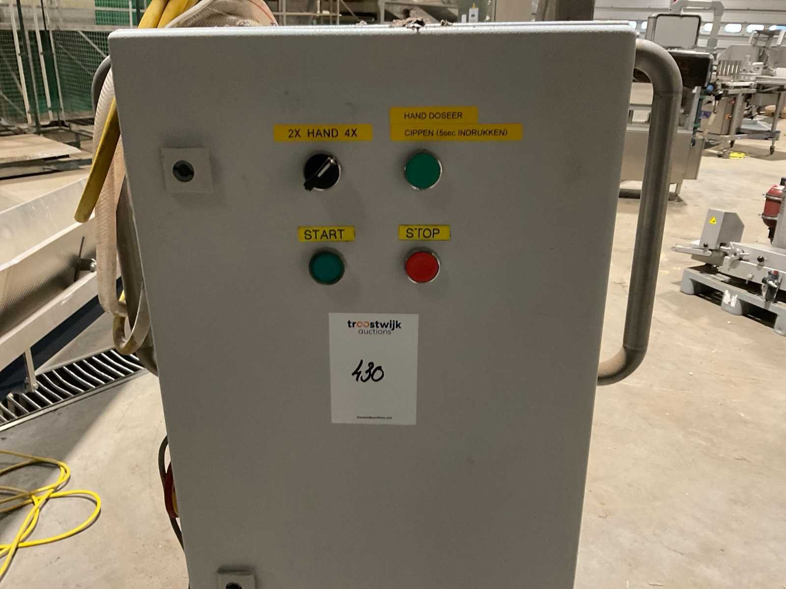 Voorzien van 4x 3 pneumatische doseerkoppen en opgebouwde schakelkast Nee Totale afmeting L: 1350mm Totale afmeting Breedte: 670mm Totale afmeting Hoogte: 1650mm