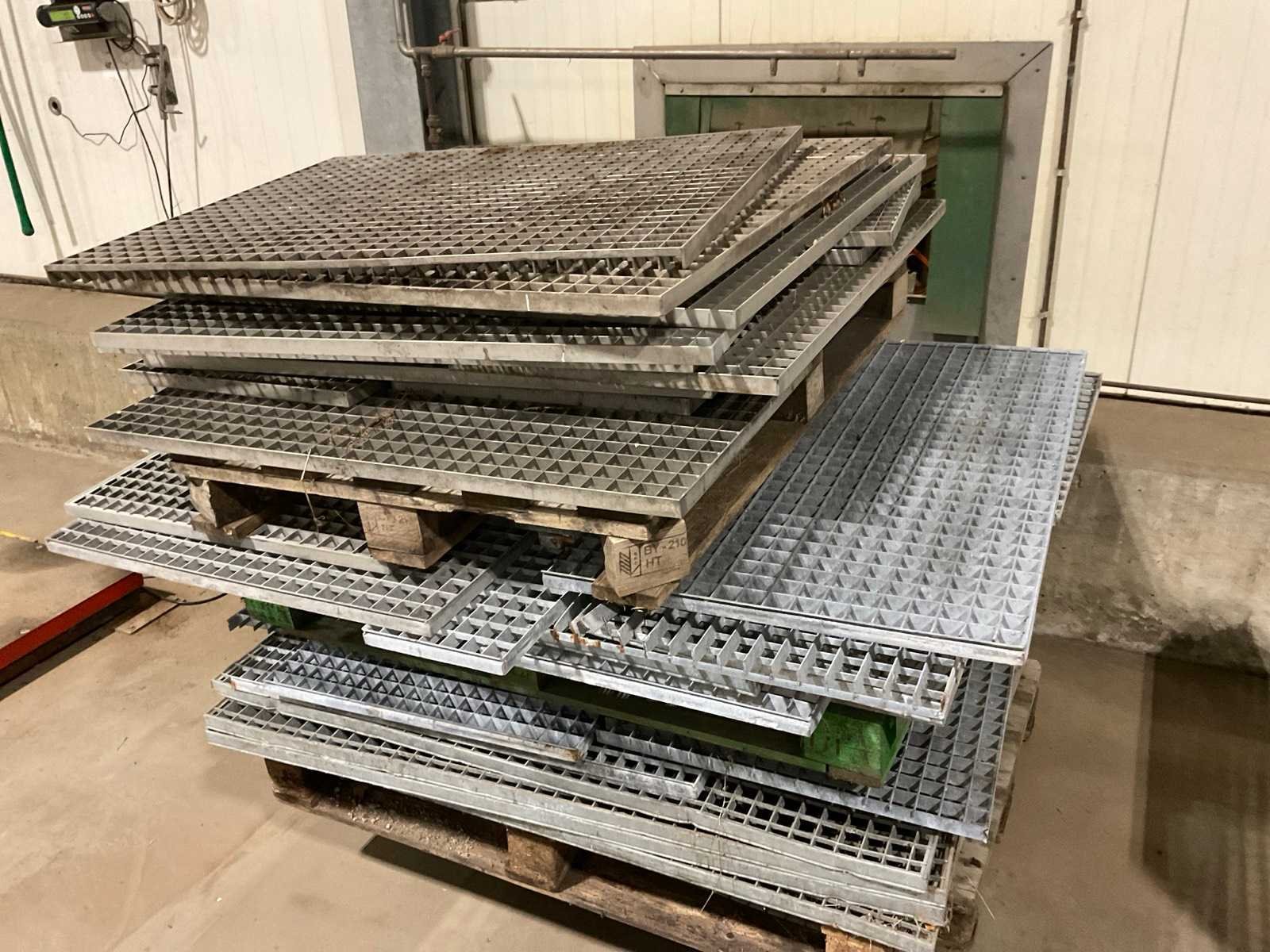 Gegalvaniseerd staal, afmeting circa 1230x800x400mm met partij roostervloerdelen in verschillende soorten en afmetingen Nee