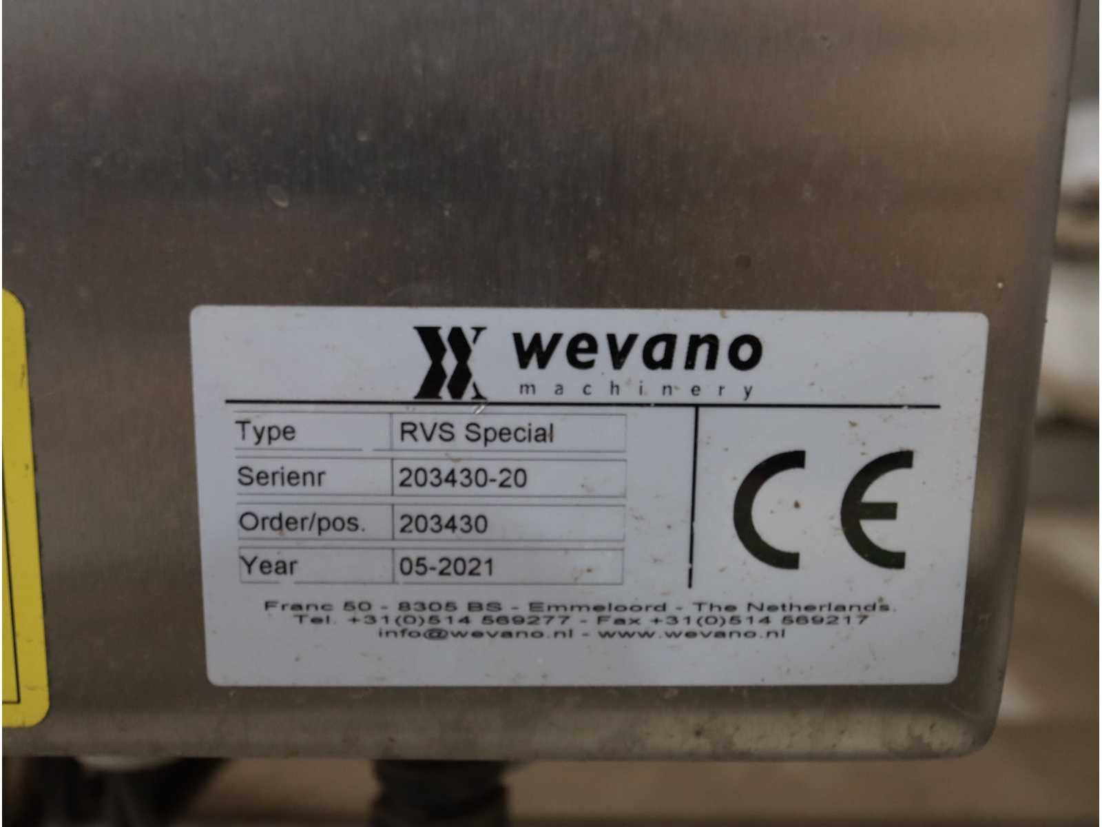 Voorzien van onderlopende uitvoer transportband, en opgebouwde schakelkast Nee Merk: Wevano Type: special Bouwjaar: 2021 Totale afmeting L: 3250mm Totale afmeting Breedte: 2500mm Totale afmeting Hoogte: 4000mm