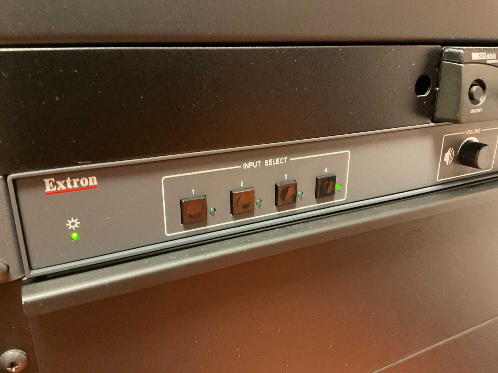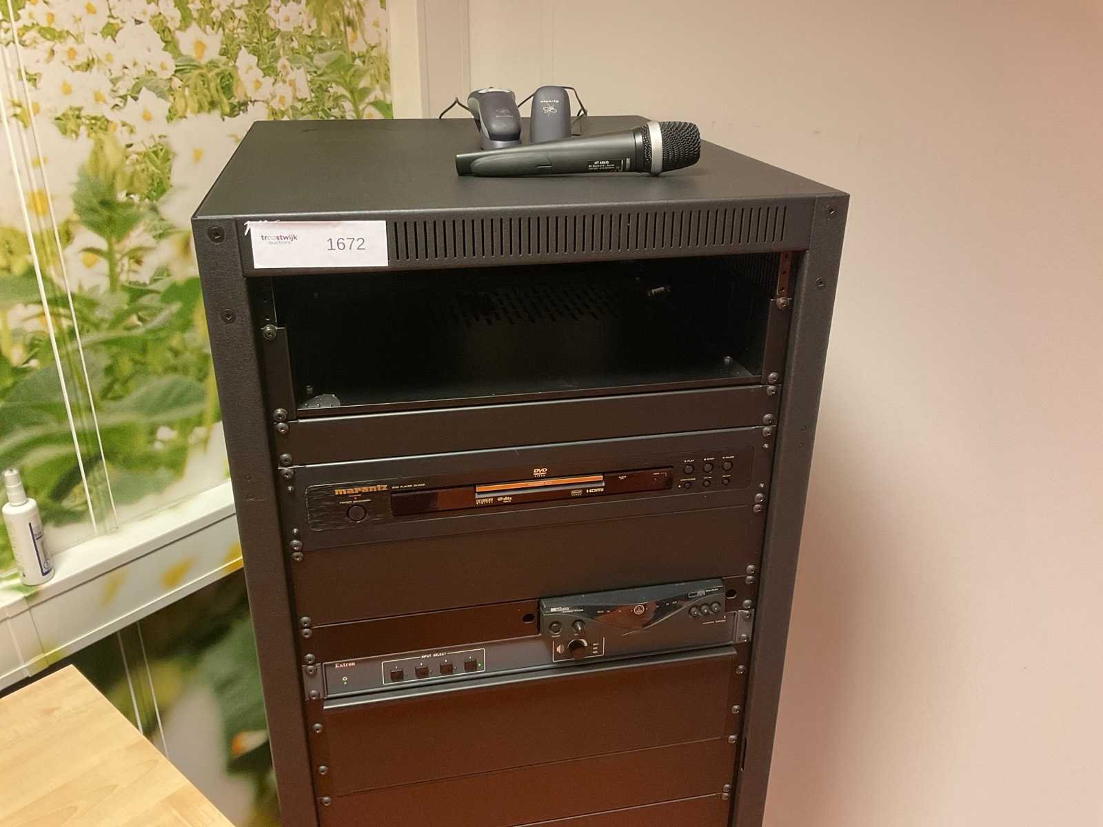 Met “Marantz” dvd speler, “AKG” receiver SR450 met microfoon HT450D, medialink switch “Extron”, versterker “Crown”. Type 1160ma in 19” rack gebouwd Nee