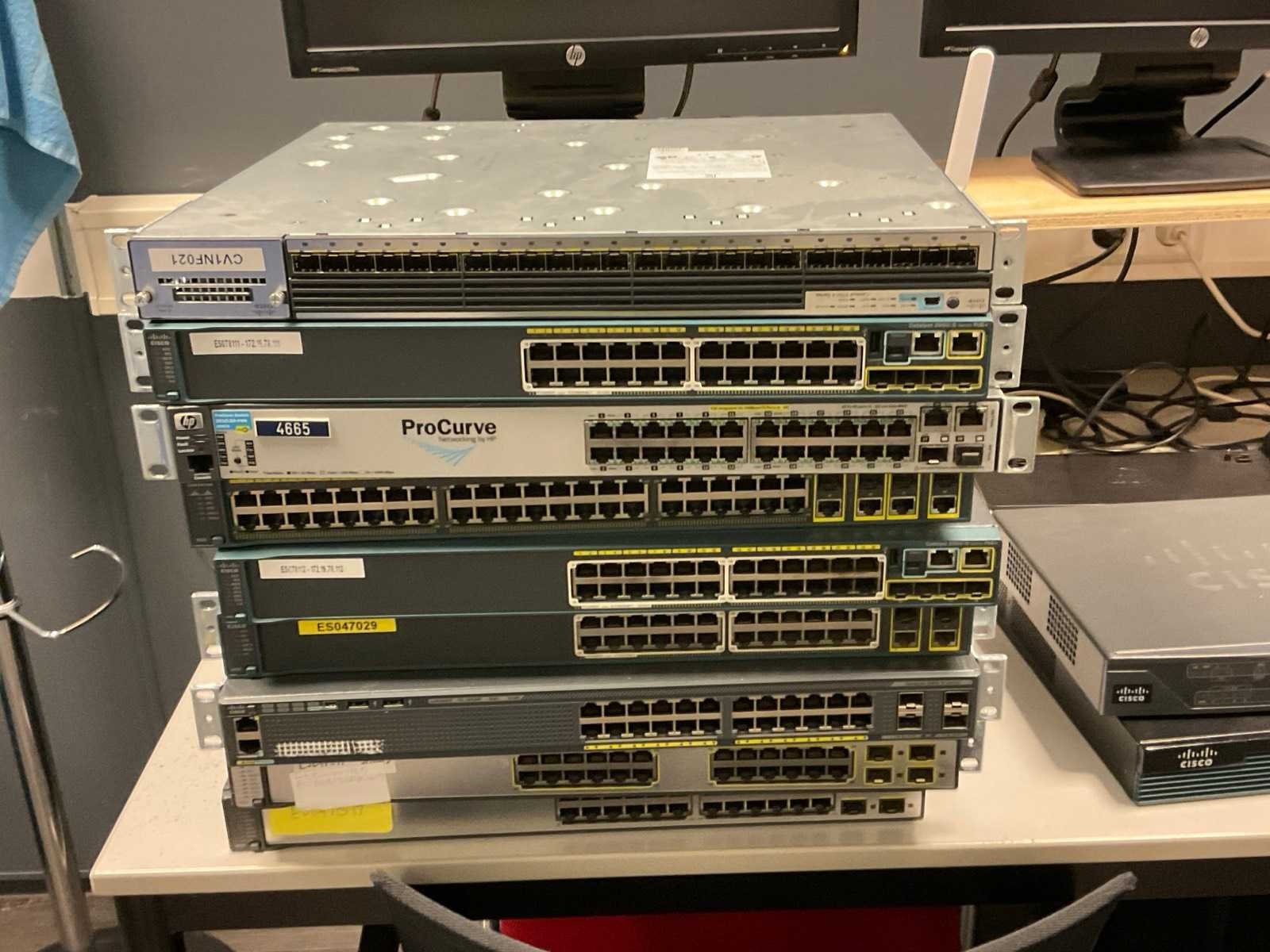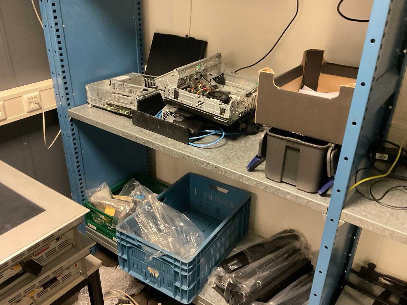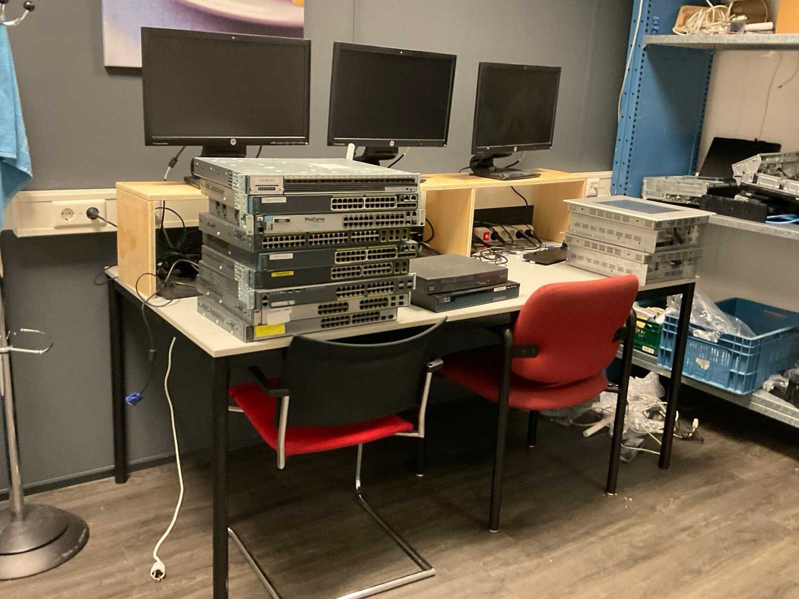 W.o. switches; monitoren; kabels; onderdelen; televisie; koelkast; archiefkast; stellingen en bureaus Nee
