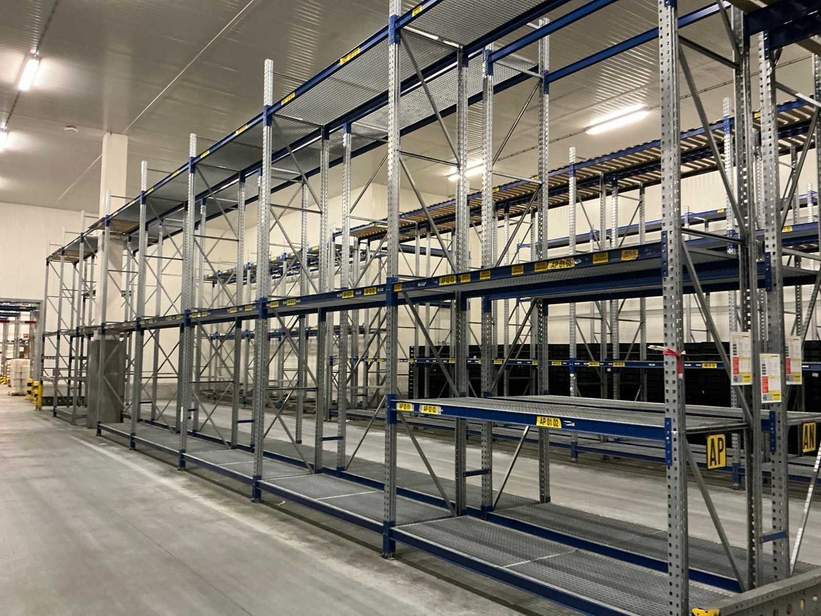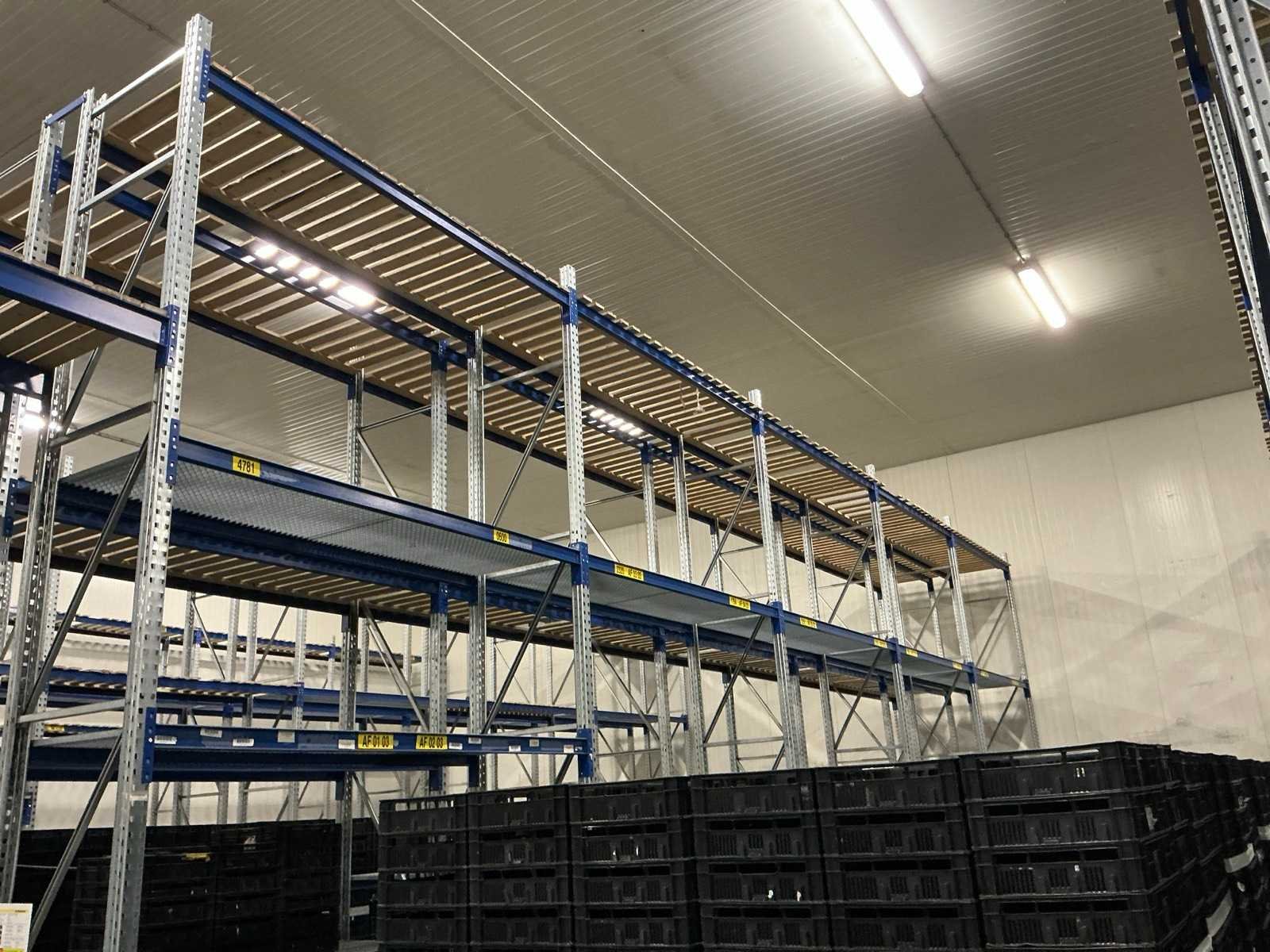 Deels voorzien van rooster en houten legborden, inclusief diverse aanrij beveiliging Nee Merk: Schäfer Type: PR600 Sectie afm. b: 2600mm Sectie diepte: 850mm Sectie afm. h: 5200mm Aantal staanders: 108 Aantal liggers: 660 Max. sectiebelasting: 2100kg Demontabel: true Materiaal: Staal