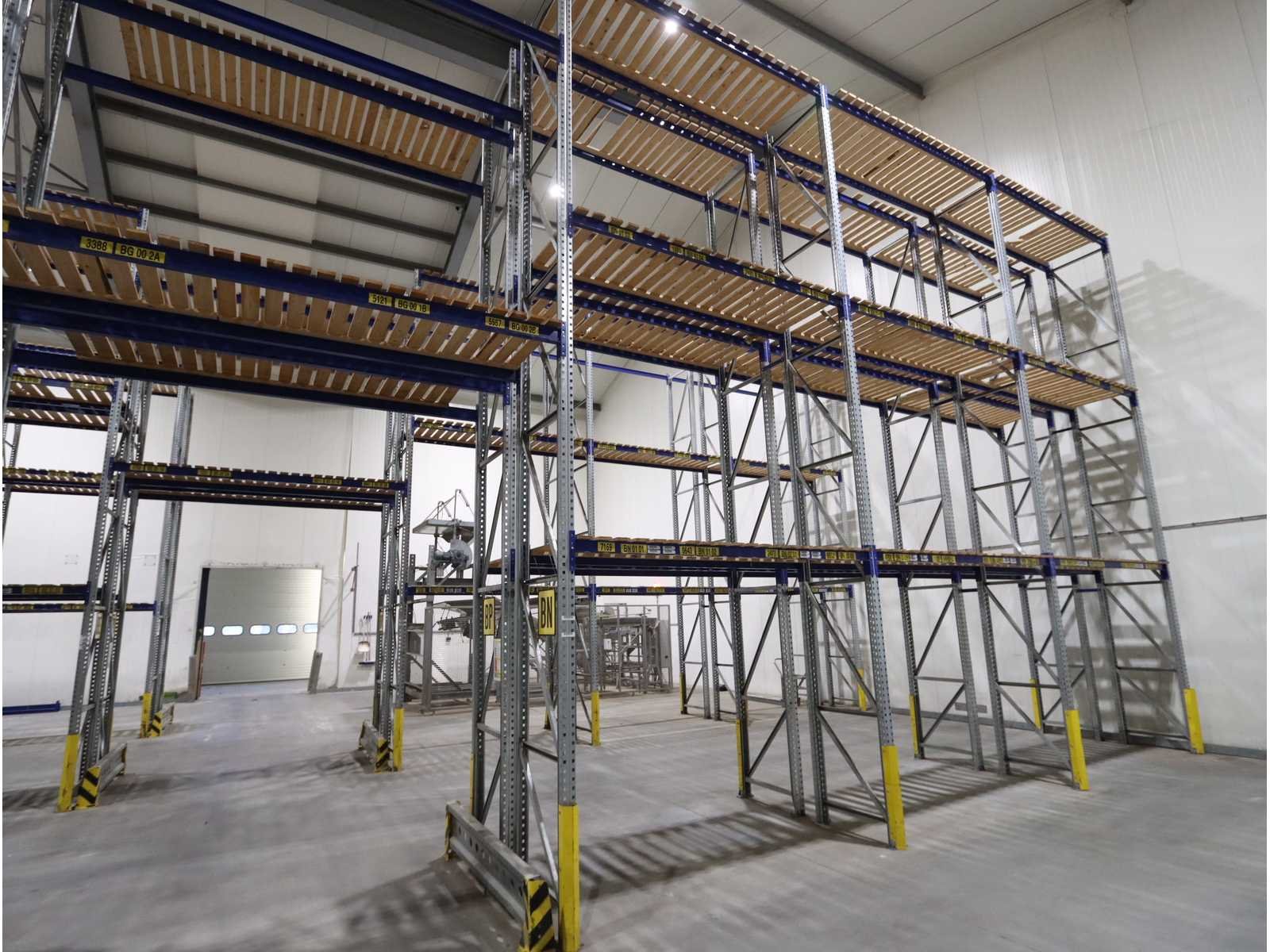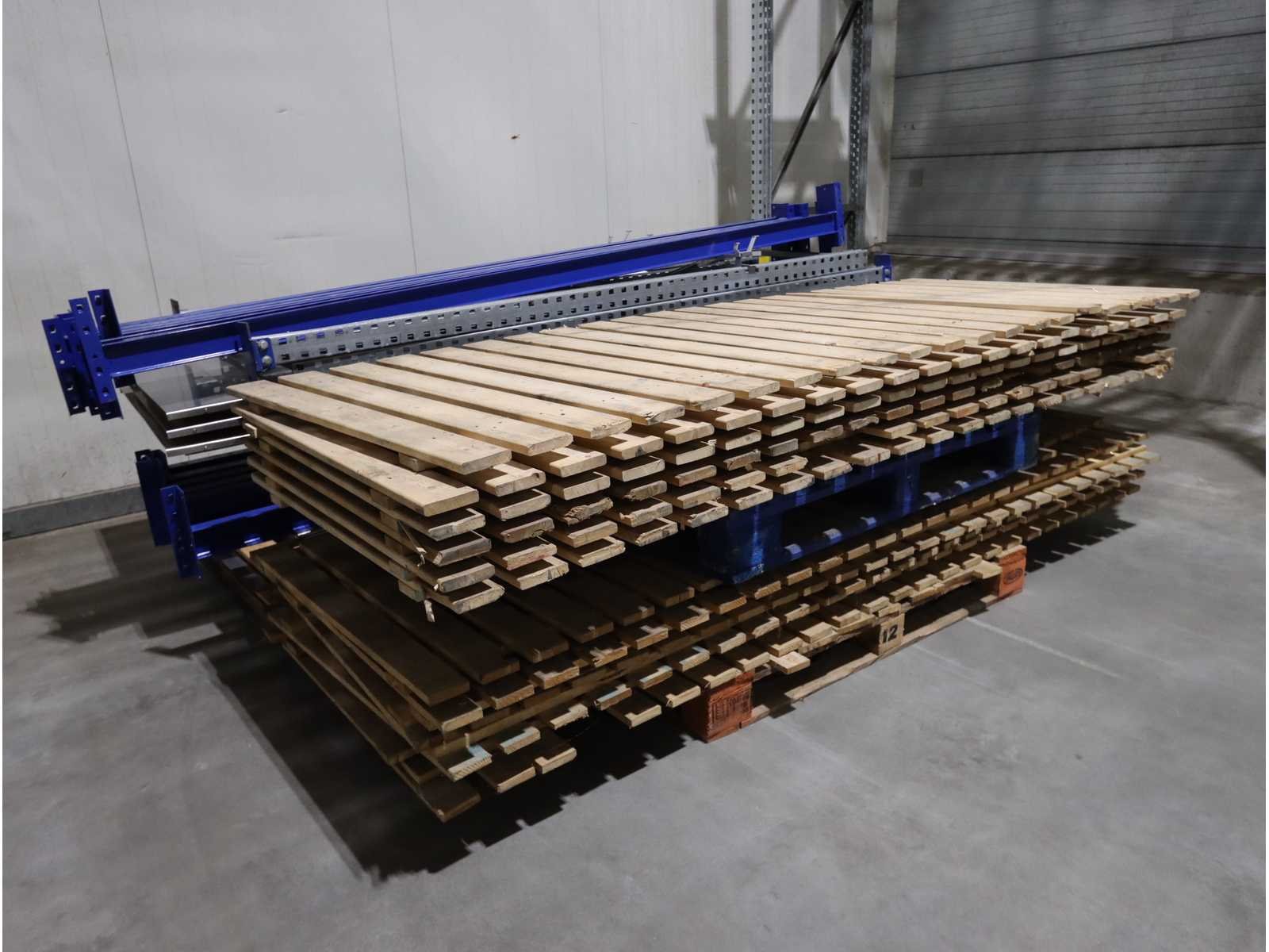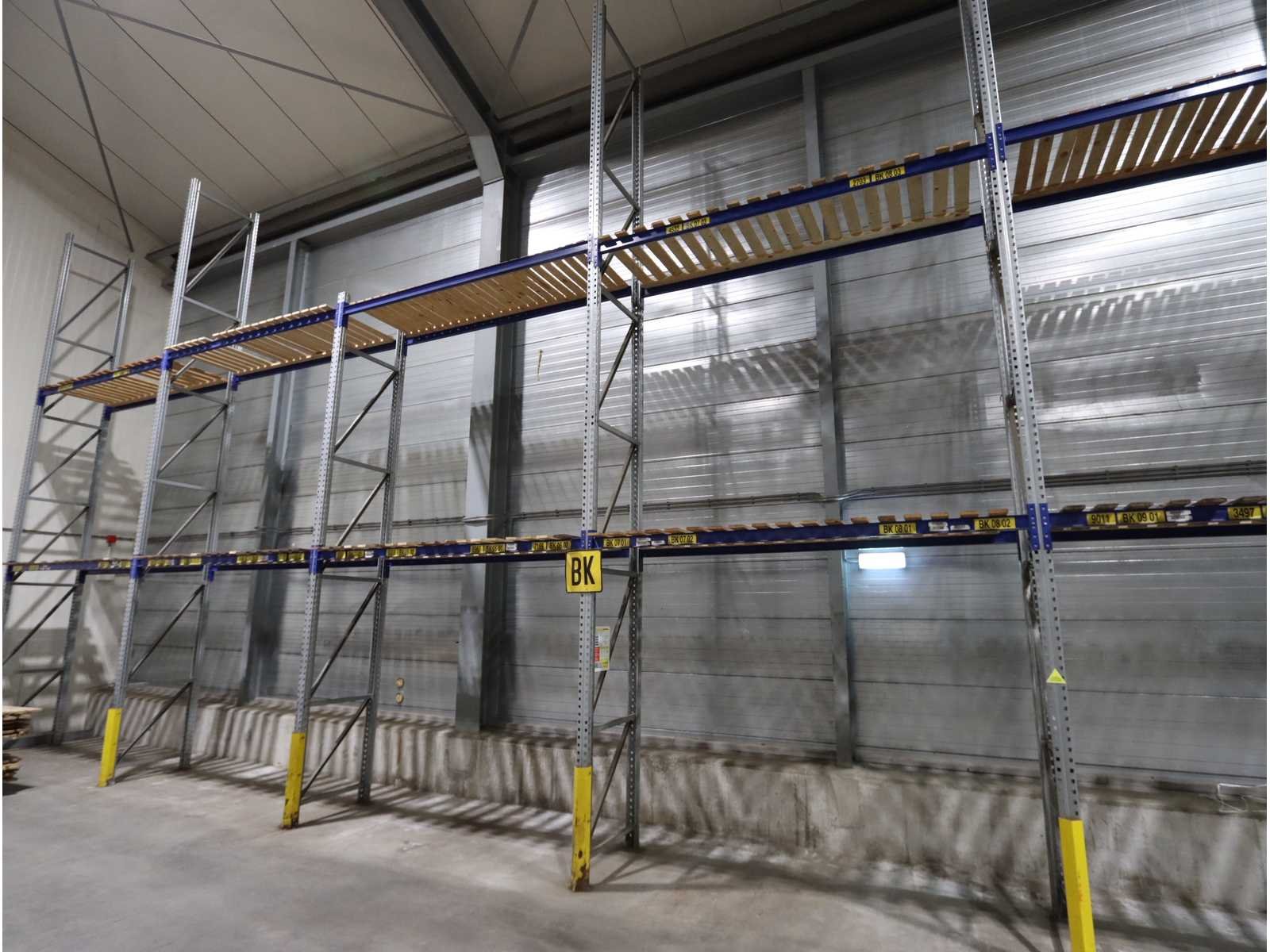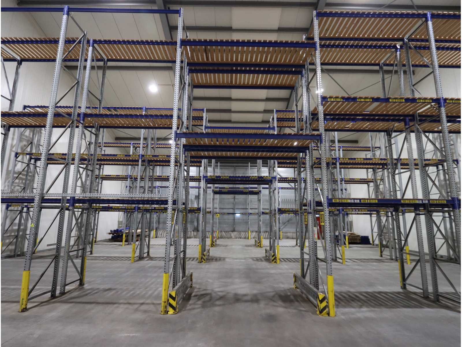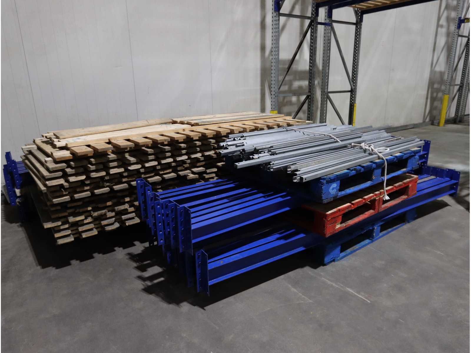 Houten legborden, inclusief diverse aanrij beveiliging en diverse gedemonteerde stellingdelen Nee Merk: Schäfer Type: PR600 Sectie afm. b: 2600mm Sectie diepte: 850mm Sectie afm. h: 6900mm Aantal staanders: 60 Aantal liggers: 250 Max. sectiebelasting: 2100kg Demontabel: true Materiaal: Staal