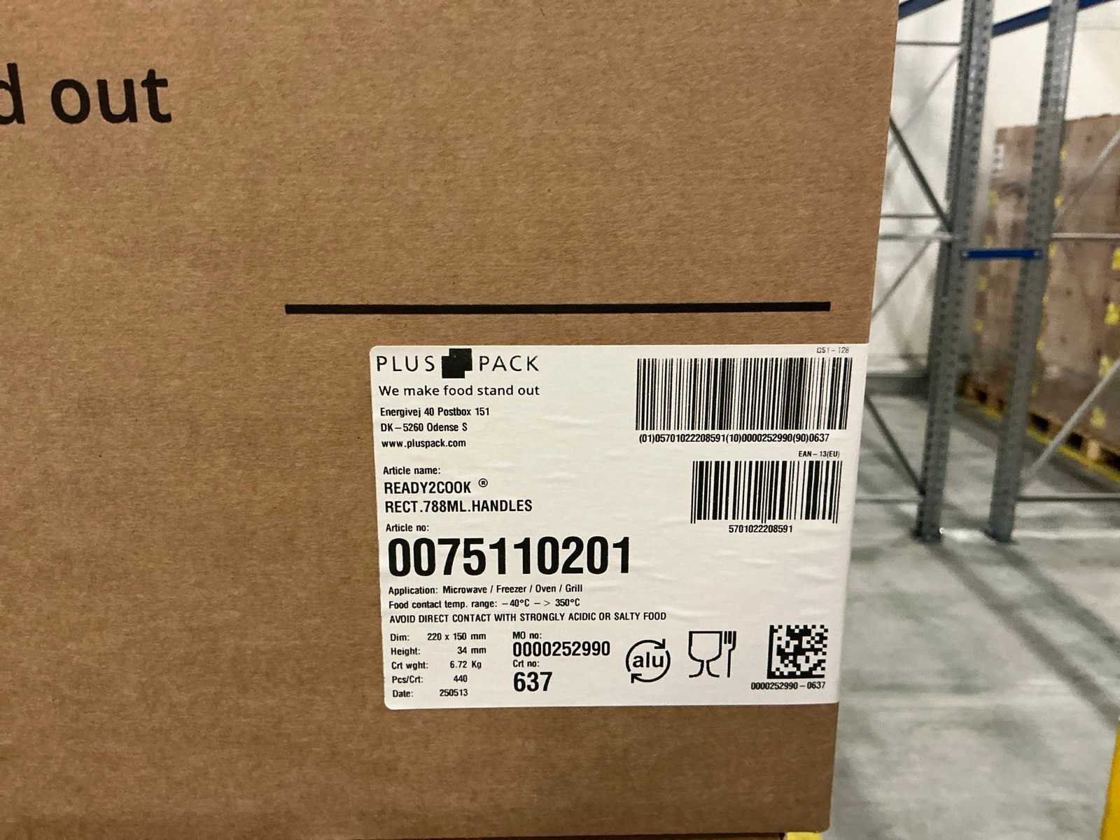 Hoogte 3,4 cm, doos á 440 stuks, op 16 pallets Nee Merk: Plus pack Lengte: 22cm Breedte: 15cm Materiaal: aluminium