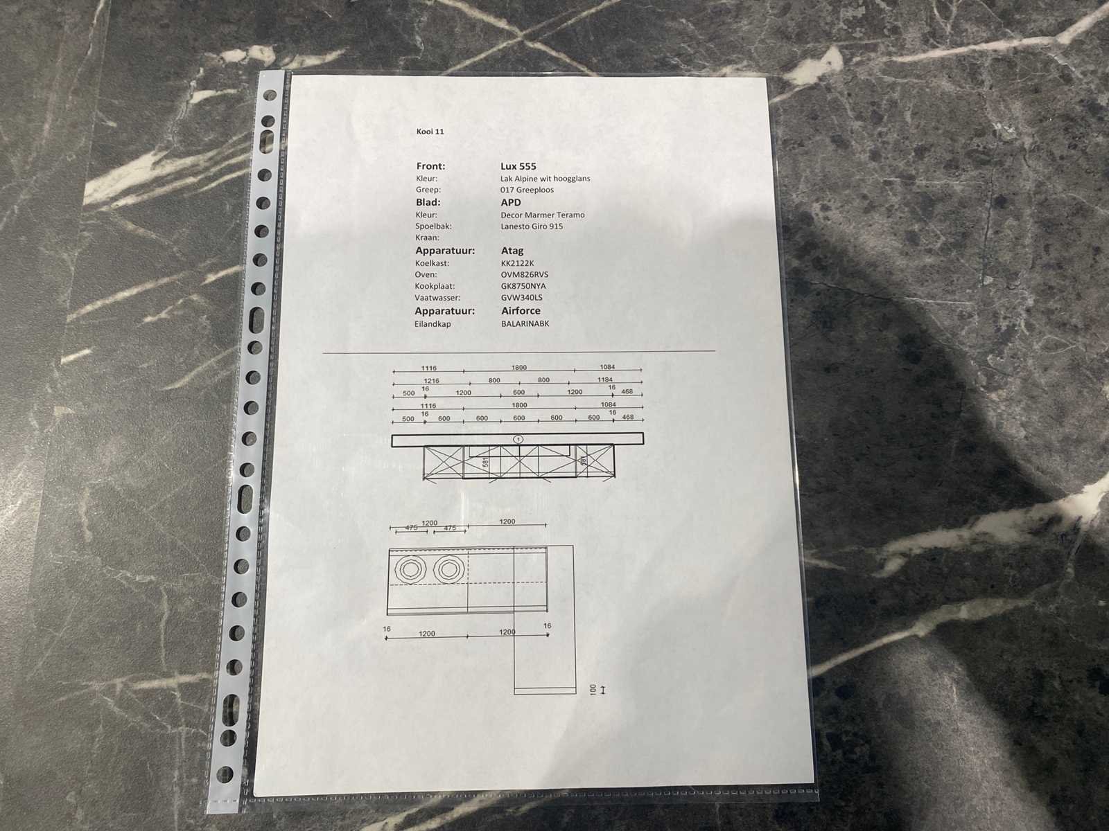 Keuken dient gedemonteerd te worden op locatie; Let op: kijken op afspraak via aanmelden@troostwijkauctions.com. Nee Merk: Nolte Type keukenopstelling: Eiland Lengte: 303,2cm Breedte: 60cm Hoogte: 254cm Aanrechtblad: Decor Marmer Teramo Fornuis: Pelgrim GK8750NYA Koelkast: Pelgrim KK2122K Softclose: true Oven: Pelgrim OVM826RVS Afzuigkap: Airforce BALARINABK Vaatwasser: Pelgrim GVW340LS Lengte kookeiland: 282cm Breedte kookeiland: 240cm Hoogte kookeiland: 93cm Kleur: Lak Alpine hoogglans wit