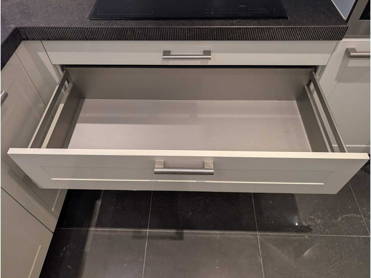 Conditie gebruikt; afmetingen linkerdeel lxb ca. 246x60 cm; afmetingen rechterdeel lxb ca. 225x60 cm; hoge kasten ca 205 cm hoog; Reeds gedemonteerd en ingepakt op pallets. (afstapelen, omruilen of statiegeld per pallet); Pallets zijn niet inbegrepen; statiegeld betalen bij afhalen, of pallets afstapelen; werkblad niet ingepakt op pallets Nee Type keukenopstelling: Hoek Kraan: Aanwezig Gootsteen: Aanwezig Aanrechtblad: Steen zwart Magnetron: Aeg Fornuis: Aeg Koelkast: Samsung Vriezer: Samsung Softclose: true Oven: Aeg Afzuigkap: Whirlpool Vaatwasser: Siemens Hoofdkleur: Wit