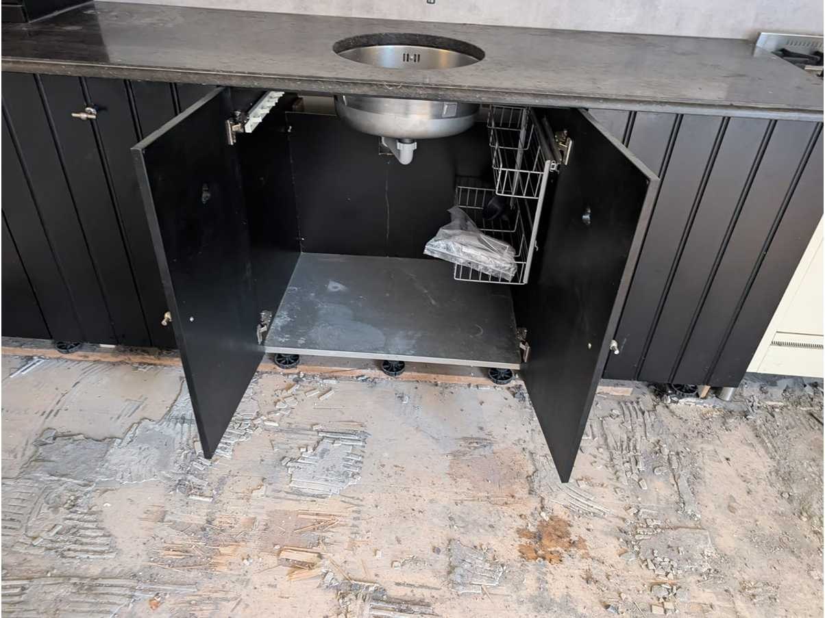 Conditie gebruikt; Reeds gedemonteerd en ingepakt op pallets. (afstapelen, omruilen of statiegeld per pallet); Pallets zijn niet inbegrepen; statiegeld betalen bij afhalen, of pallets afstapelen; werkblad niet ingepakt op pallets Nee Type keukenopstelling: Recht Lengte: 443cm Breedte: 70cm Kraan: Aanwezig Gootsteen: Aanwezig Aanrechtblad: Steen zwart Fornuis: Boretti Koelkast: Bosch Softclose: true Vaatwasser: Etna Hoofdkleur: Zwart