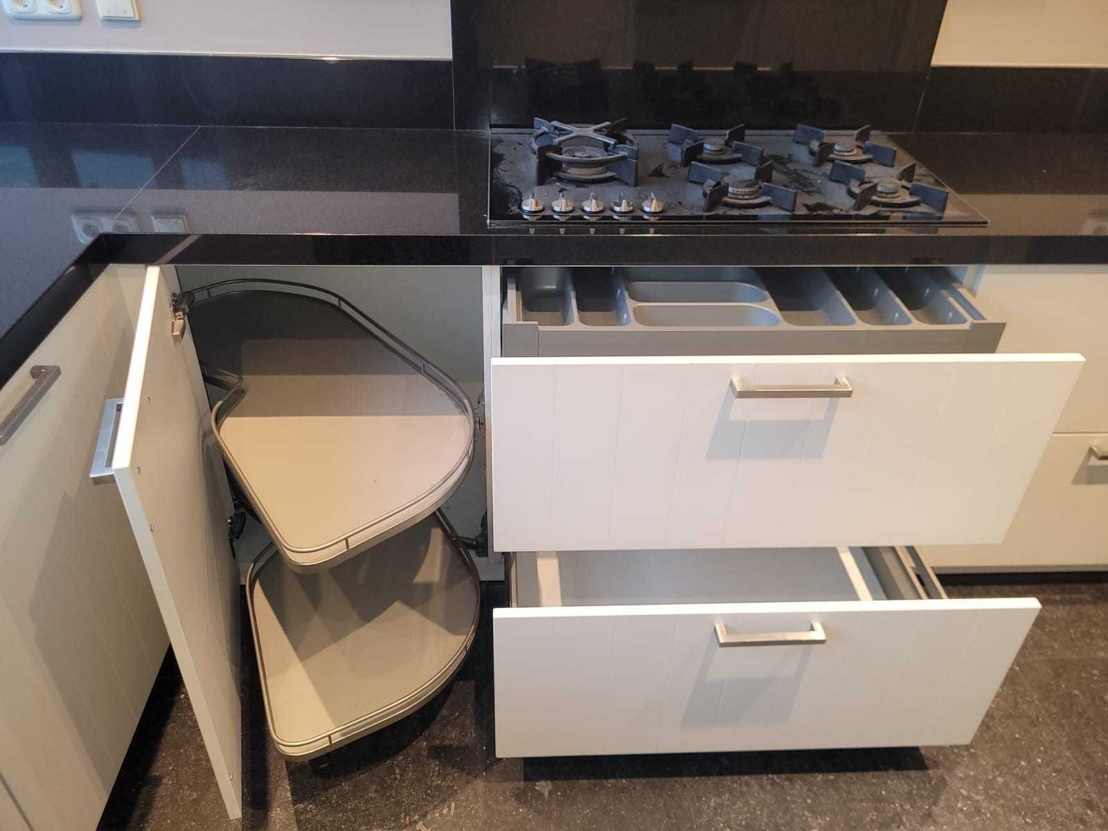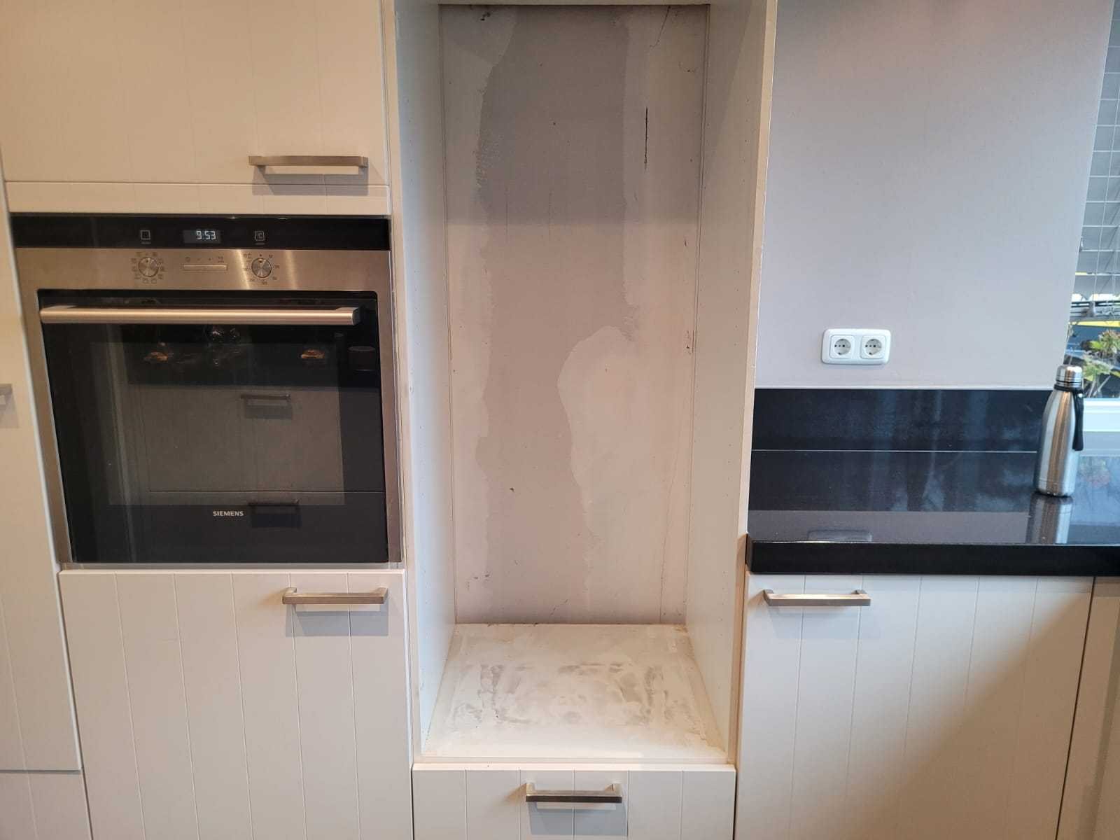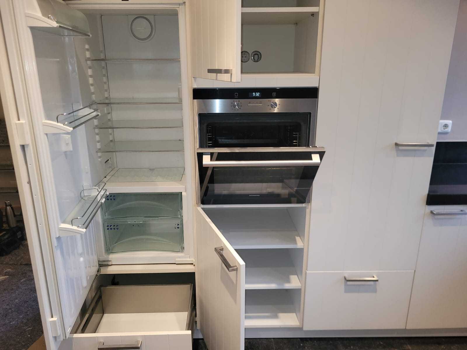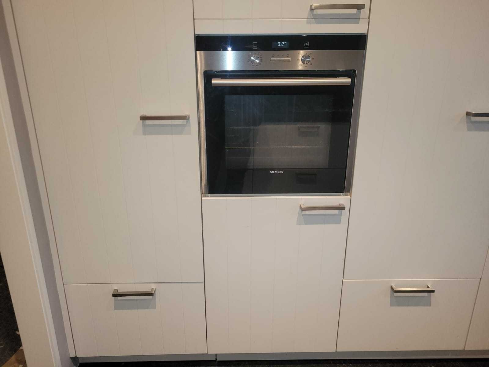 Conditie gebruikt; Zonder vriezer en zonder Quooker; afmetingen linkerdeel lxb ca. 250x60 cm; afmetingen tussenstuk lxb ca. 290x80; afmetingen rechterdeel lxb ca. 250x60 cm; hoge kasten ca. 230 cm hoog; reeds gedemonteerd en ingepakt op pallets. (afstapelen, omruilen of statiegeld per pallet); Pallets zijn niet inbegrepen; statiegeld betalen bij afhalen, of pallets afstapelen; werkblad niet ingepakt op pallets Nee Type keukenopstelling: U keuken Aanrechtblad: Steen zwart Fornuis: Atag Koelkast: Liebherr Softclose: true Oven: Siemens Afzuigkap: Atag Vaatwasser: Siemens Hoofdkleur: Wit