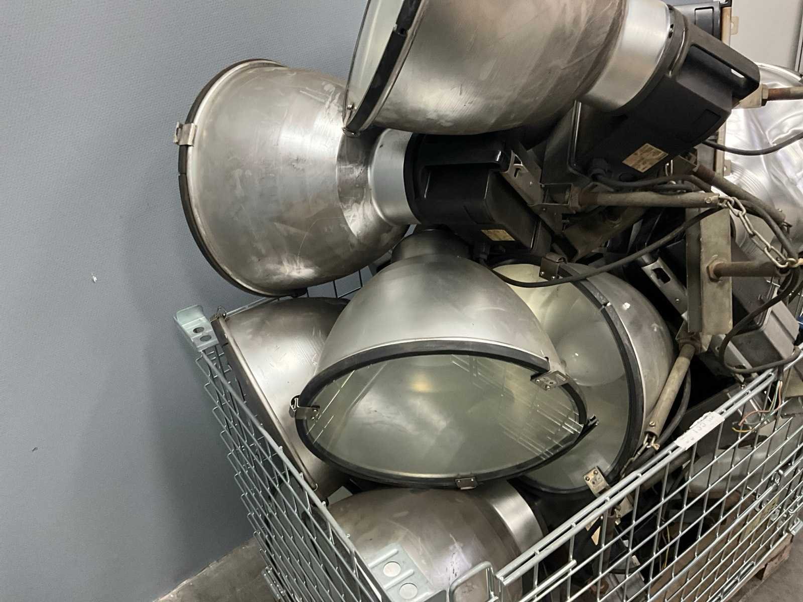 Palletkrat met gebruikte industriële hanglampen Nee Merk: Philips Model: MDK 400 IC Met lichtbron: true Wattage: 400W Lengte: 43cm Breedte: 43cm Hoogte: 52cm