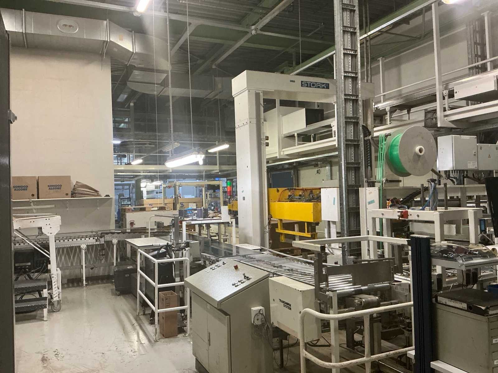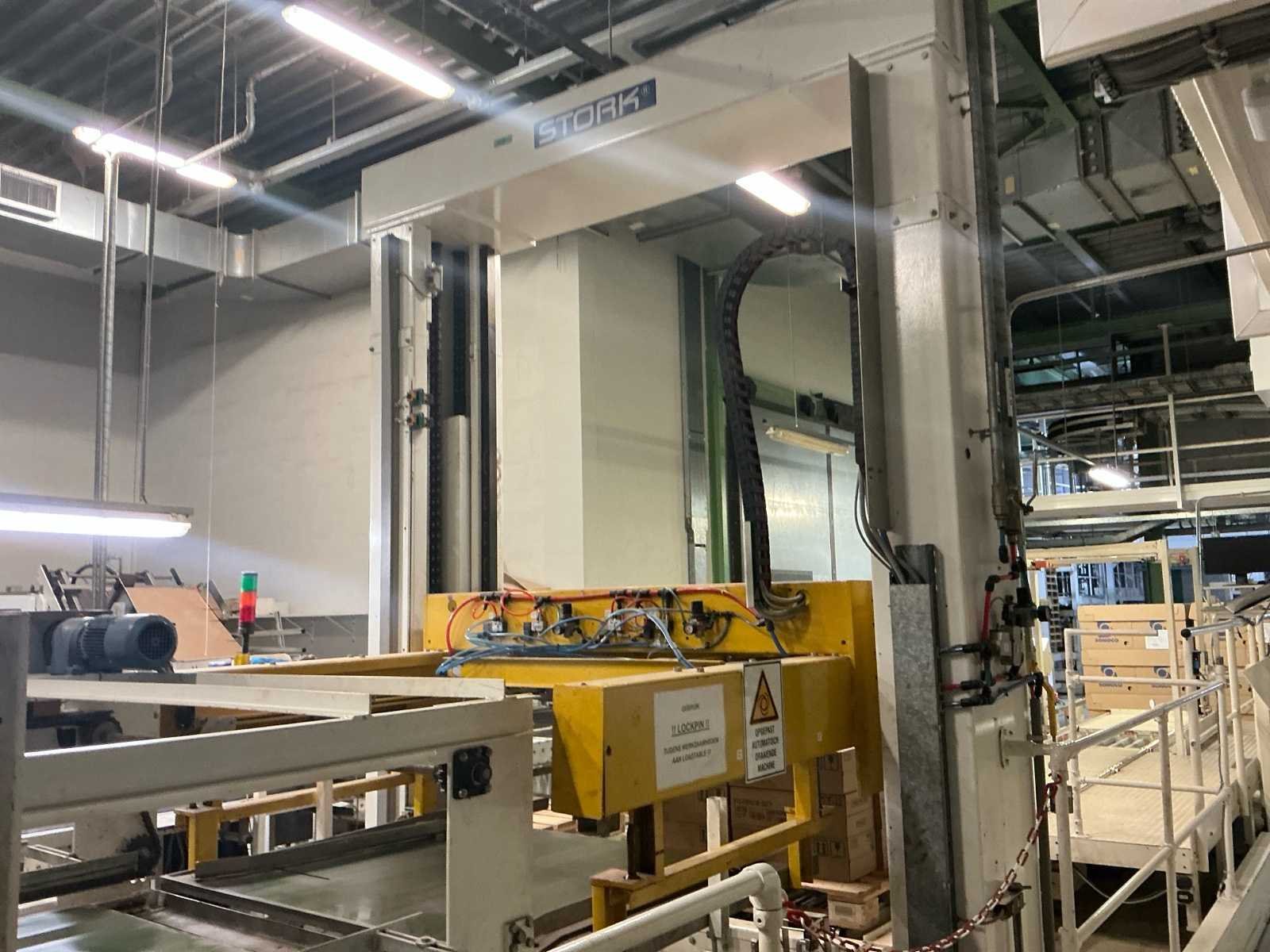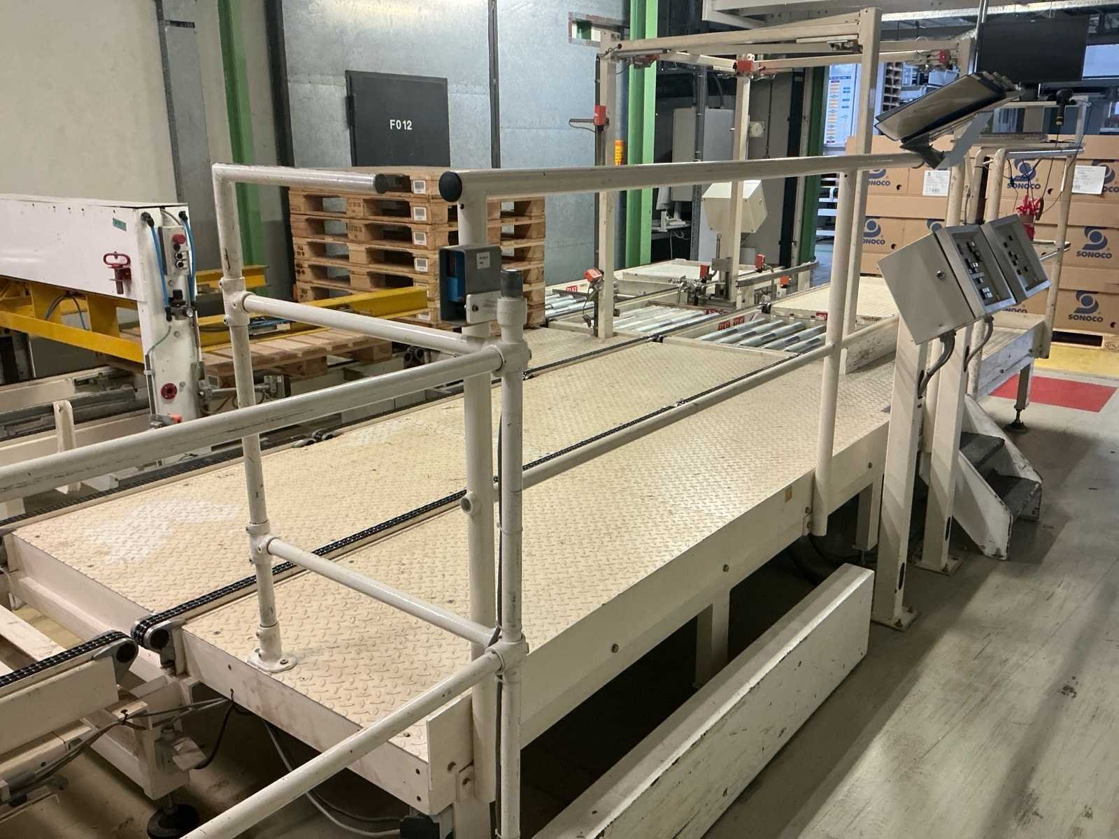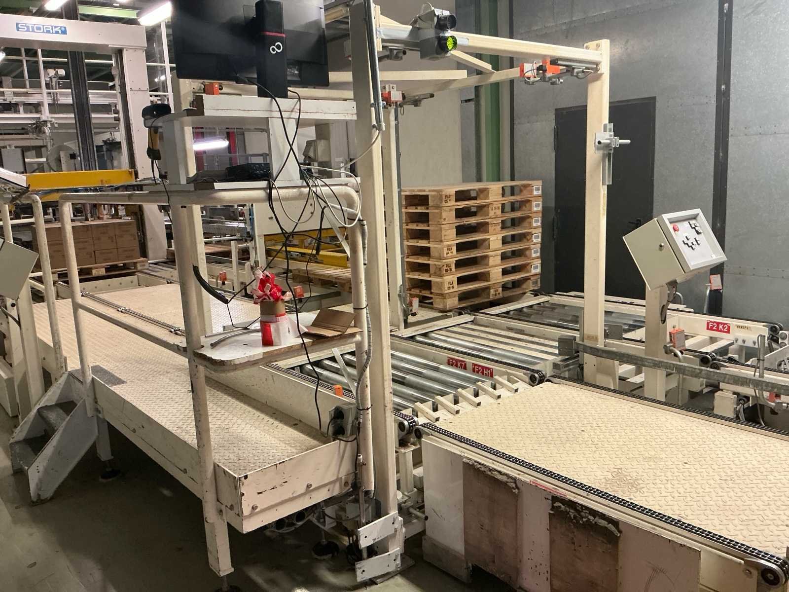 Voorzien van: De complete installatie bestaat uit een Stork Bepak C2000 palletiseermachine (1991) met 27 meter transportbanden en een Stork Conveyor Systems handlingmodule (1988) voor het positioneren, centreren en verplaatsen van pallets, samen goed voor een capaciteit van 8–20 pallets/uur, geschikt voor EU- en blokpallets, gebouwd uit zware staalconstructies met PLC-besturing, veiligheidsvoorzieningen en elektromotorische aandrijving. 27 meter band tot aan 1e pallet. In totaal met automatische car 38m. machine/linielijn waarmee producten automatisch worden opgestapeld (gepaletiseerd) op pallets, vaak in combinatie met een transportband (in dit geval ongeveer 27 meter lang). LET OP! Demontage en levering van de machine zal plaats vinden in Februari 2026! Nee Merk: Stork Bepak Type: C2000 Bouwjaar: 1991 Serienummer: 035 76002 Invoer rollenbaan: true Afvoer rollenbaan: true Veiligheidshekwerk: true Aansluiting: 380V Totale afmeting L: 38000mm