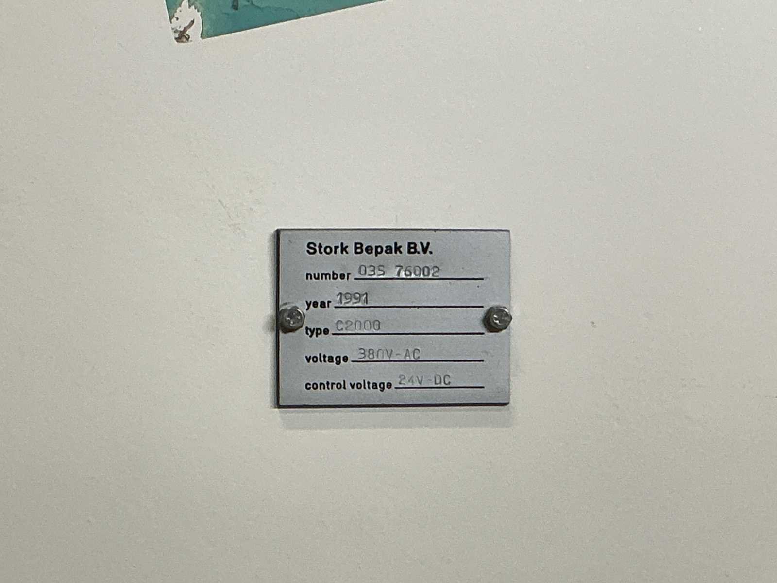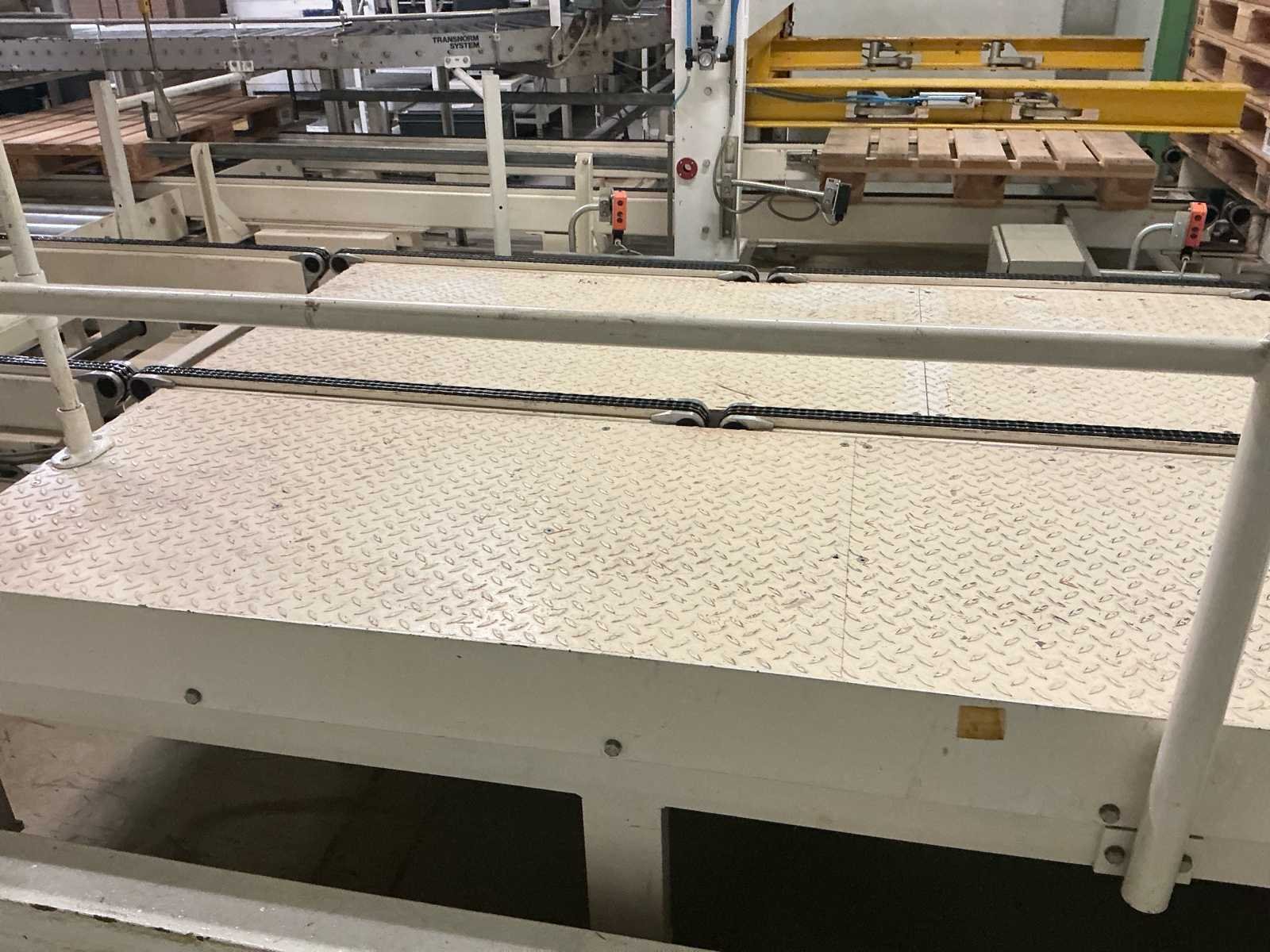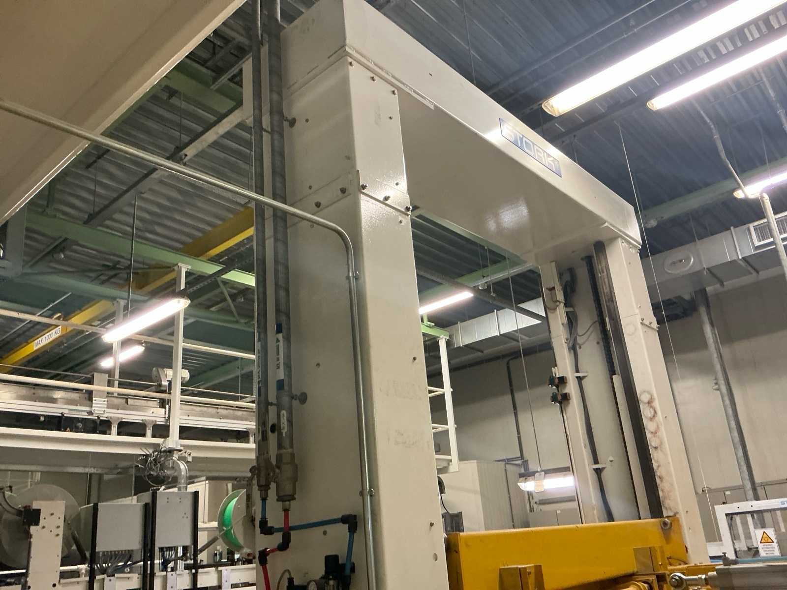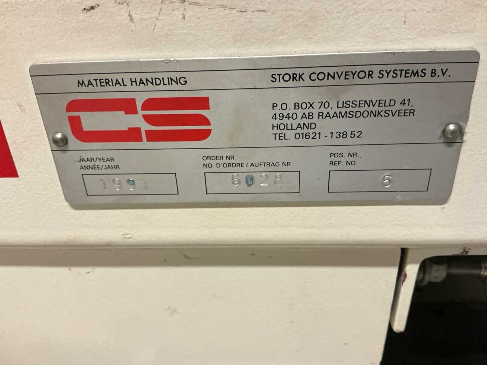 Voorzien van: De complete installatie bestaat uit een Stork Bepak C2000 palletiseermachine (1991) met 27 meter transportbanden en een Stork Conveyor Systems handlingmodule (1988) voor het positioneren, centreren en verplaatsen van pallets, samen goed voor een capaciteit van 8–20 pallets/uur, geschikt voor EU- en blokpallets, gebouwd uit zware staalconstructies met PLC-besturing, veiligheidsvoorzieningen en elektromotorische aandrijving. 27 meter band tot aan 1e pallet. In totaal met automatische car 38m. machine/linielijn waarmee producten automatisch worden opgestapeld (gepaletiseerd) op pallets, vaak in combinatie met een transportband (in dit geval ongeveer 27 meter lang). LET OP! Demontage en levering van de machine zal plaats vinden in Februari 2026! Nee Merk: Stork Bepak Type: C2000 Bouwjaar: 1991 Serienummer: 035 76002 Invoer rollenbaan: true Afvoer rollenbaan: true Veiligheidshekwerk: true Aansluiting: 380V Totale afmeting L: 38000mm