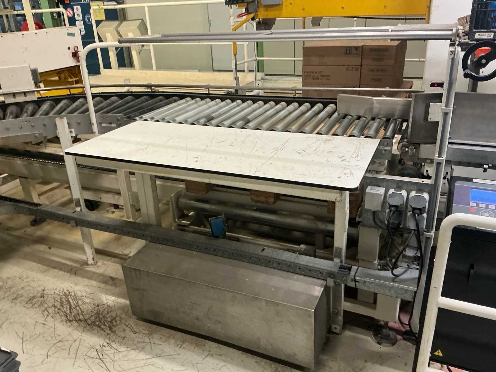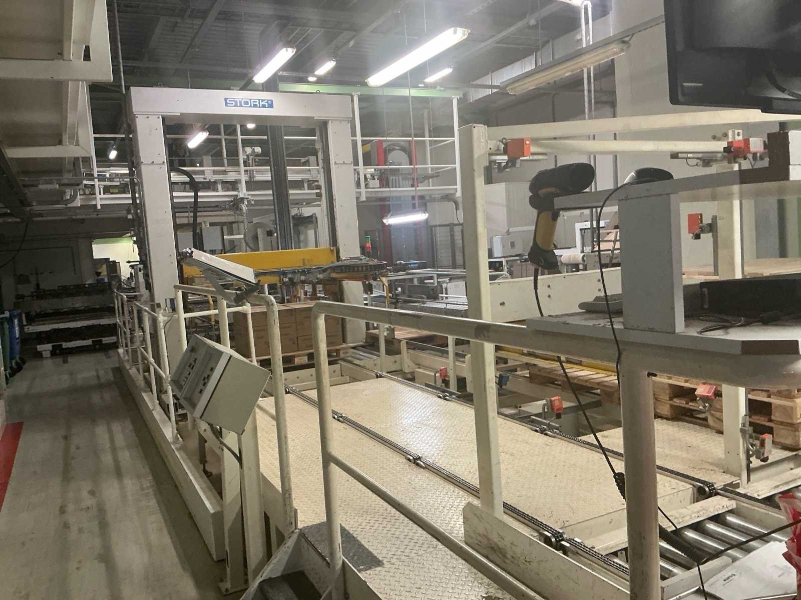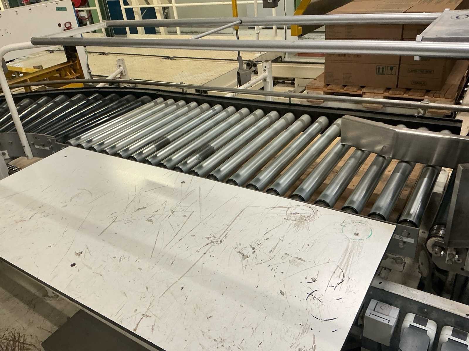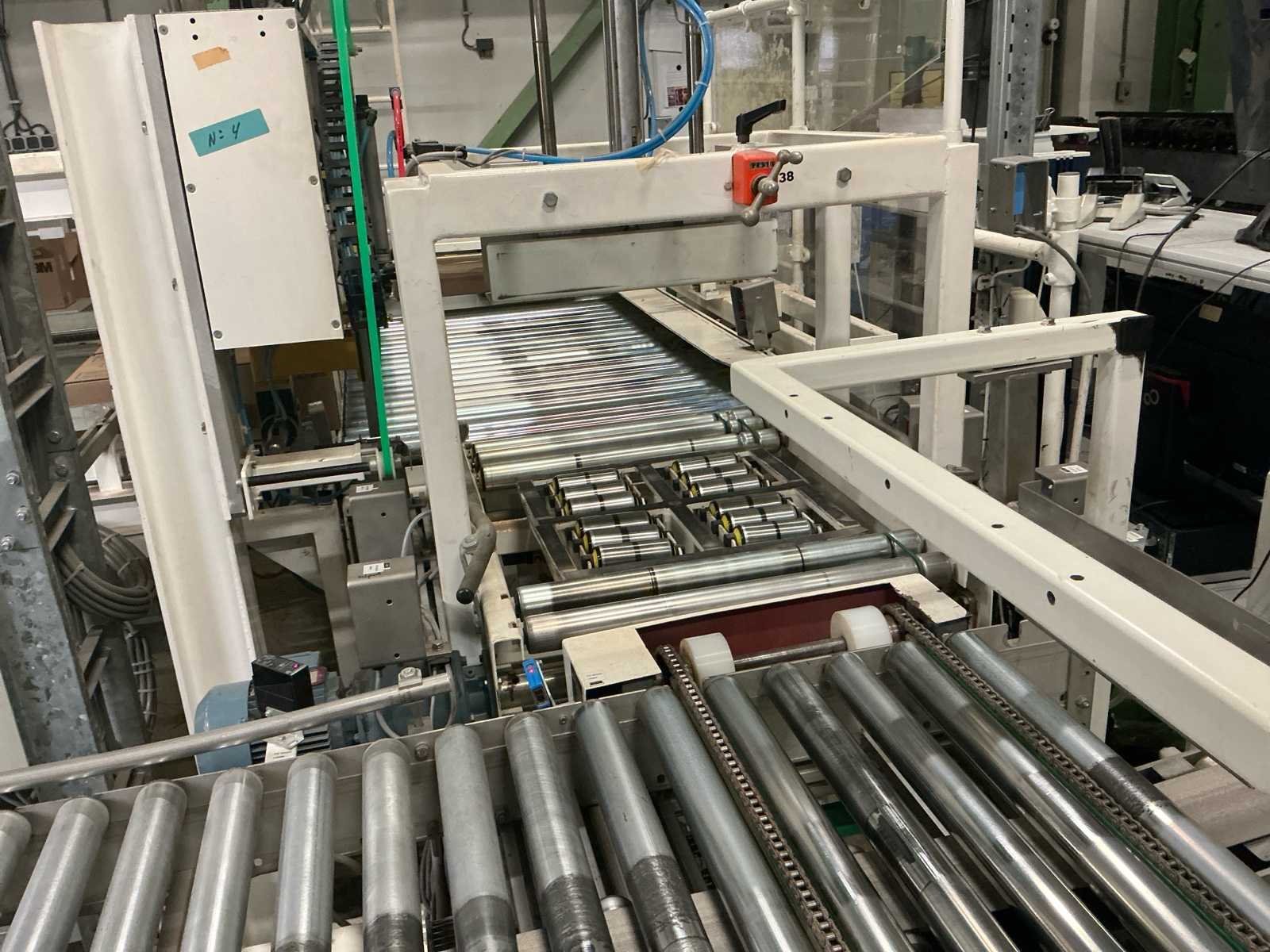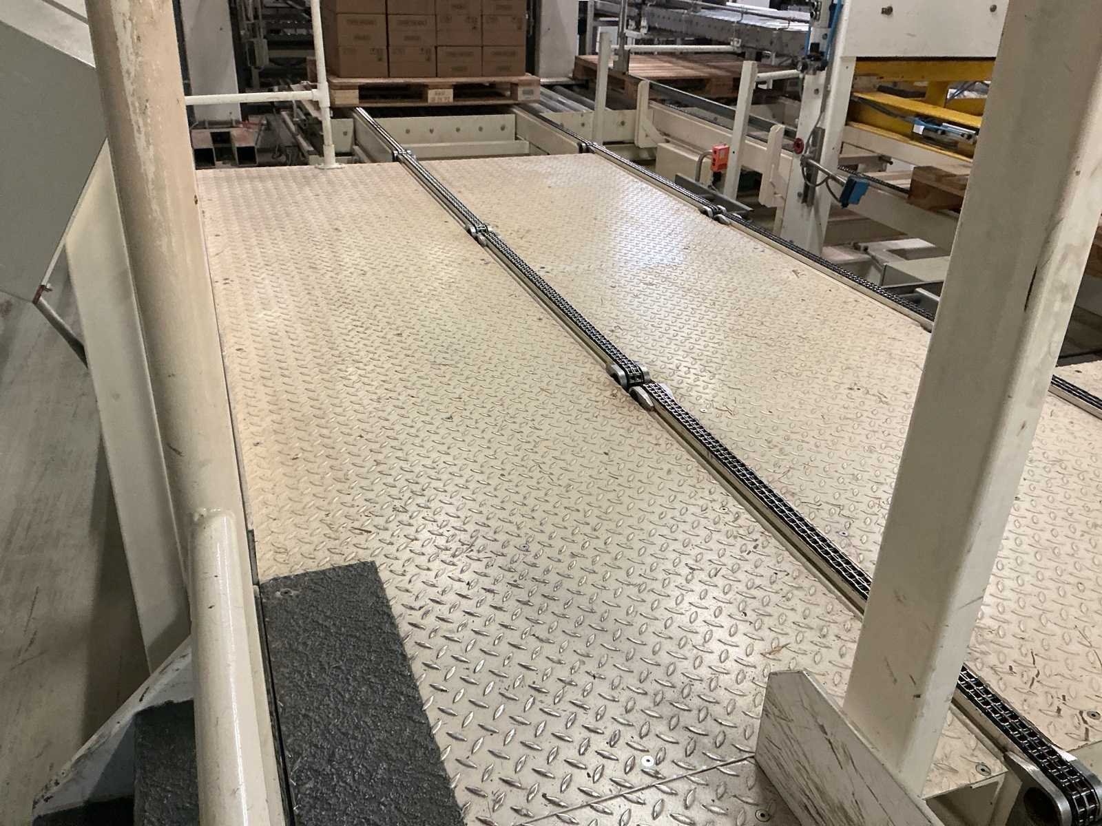Voorzien van: De complete installatie bestaat uit een Stork Bepak C2000 palletiseermachine (1991) met 27 meter transportbanden en een Stork Conveyor Systems handlingmodule (1988) voor het positioneren, centreren en verplaatsen van pallets, samen goed voor een capaciteit van 8–20 pallets/uur, geschikt voor EU- en blokpallets, gebouwd uit zware staalconstructies met PLC-besturing, veiligheidsvoorzieningen en elektromotorische aandrijving. 27 meter band tot aan 1e pallet. In totaal met automatische car 38m. machine/linielijn waarmee producten automatisch worden opgestapeld (gepaletiseerd) op pallets, vaak in combinatie met een transportband (in dit geval ongeveer 27 meter lang). LET OP! Demontage en levering van de machine zal plaats vinden in Februari 2026! Nee Merk: Stork Bepak Type: C2000 Bouwjaar: 1991 Serienummer: 035 76002 Invoer rollenbaan: true Afvoer rollenbaan: true Veiligheidshekwerk: true Aansluiting: 380V Totale afmeting L: 38000mm