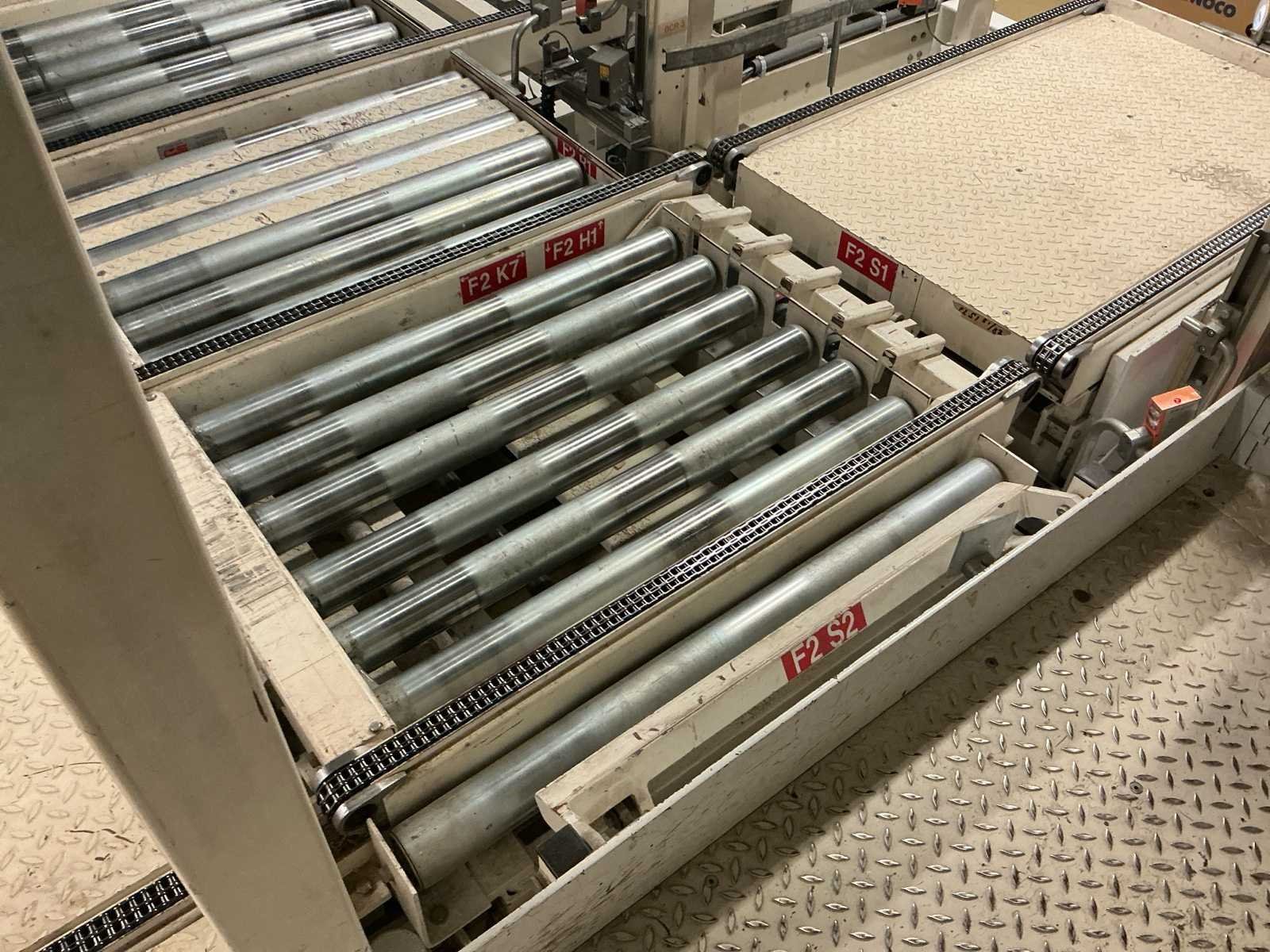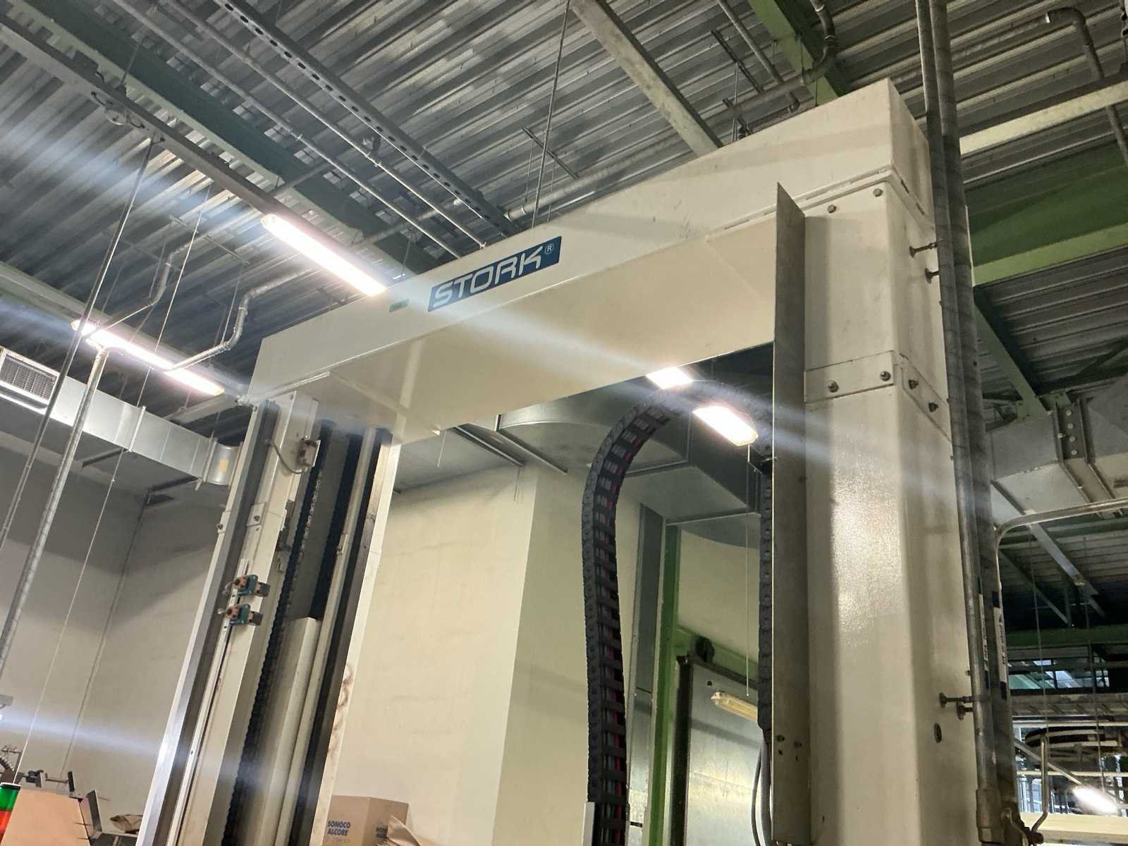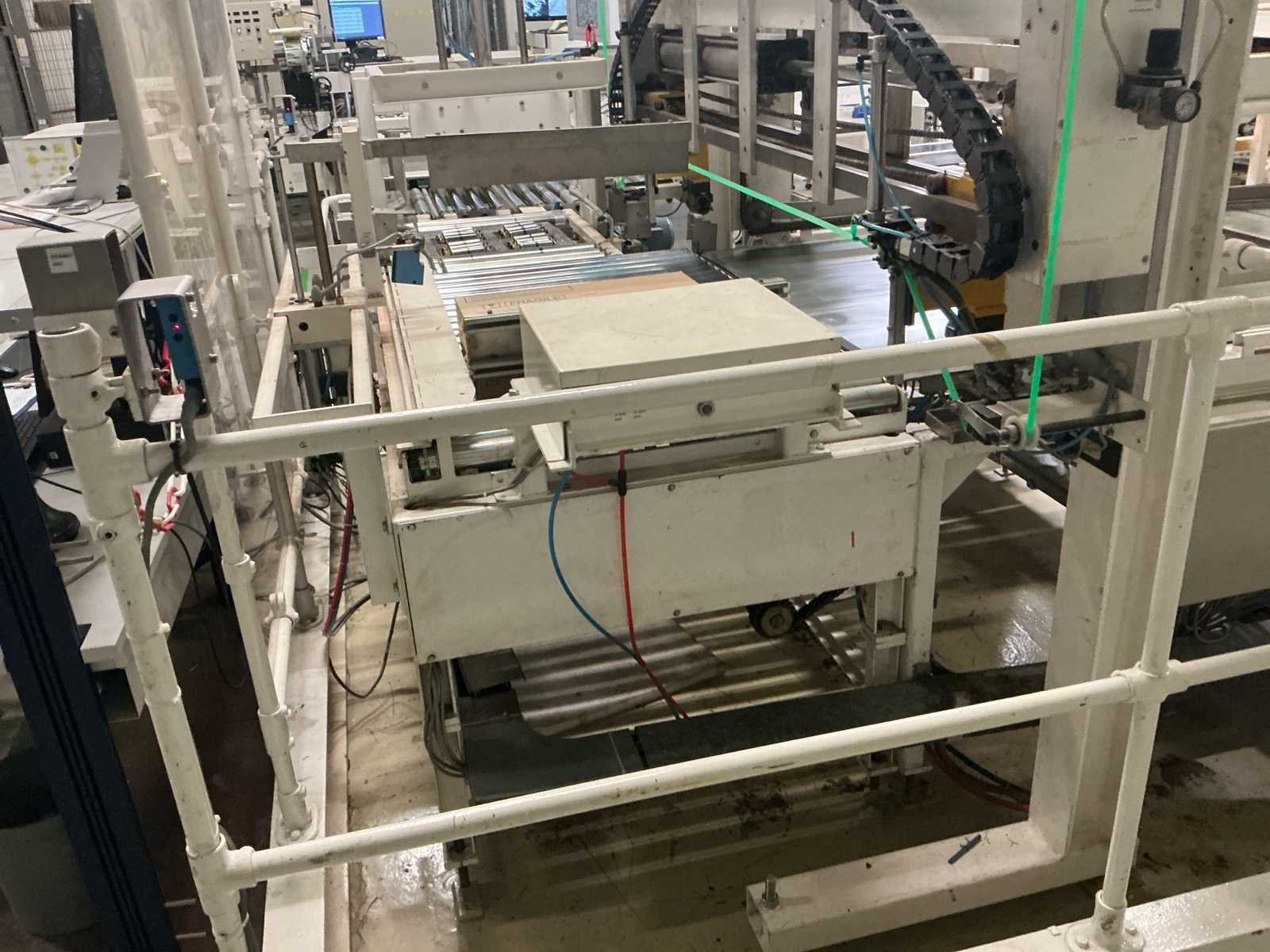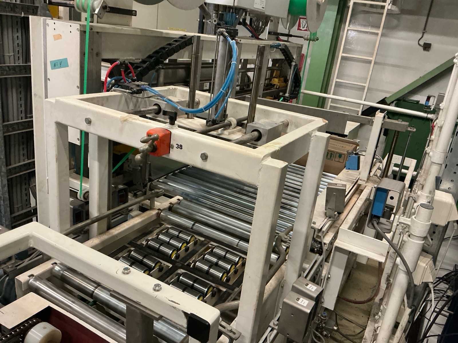Voorzien van: De complete installatie bestaat uit een Stork Bepak C2000 palletiseermachine (1991) met 27 meter transportbanden en een Stork Conveyor Systems handlingmodule (1988) voor het positioneren, centreren en verplaatsen van pallets, samen goed voor een capaciteit van 8–20 pallets/uur, geschikt voor EU- en blokpallets, gebouwd uit zware staalconstructies met PLC-besturing, veiligheidsvoorzieningen en elektromotorische aandrijving. 27 meter band tot aan 1e pallet. In totaal met automatische car 38m. machine/linielijn waarmee producten automatisch worden opgestapeld (gepaletiseerd) op pallets, vaak in combinatie met een transportband (in dit geval ongeveer 27 meter lang). LET OP! Demontage en levering van de machine zal plaats vinden in Februari 2026! Nee Merk: Stork Bepak Type: C2000 Bouwjaar: 1991 Serienummer: 035 76002 Invoer rollenbaan: true Afvoer rollenbaan: true Veiligheidshekwerk: true Aansluiting: 380V Totale afmeting L: 38000mm