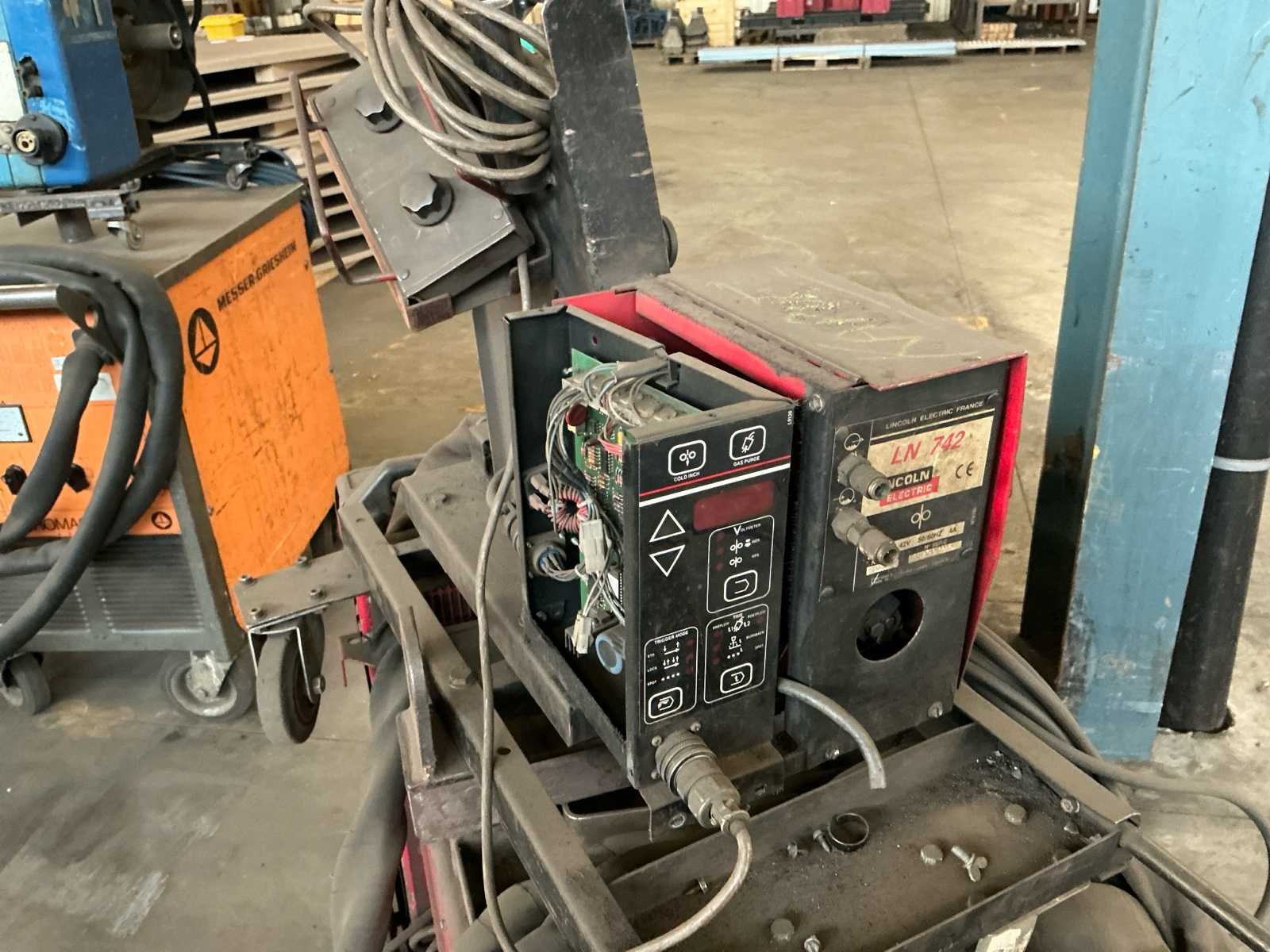 Bestaat uit: Lincoln CV-400, voor MIG- en gevulde draadlassen, vaste inductantie, hulpvoeding voor draadaanvoerapparaten van 115V en 42V met stroomonderbrekerbeveiliging, apparaat functioneert niet meer, te gebruiken voor onderdelen of revisie. Nee Merk: Lincoln Type: CV400