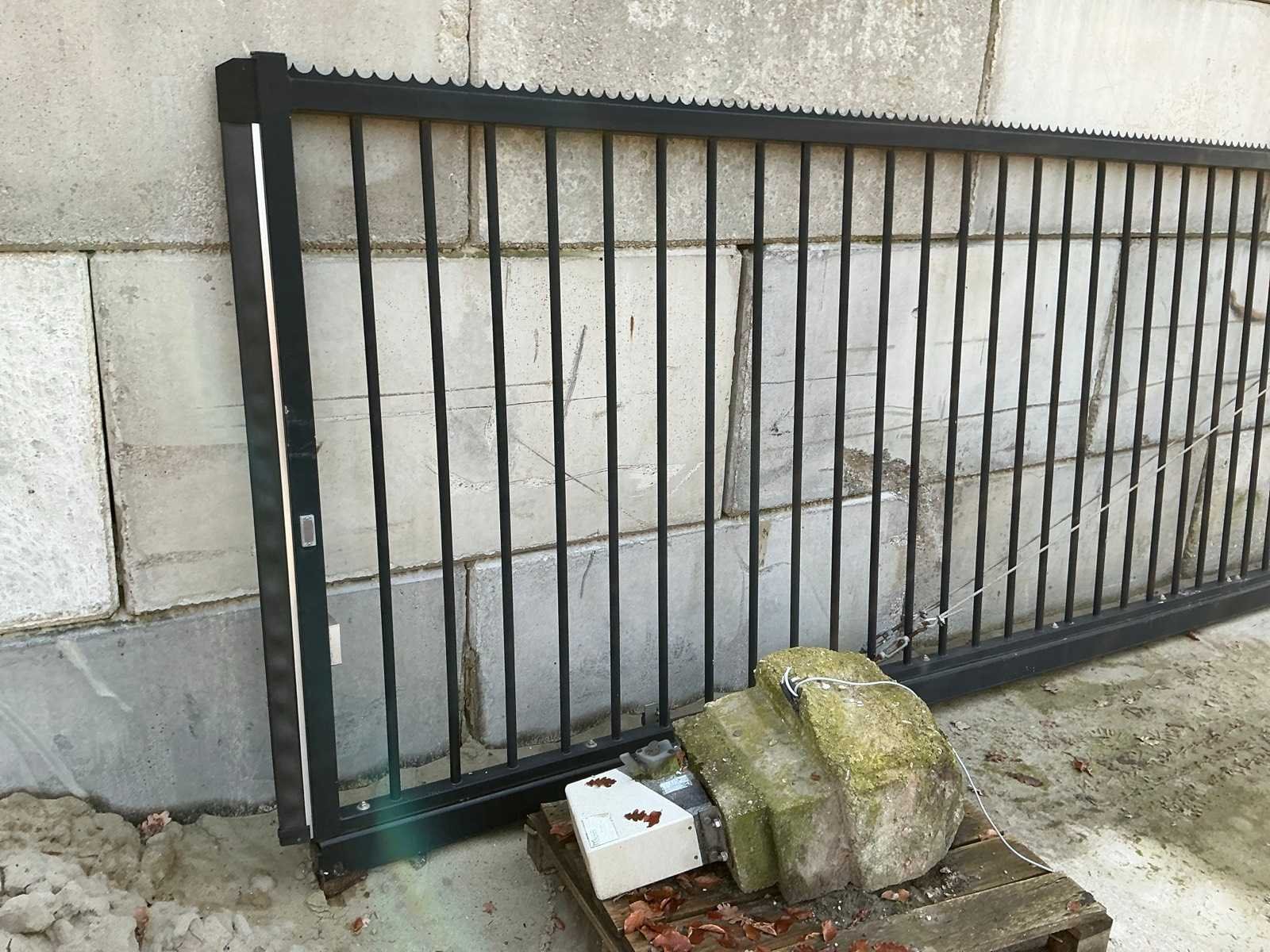 Bestaat uit: schuifpoort, 7mtr lang, 1,8m hoog, inclusief elektromotor en funderingsblok. Nee Merk: Mertens Kleur: Antraciet Lengte: 700cm Breedte: 6cm Hoogte: 180cm