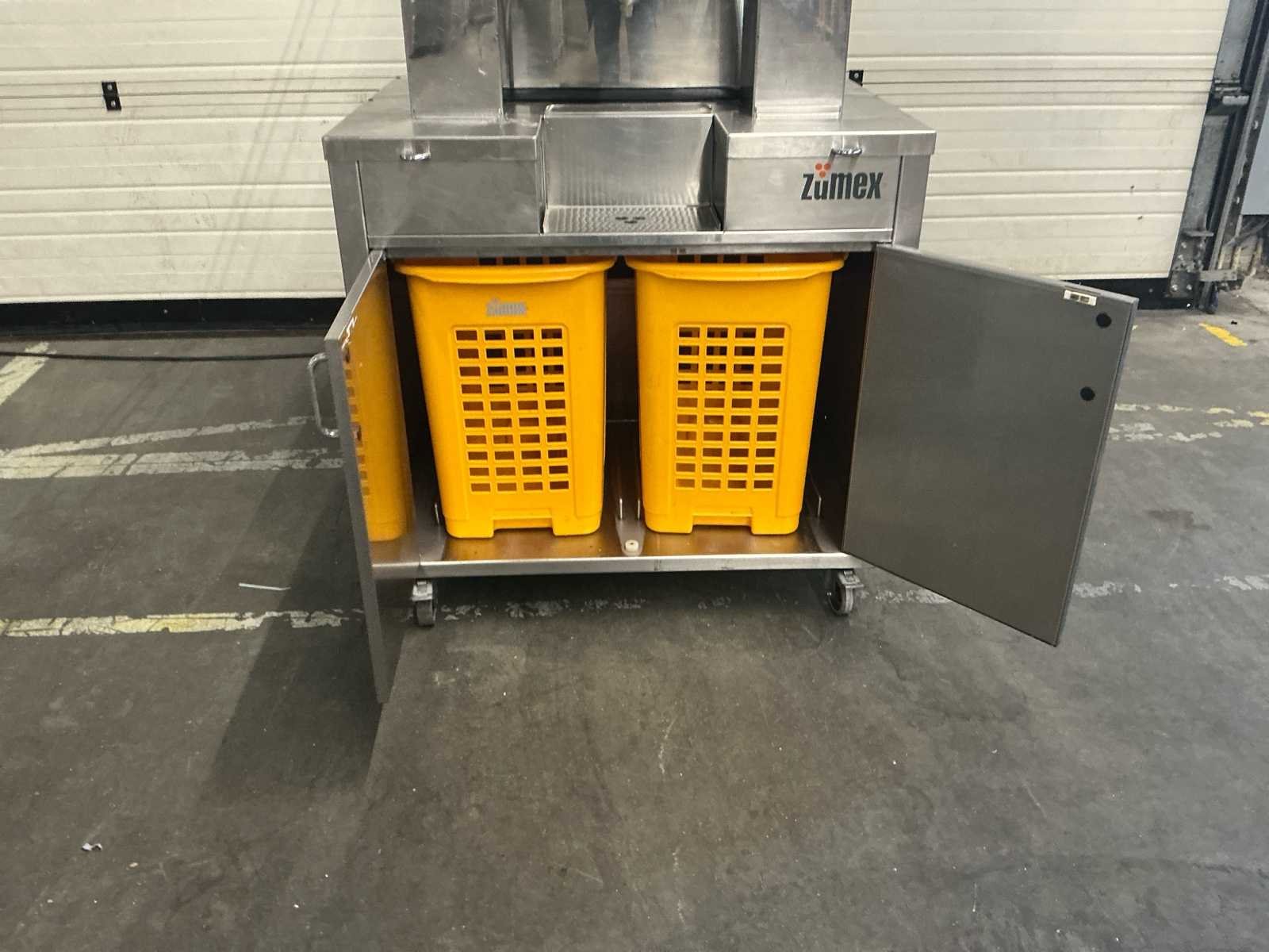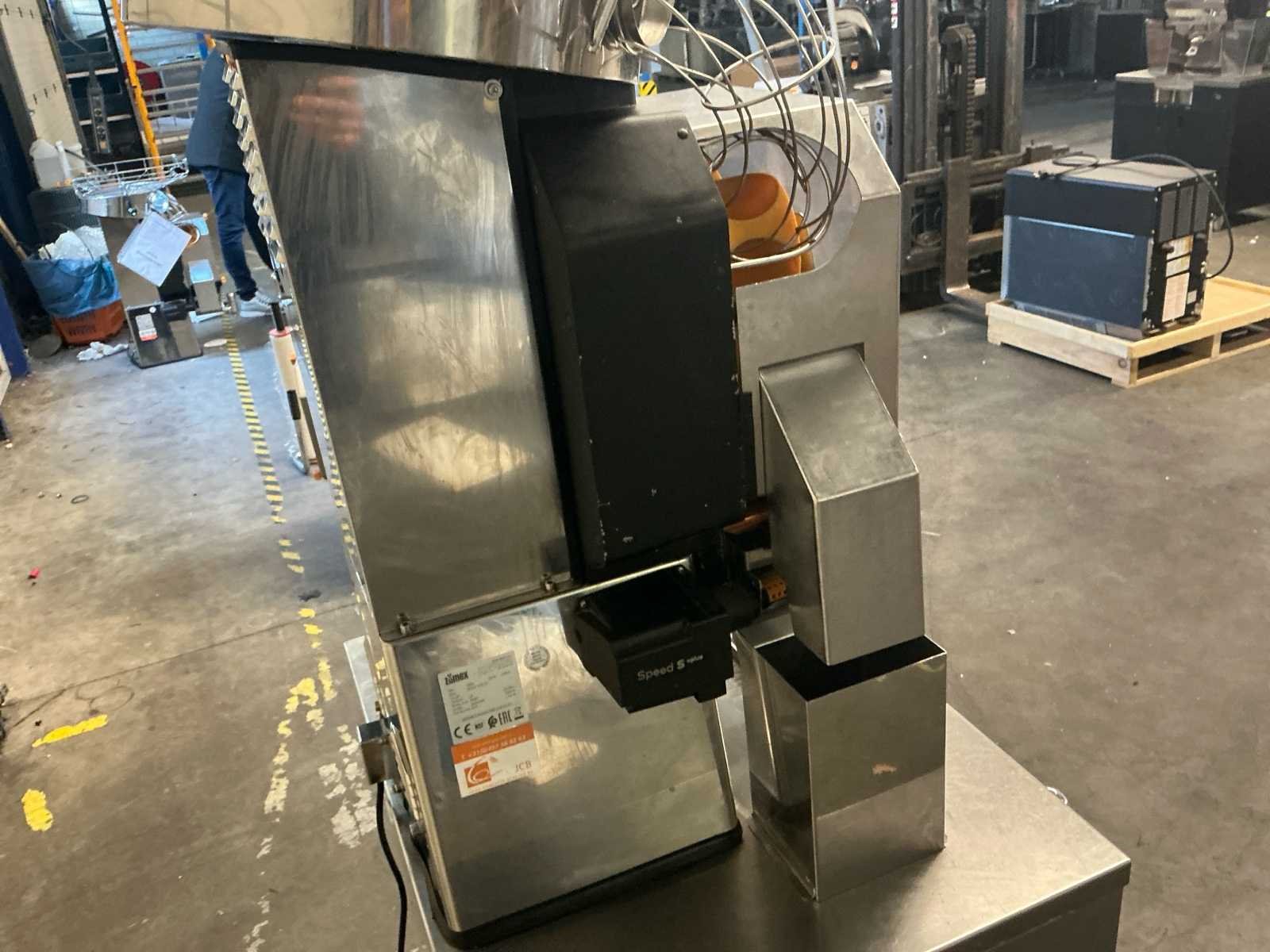 Voorzien van: De Zumex Speed S+ Plus is een professionele pers met een capaciteit van circa 40 vruchten per minuut, werkend op 220–240 V / 50–60 Hz met ongeveer 460 W vermogen, voorzien van automatische pulpafvoer, geschikt voor vruchten van 45–95 mm, en weegt rond de 120–125 kg met afmetingen van ongeveer 805 × 708 × 1774 mm. Bouwjaar 2019. Nee Merk: Zumex Type: 08824 Model: SPEED S+PLUS Totale afmeting L: 620mm Totale afmeting Breedte: 800mm Totale afmeting Hoogte: 1780mm Materiaal: RVS Serienummer: 459687 Eigen gewicht: 120kg Rvs: true Aansluiting: 220V