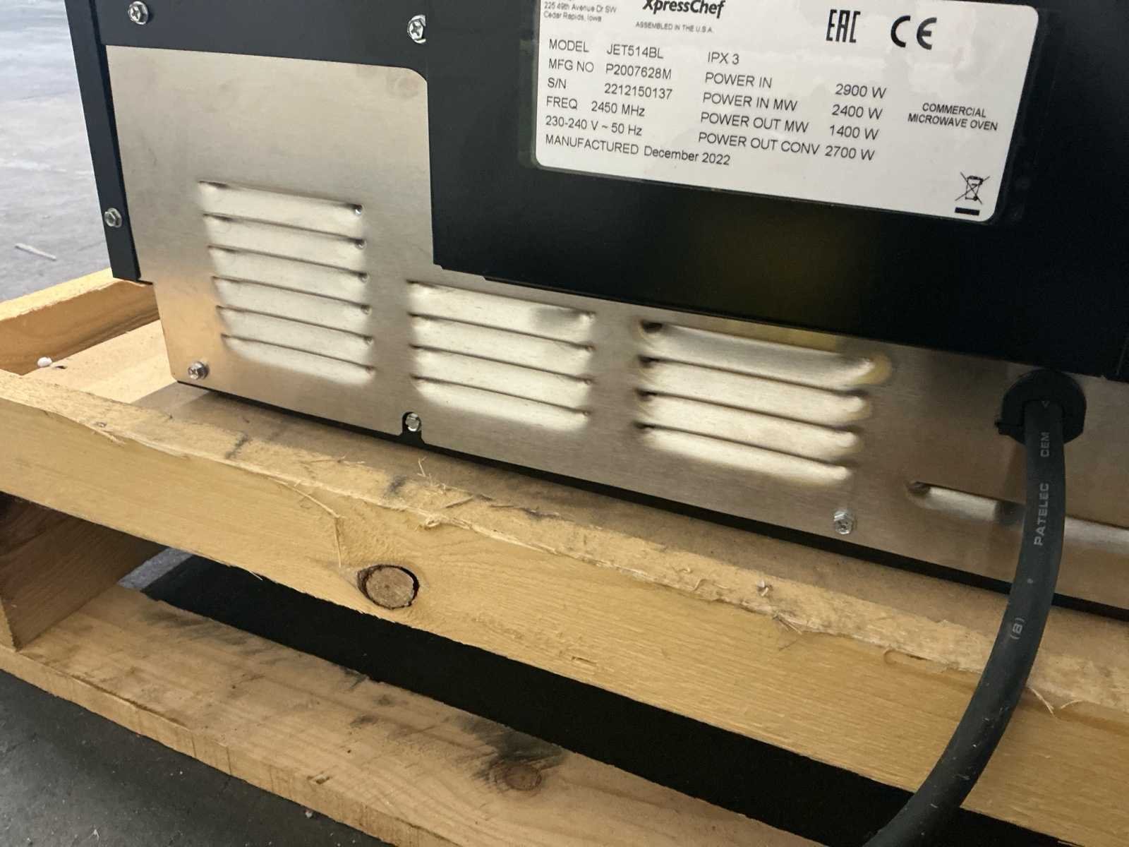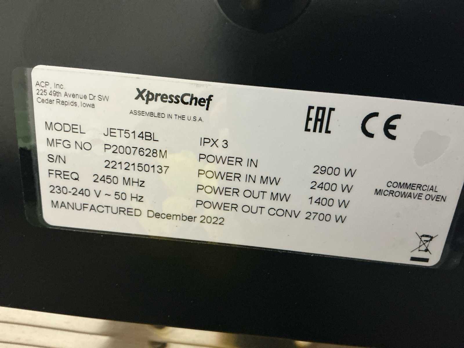 Voorzien van: De XpressChef JET514BL is een professionele 34 liter high-speed combi-magnetron met 1400 W magnetronvermogen, 2700 W convectievermogen, een totaalverbruik van 2900 W, werkend op 230–240 V / 50 Hz, met afmetingen van circa 489 × 676 × 460 mm en een gewicht van ongeveer 50 kg. Nooit gebruikt! Nee Merk: XpressChef Type: JET514BL Materiaal: RVS Digitale besturing: true Serienummer: 2212150137 Aansluiting: 220V Eigen gewicht: 50kg Elektrisch: true Rvs: true Vermogen: 2900kW Totale afmeting L: 60cm Totale afmeting Breedte: 49cm Totale afmeting Hoogte: 47cm Bouwjaar: 2022