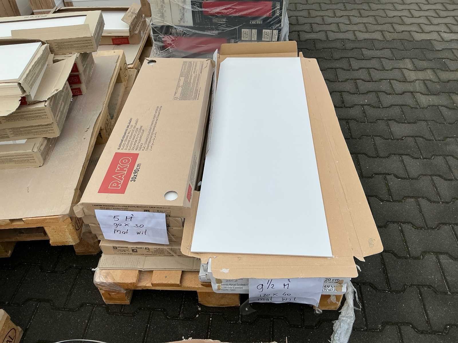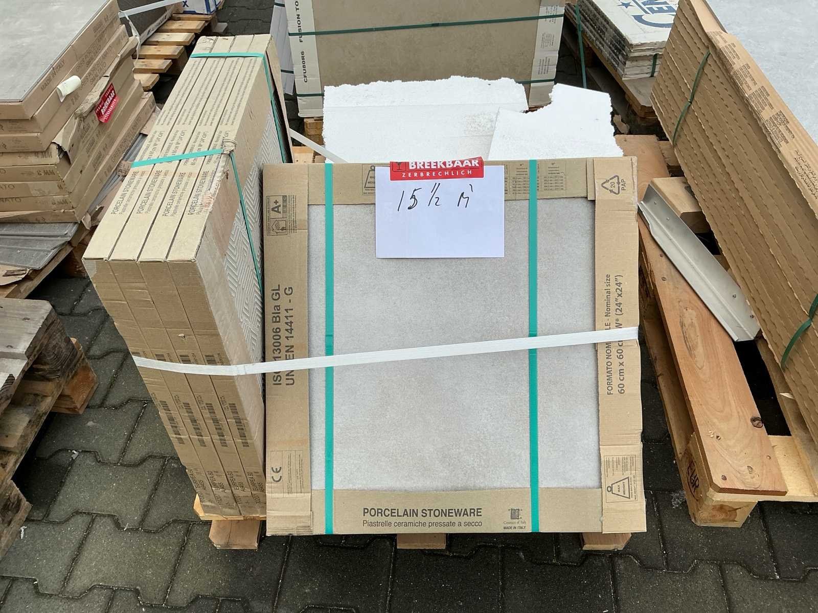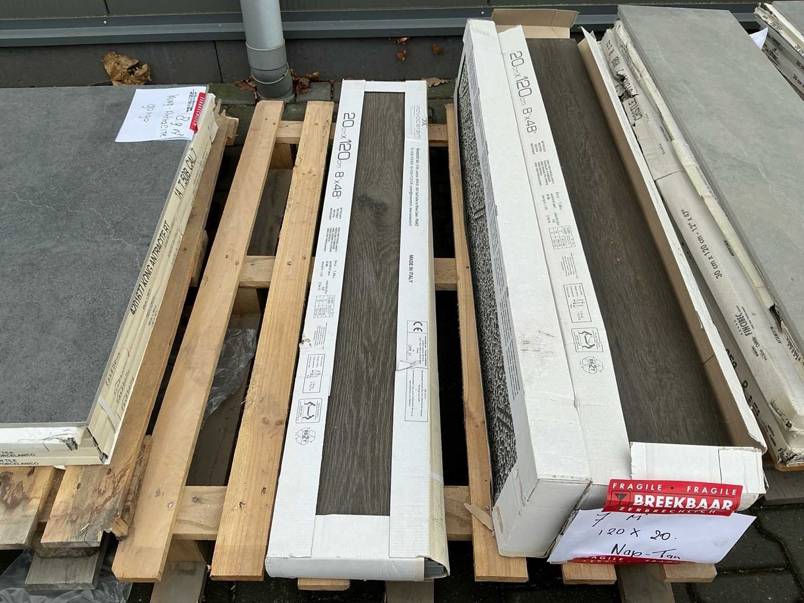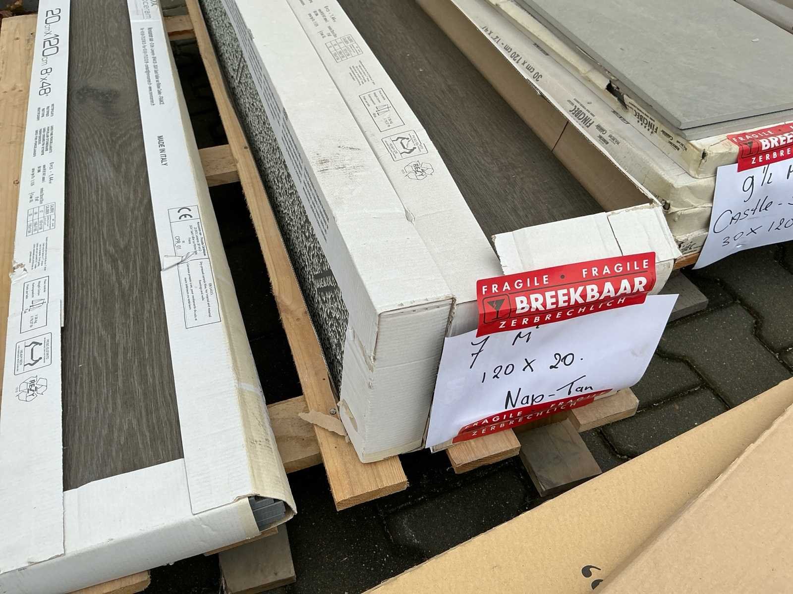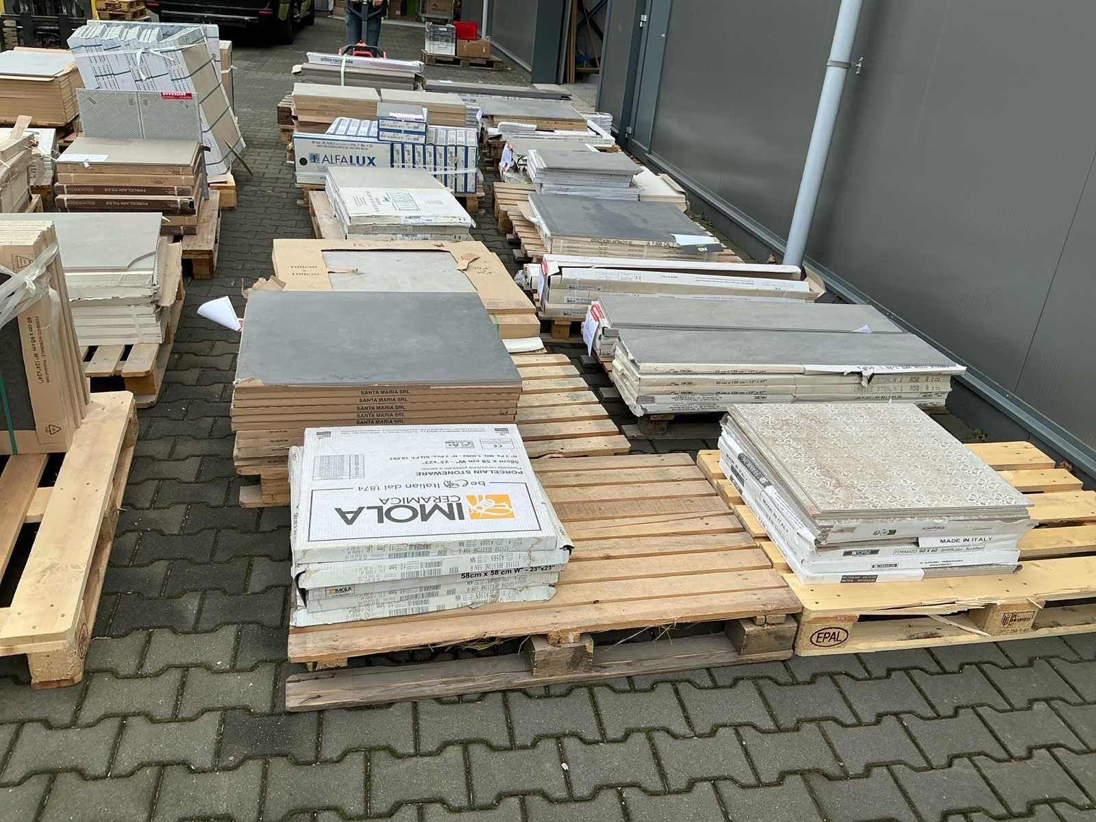 Bestaat uit: 40 pallets rest partij tegels, wand tegels, vloertegels, natuursteen-look, en hout-look, diverse afmetingen, open en nieuwe verpakkingen, alles in een koop. Nee Merk: Diversen tegels