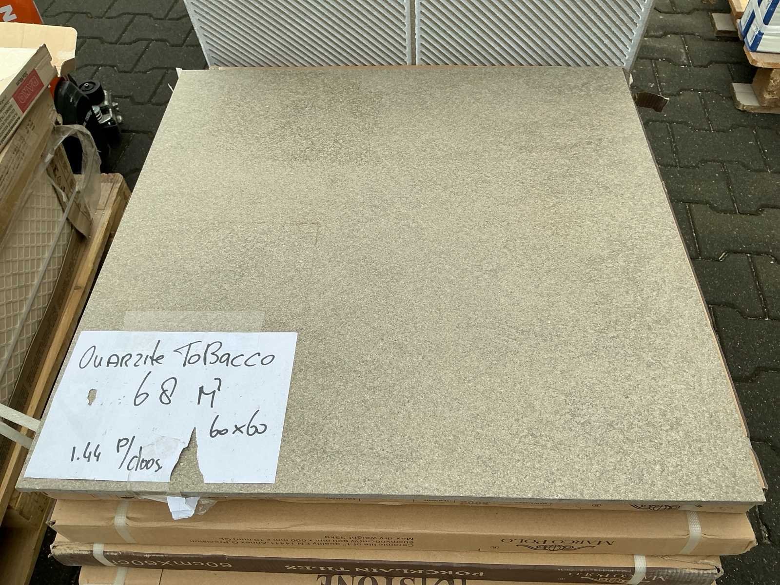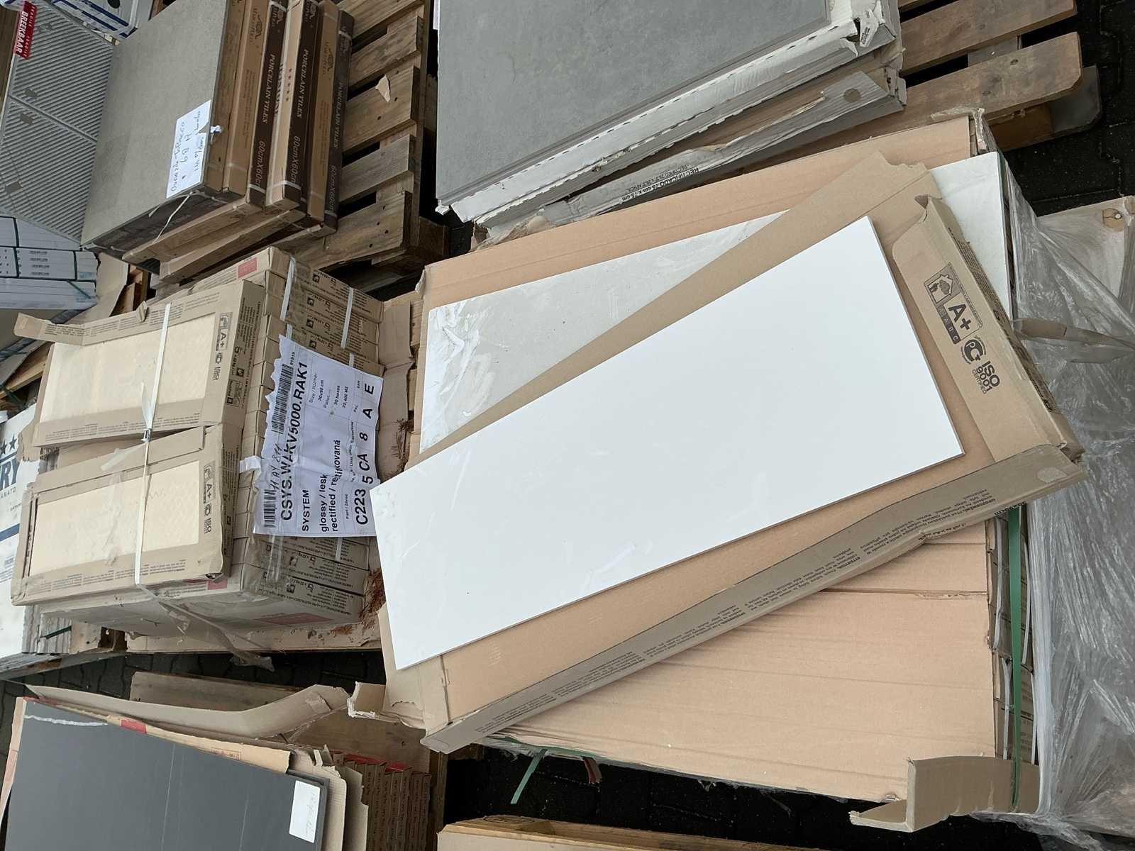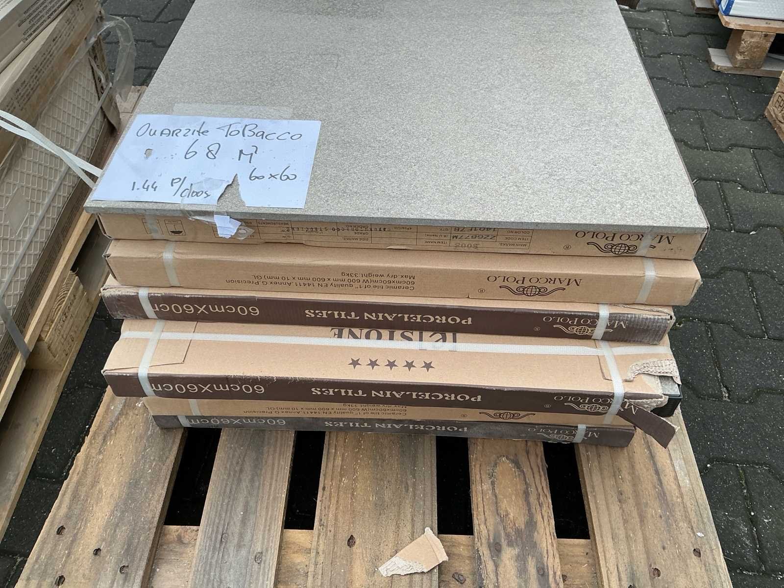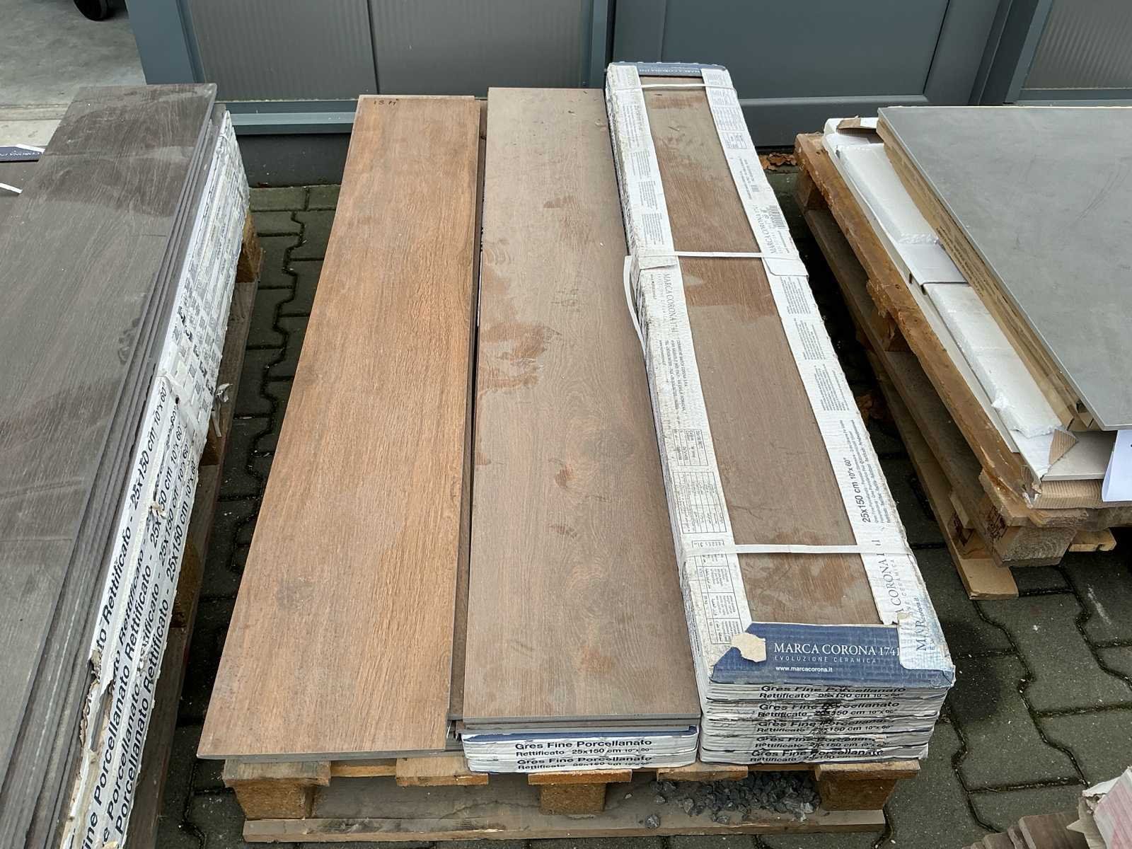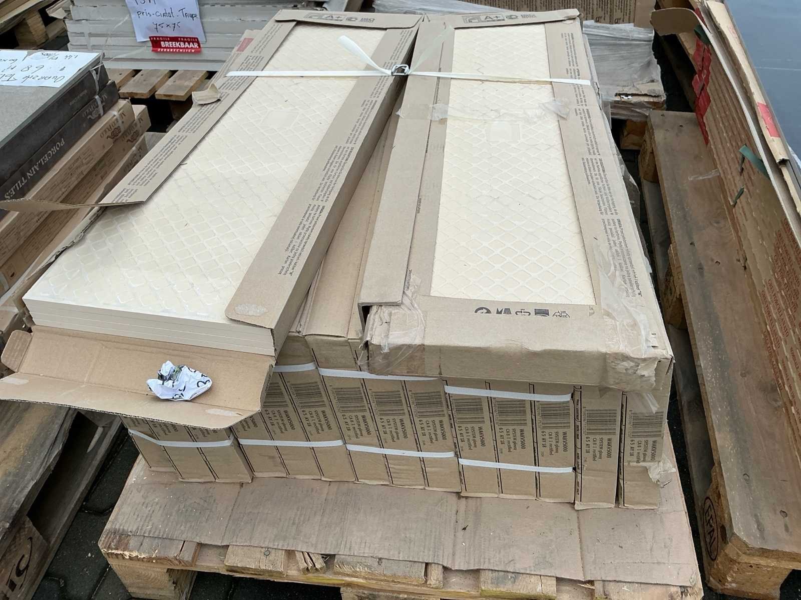 Bestaat uit: 40 pallets rest partij tegels, wand tegels, vloertegels, natuursteen-look, en hout-look, diverse afmetingen, open en nieuwe verpakkingen, alles in een koop. Nee Merk: Diversen tegels